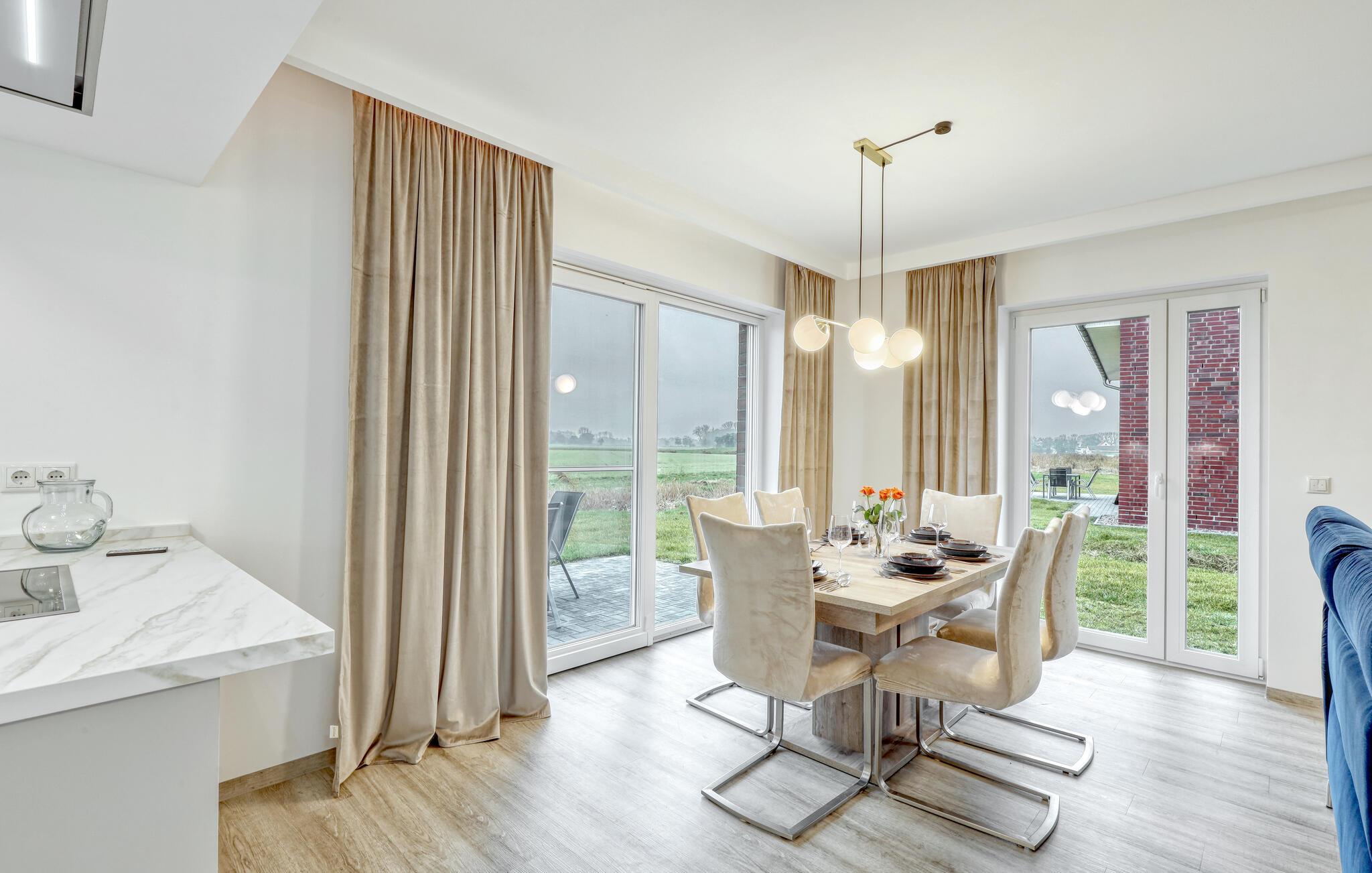 Forkæl jer selv med et afslappende ophold i dette hus, der kombinerer ro med stilfulde møbler. De lyse, luftige vægge og den diskrete indretning skaber en moderne og indbydende atmosfære. Nyd fælles måltider i den rummelige spisestue, mens I nyder udsigten over de vidtstrakte marker gennem gulv-til-loft-vinduerne. Tilbered jeres måltider i det eksklusive køkken, som tilbyder rigelig bordplads og ideelle forhold. Bagefter kan I slappe af i saunaen og nyde den beroligende varme efter en lang dag i den friske luft.