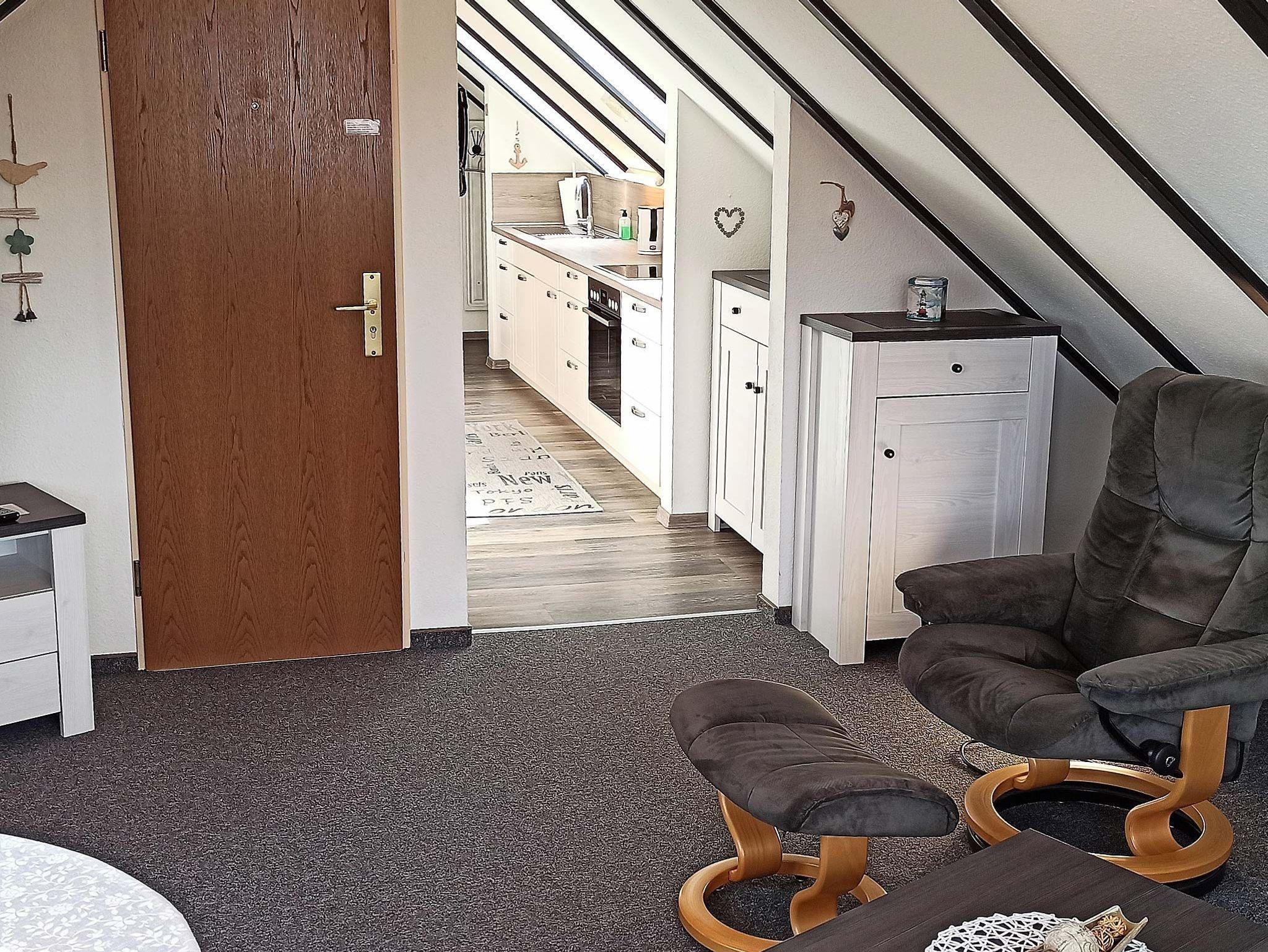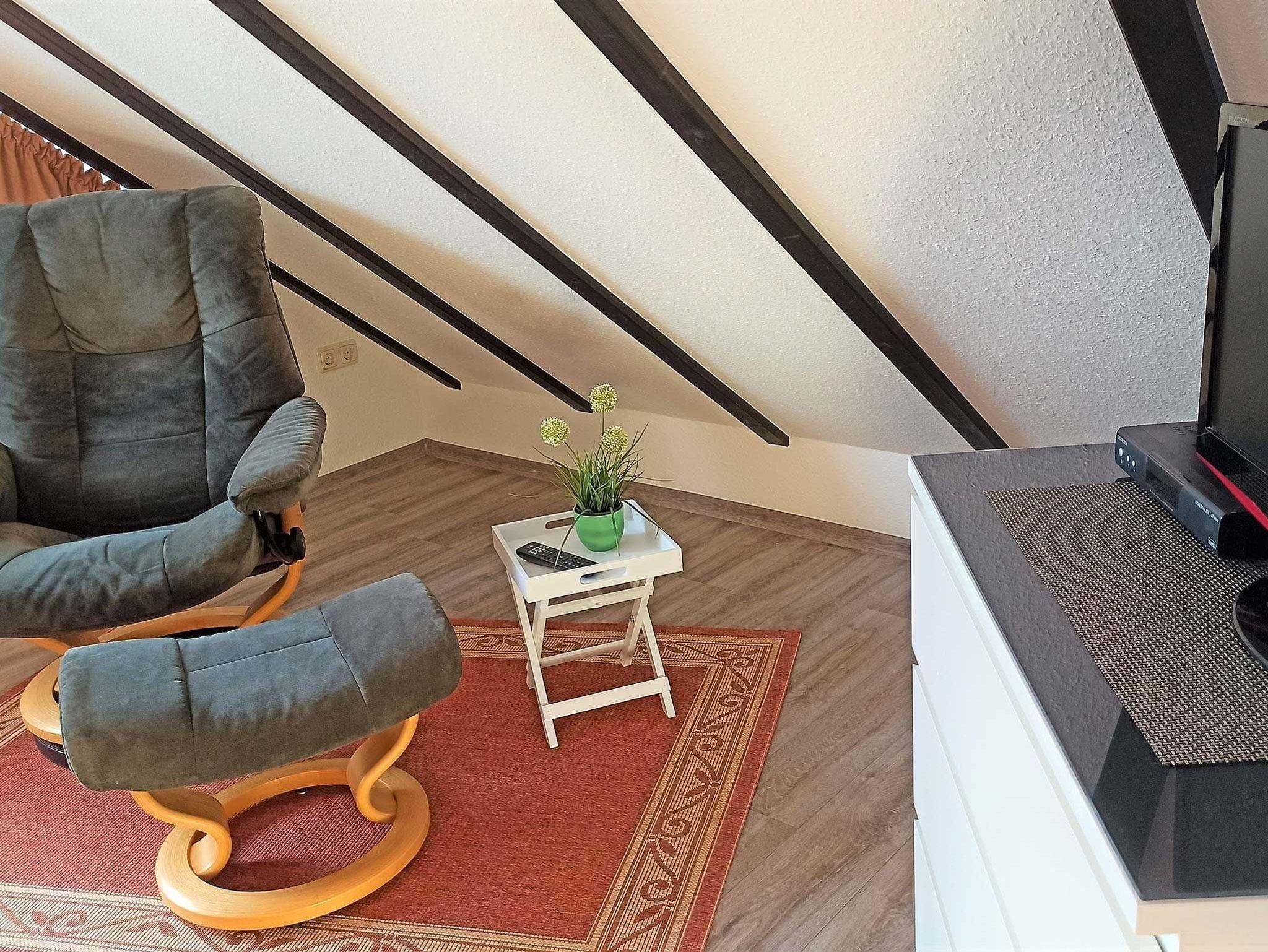 Das komfortable Dachstudio (ca. 40 qm) für 2 Personen erstreckt sich über das gesamte Spitzdach des Hauses und bietet einen herrlichen Ausblick auf die Harle und die ostfriesische Landschaft. Ausgestattet ist es folgendermaßen: Wohnzimmer mit Polstergarnitur, Essecke, Sat-HDTV, DVD, Radio, kostenloses WLAN. Küchenzeile mit Wasserkocher, Kaffeemaschine uvm. Schlafzimmer mit Doppelbett und separatem TV. Bad mit Dusche/WC. Nutzung des großen Gartens mit Terrasse und Grillplatz. Parkplatz. Nichtraucherwohnung! Fliegengitter in den Wohn- und Schlafräumen. Bettwäsche und Handtücher-Erstausstattung inklusive.