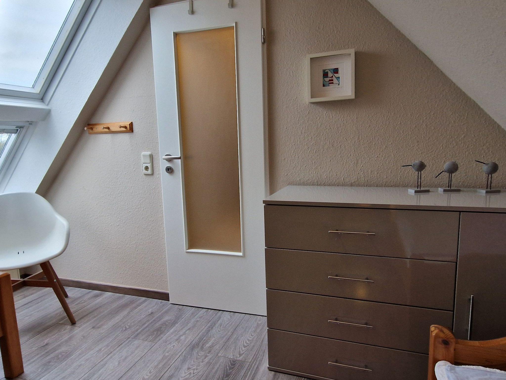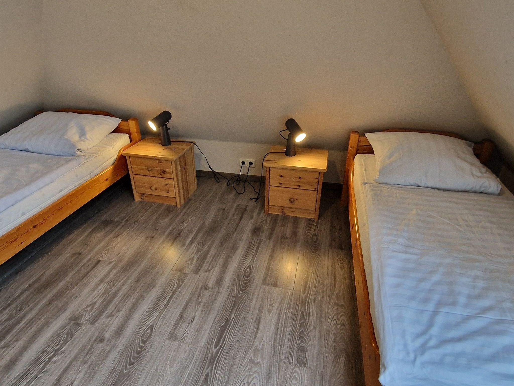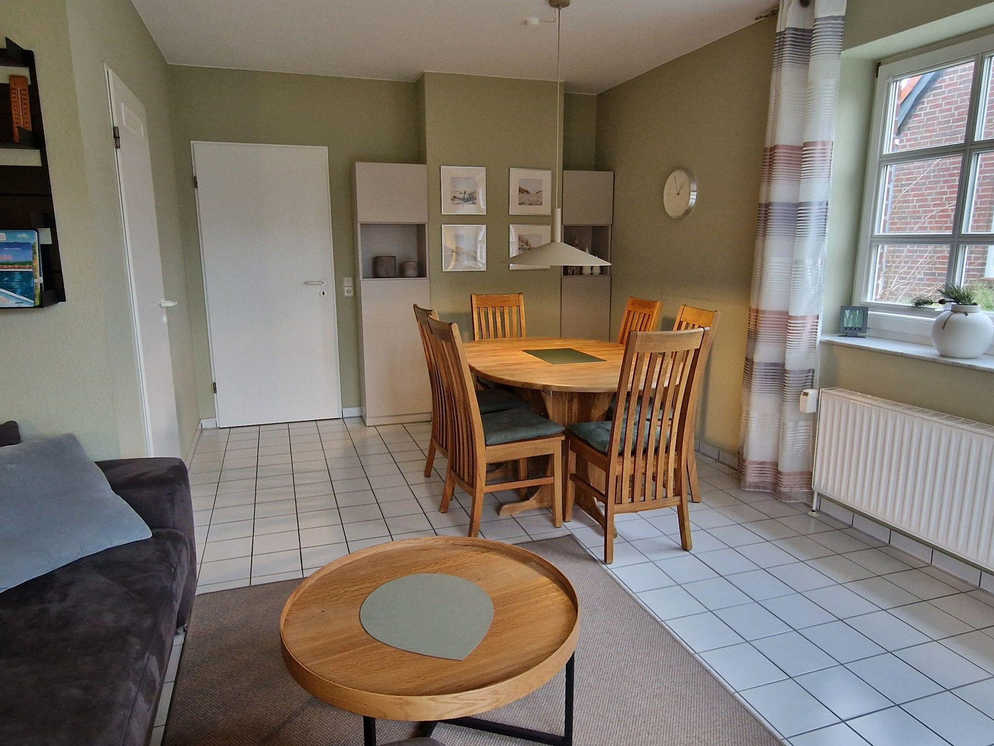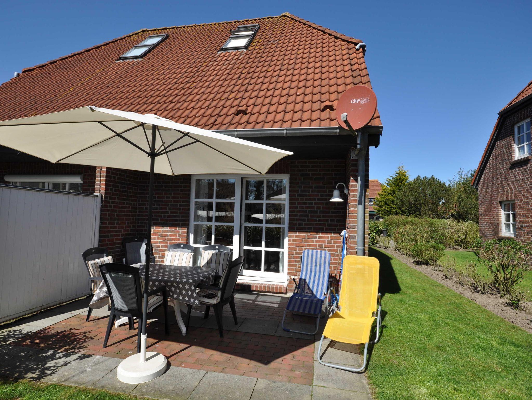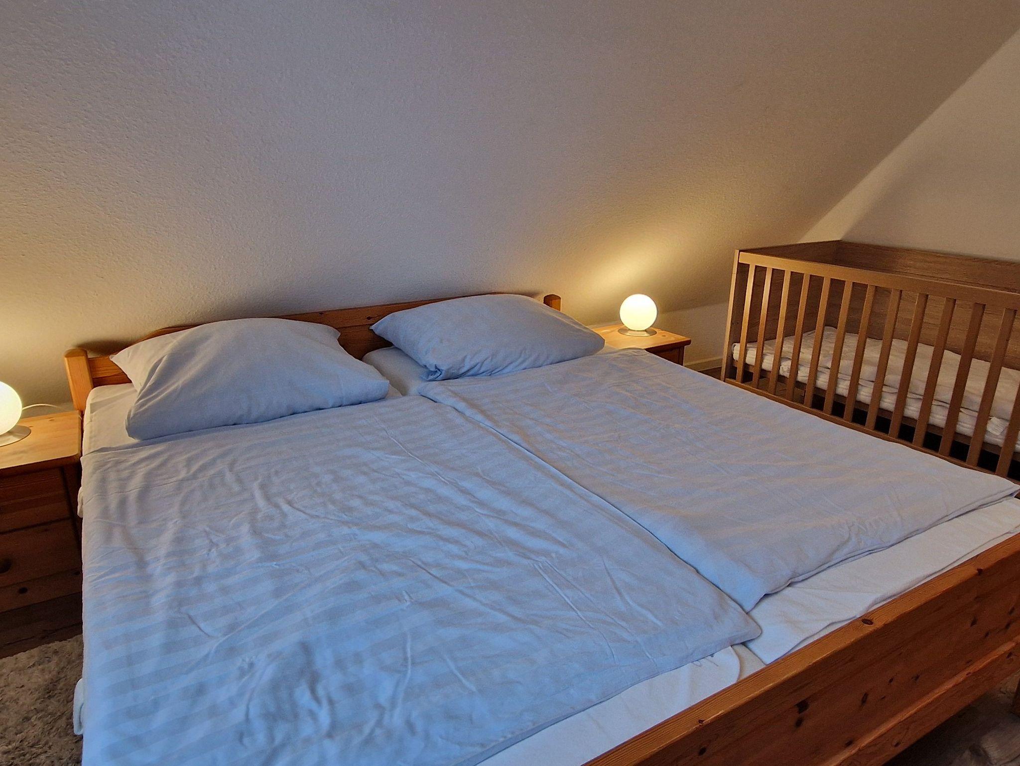Die Doppelhaushälfte ist ansprechend und modern ausgestattet und bietet Platz für bis zu 6 Personen und ein Baby/Kleinkind. Im Erdgeschoss befinden sich ein großer Wohn- und Essbereich mit Ausgang zur Südterrasse, eine separate, vollständig ausgestattete Küche sowie ein Gäste-WC. Das 1. Obergeschoss verfügt über ein Schlafzimmer mit Doppelbett und ein Schlafzimmer mit zwei Einzelbetten sowie über ein Badezimmer mit Dusche und WC. In einem Dachstudio stehen zwei weitere Einzelbetten zur Verfügung. Die Böden des Ferienhauses sind mit Fliesen bzw. Laminat ausgestattet. WLAN steht Ihnen kostenfrei zur Verfügung.