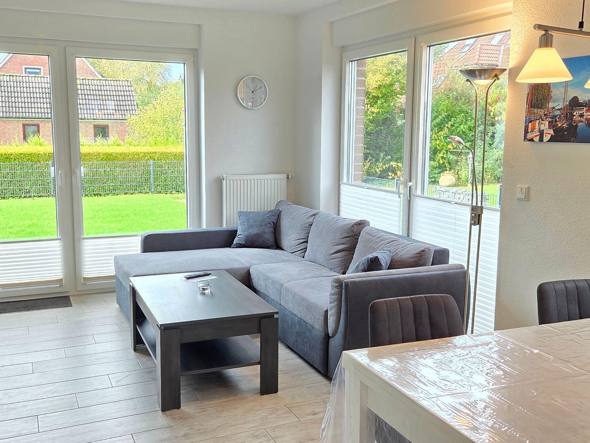 Im Erdgeschoss der ca. 70m² großen Doppelhaushälfte befindet sich ein großzügiger und freundlicher Bereich für Kochen, Essen und Wohnen. Zudem ist ein Gäste-WC vorhanden. Das Obergeschoss verfügt über zwei Schlafzimmer (ein Doppelbett und zwei Einzelbetten) sowie über ein großzügiges Duschbad und bietet somit ausreichend Platz für die ganze Familie. WLAN steht Ihnen kostenlos zur Nutzung zur Verfügung. Alle Fenster sind mit Rollläden ausgestattet und im gesamten Objekt sind Fliesen bzw. Laminat verlegt. Eine hochwertige Ausstattung sorgt für entsprechenden Wohnkomfort.