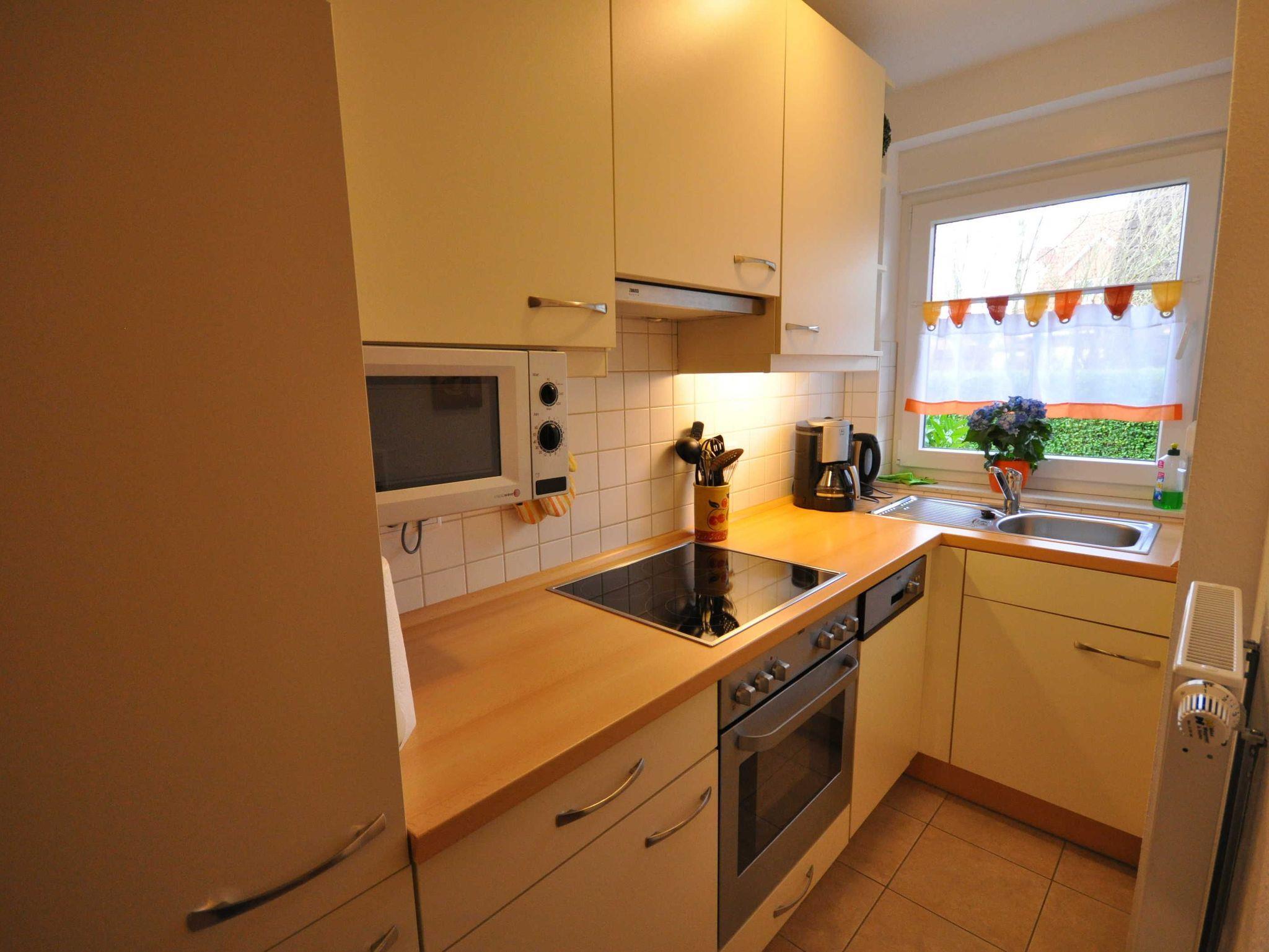 Das geschmackvoll eingerichtete Reihenhaus bietet ausreichend Platz für bis zu 4 Personen und ein Baby/Kleinkind. Im Erdgeschoss befindet sich ein großzügiges Wohnzimmer mit angrenzendem Essbereich, eine moderne, offene Küche sowie ein Gäste-WC. Das Obergeschoss (Treppenschutzgitter oben) verfügt über zwei Schlafzimmer mit einem Doppelbett bzw. zwei Einzelbetten und einem Badezimmer mit Dusche und WC. Alle Fenster sind mit Rollläden, die Böden mit Fliesen ausgestattet. WLAN steht Ihnen kostenlos zur Verfügung.