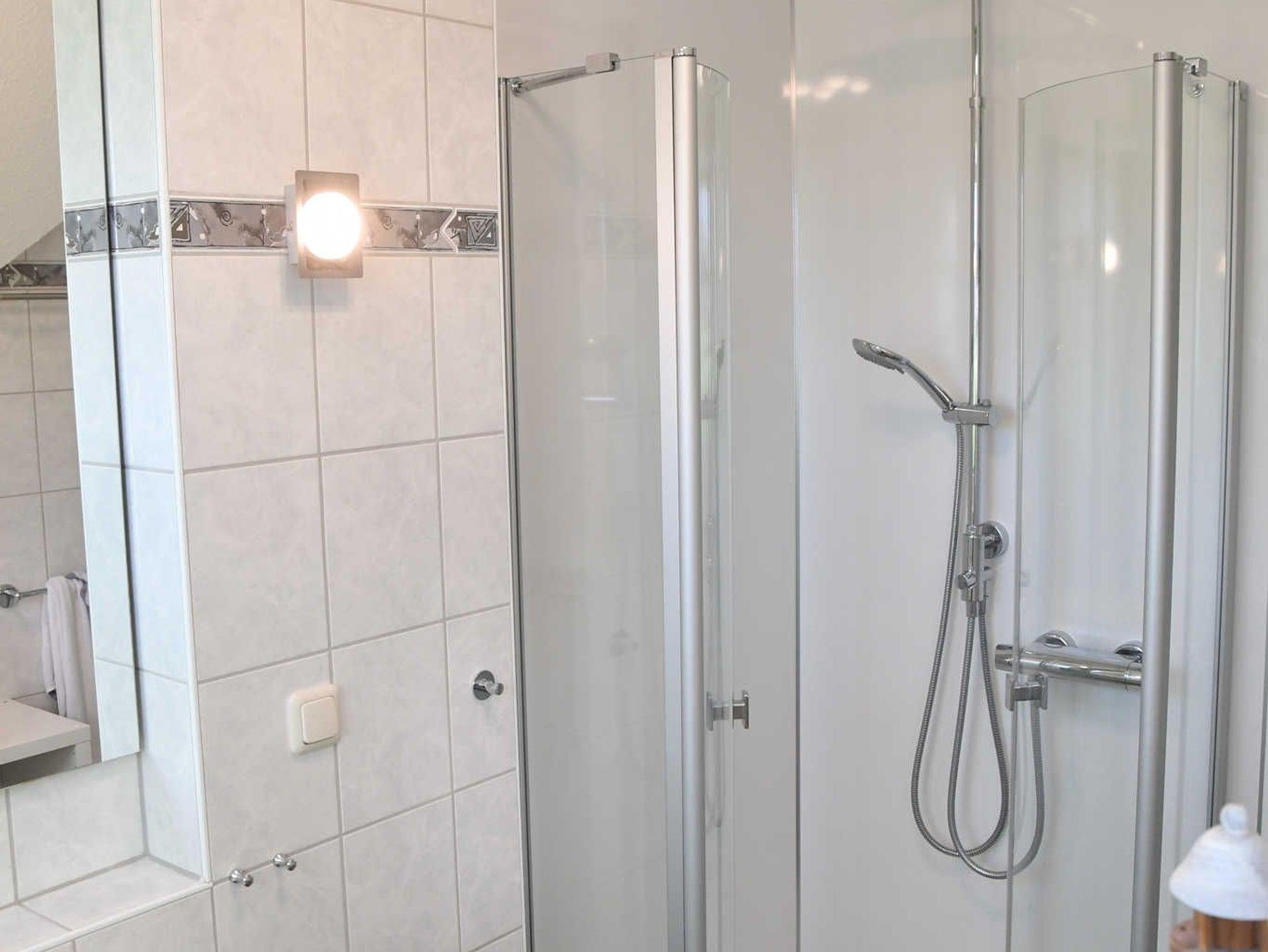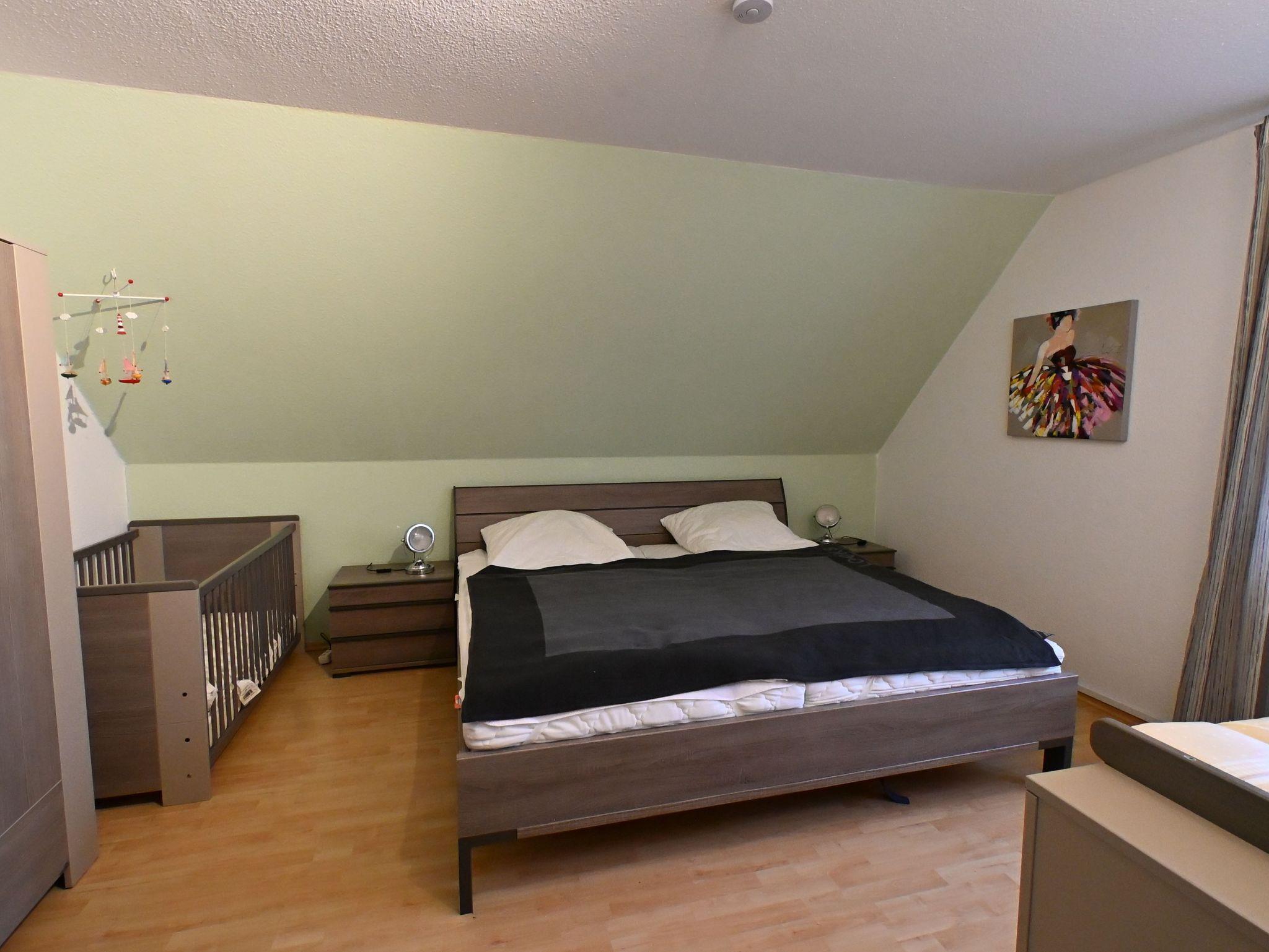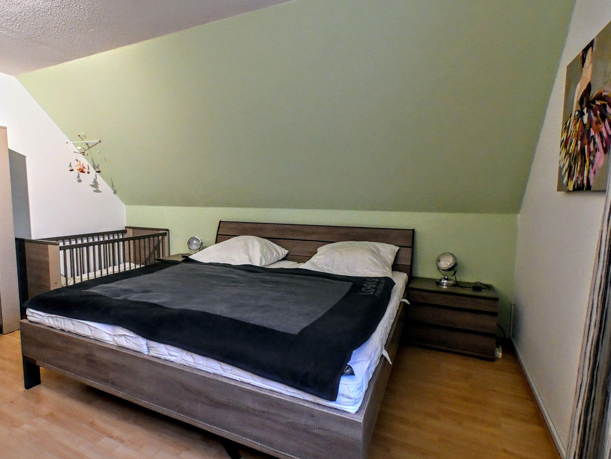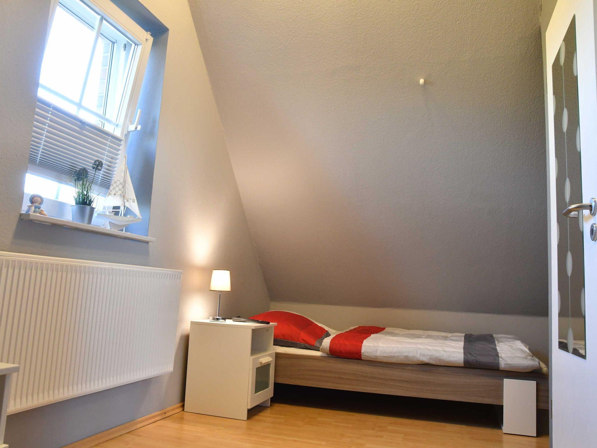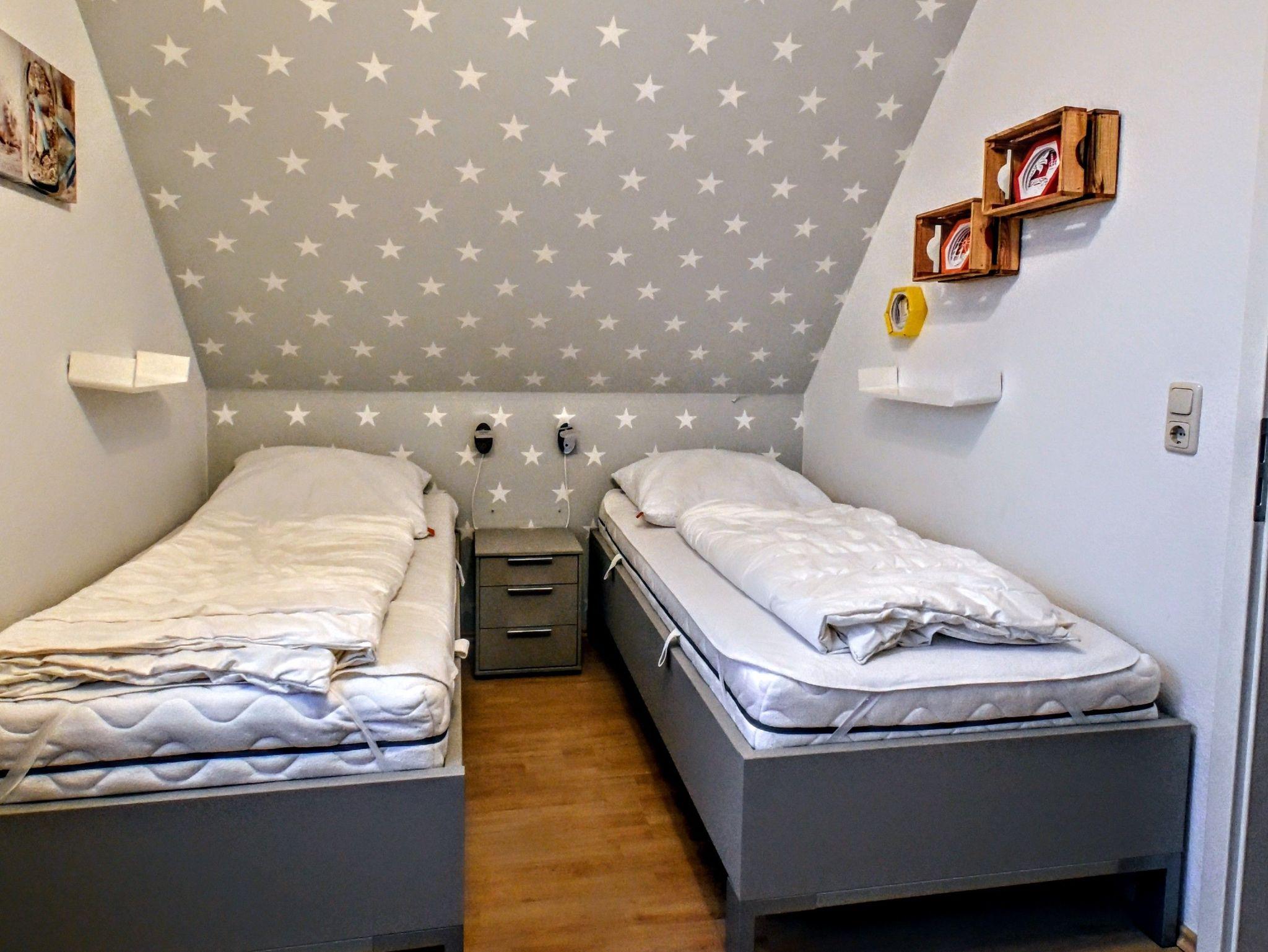Im 1. OG sind das Dusch-Bad, ein Schlafzimmer mit zwei Einzelbetten (1,00*2,00 m) sowie ein Schlafzimmer mit einem Doppelbett (1,80*2,00 m) zu finden. Einen Raum mit zwei weiteren Einzelbetten (0,90*2,00 m) finden Sie im Dachgeschoss.