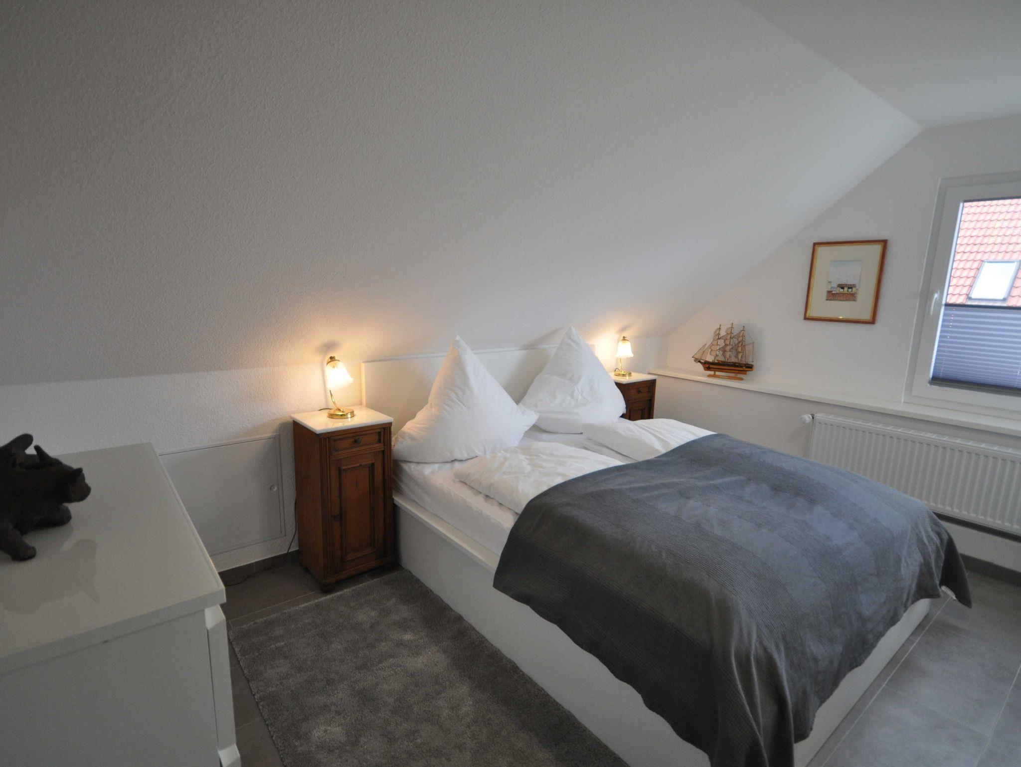 Die stilvoll und modern eingerichtete Ferienwohnung befindet sich in der 1. Etage und wurde im Jahr 2020 komplett saniert. Auf ca. 60m² finden Sie ein Wohnzimmer, eine offene Küche, sowie ein Badezimmer mit Dusche und WC. Ein geräumiges Schlafzimmer mit einem Doppelbett sowie ein Schlafzimmer mit 2 Einzelbetten stehen Ihnen ebenso zur Verfügung. Alle Fenster sind mit Verdunkelungsplisees ausgestattet. In der gesamten Wohnung sind Fliesen verlegt. WLAN steht zur kostenlosen Nutzung für Sie bereit. Genießen Sie Ihren Urlaub in Wohlfühlatmosphäre.