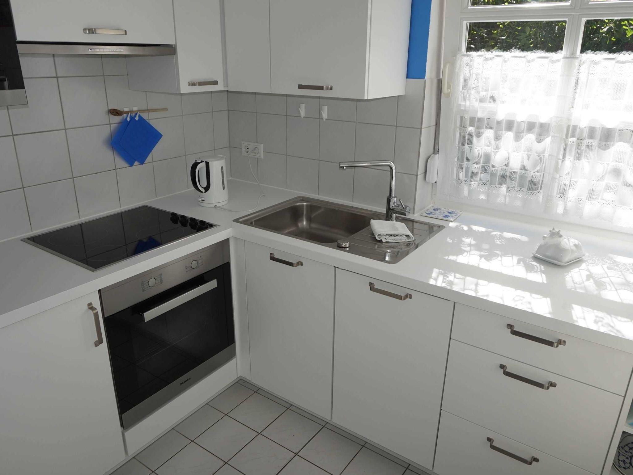 Doppelhaushälfte, zentrale Lage, ruhige Umgebung, mit kleinem Garten und Terrasse in Südlage, im Erdgeschoß: separate Küche (Mikrowelle, Herd, Backofen, Spülmaschine, Kaffeemaschine, Senseo-Kaffeepadmaschine, Wasserkocher, Toaster), Gäste WC, Wohn-/Esszimmer, im Obergeschoss: zwei Schlafzimmer mit je 2 Betten (ein Schlafzimmer mit Zustellmöglichkeit für ein Kinderbett, Bad: Dusche (Glastür)/WC, Waschmaschine, im Dachgeschoss ein Schlafzimmer mit 2 Einzelbetten (ebenfalls mit Kinderbett möglich).