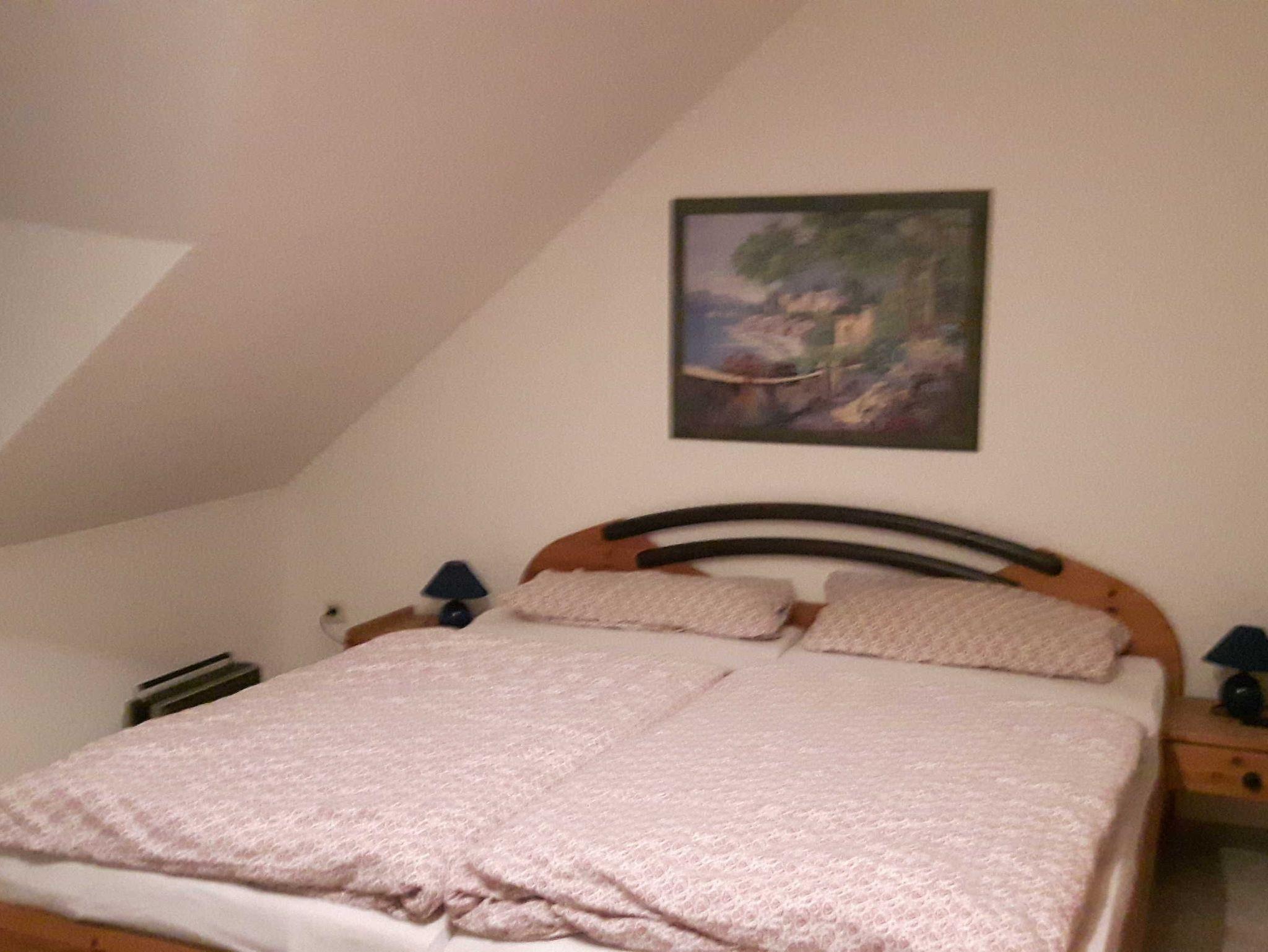 Gemütliche Ferienwohnung, 1. Etage, teils schräge Wände, 1 Elternschlafzimmer, 1 Kinderzimmer mit Etagenbett, keine Fahrräder.