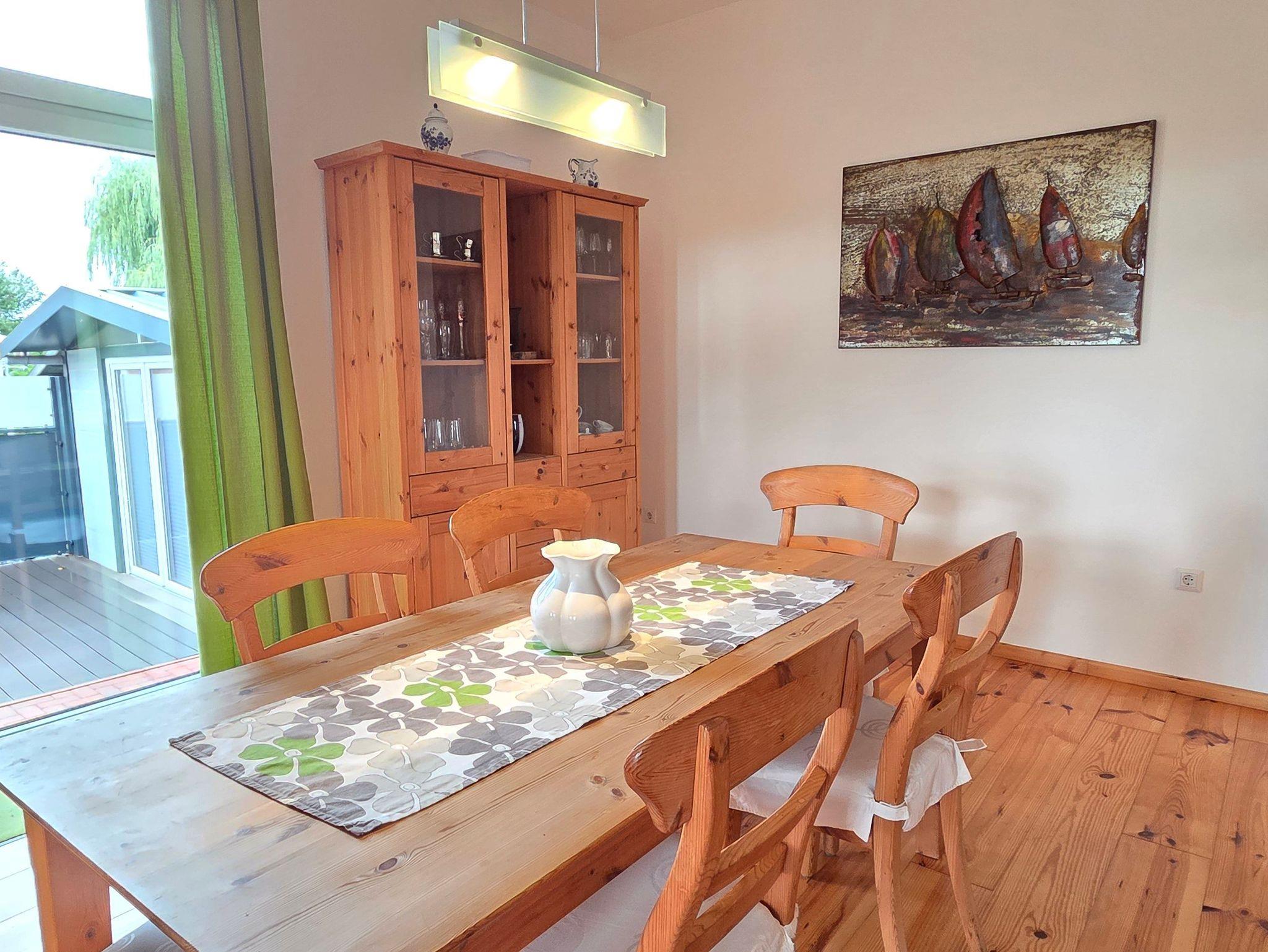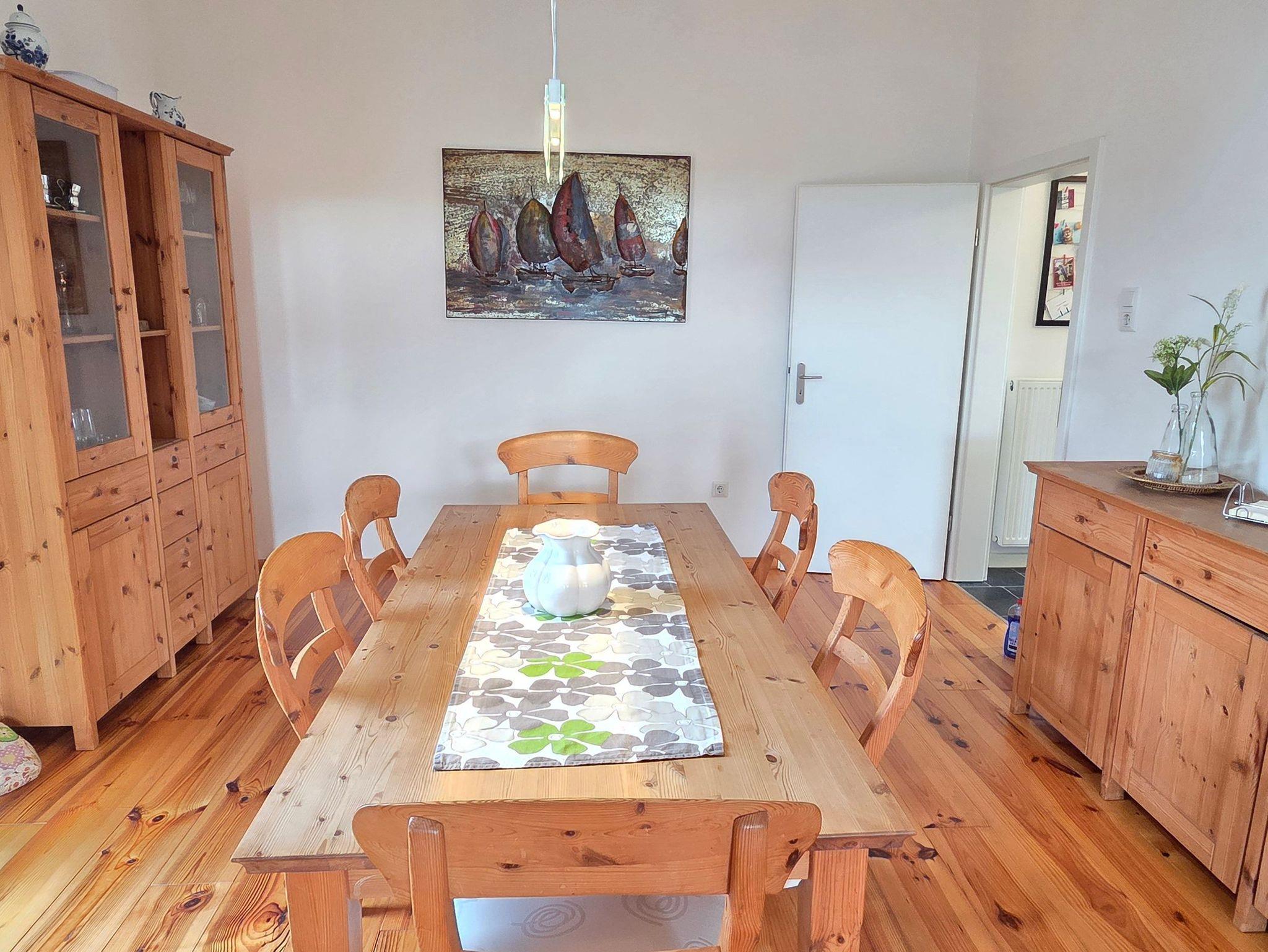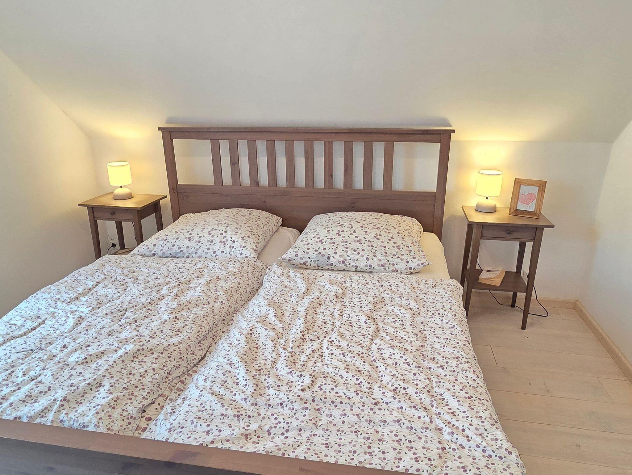 Der offene Wohn- und Essbereich lädt zum Verweilen ein und bietet ausreichend Platz für gesellige Stunden. Die separate, voll ausgestattete Küche ermöglicht Ihnen eine bequeme Selbstversorgung. Zwei gemütliche Schlafzimmer im Obergeschoss sorgen für einen erholsamen Schlaf: eines mit einem komfortablen Doppelbett, das andere mit zwei Einzelbetten. Neben einem geräumigen Badezimmer mit Dusche und Badewanne ist ein zusätzliches Gäste-WC vorhanden.