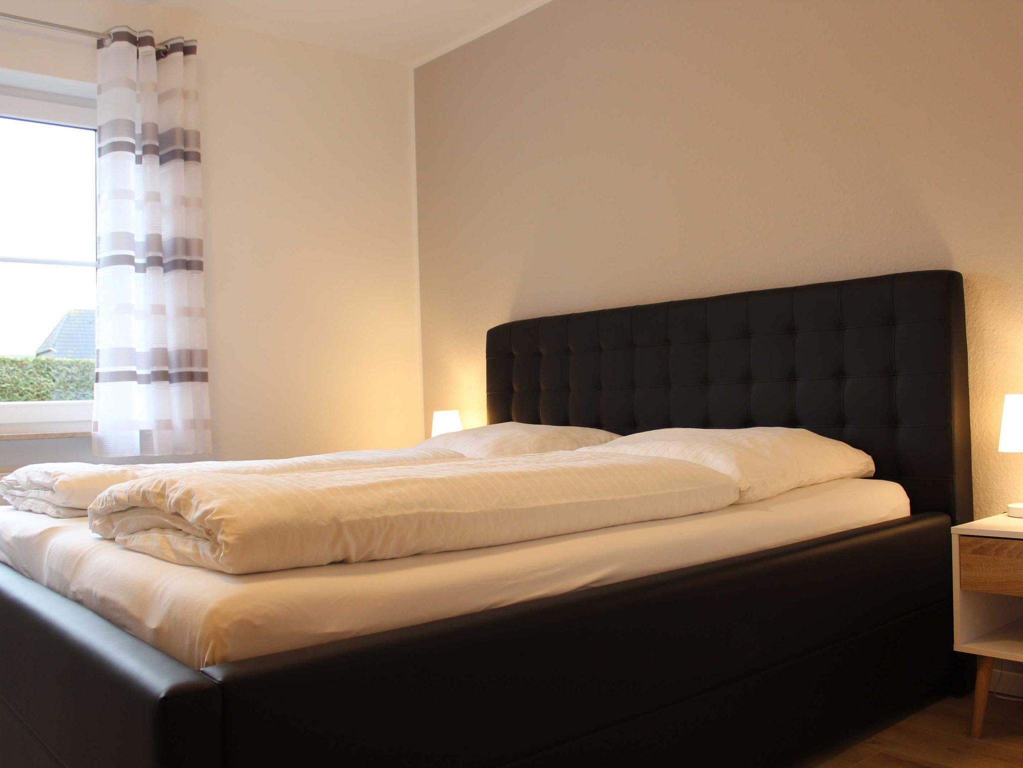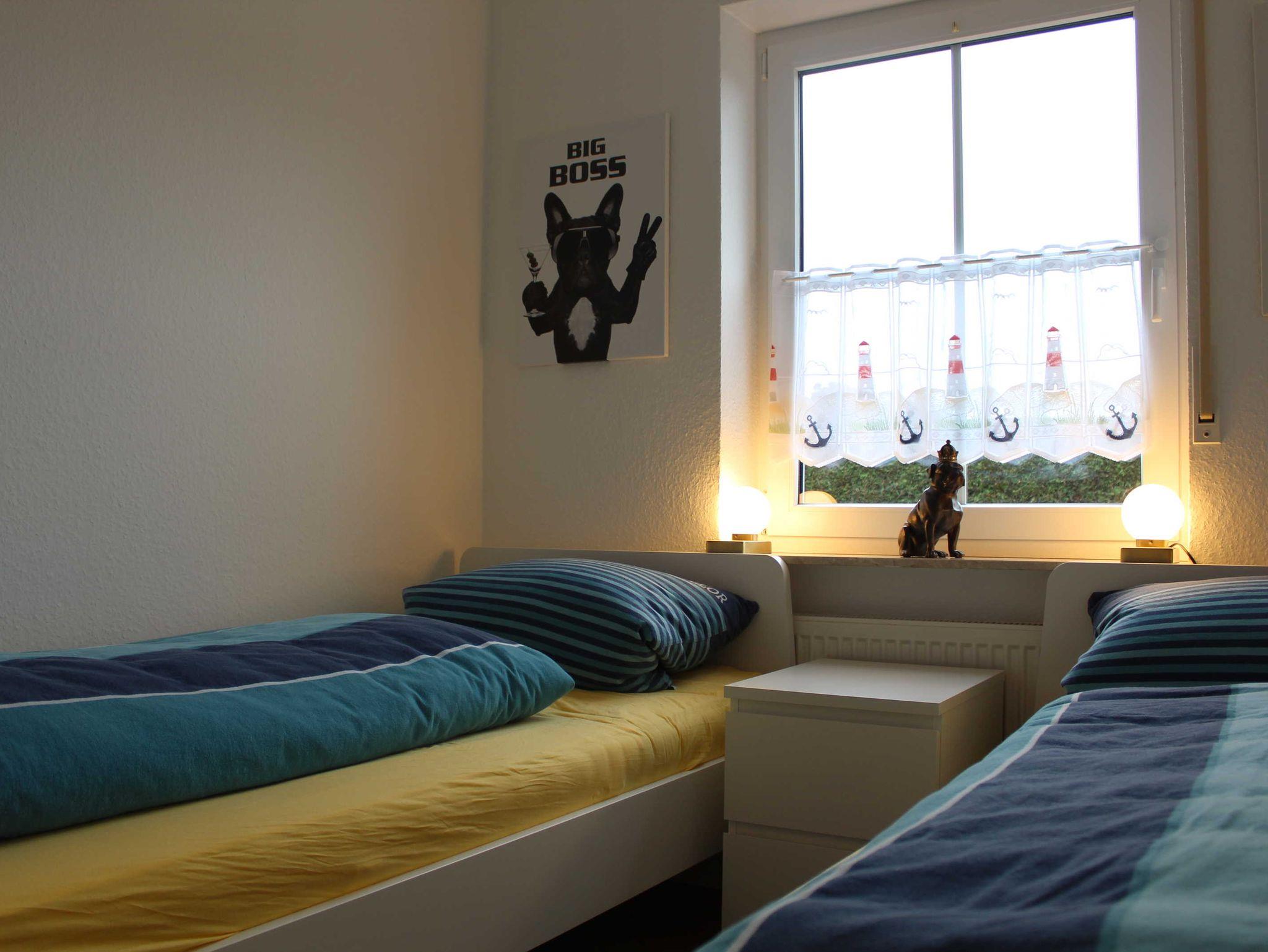 Diese moderne und im Jahr 2020 umfassend renovierte Erdgeschosswohnung verfügt auf ca. 56m² über einen Wohn- und Essbereich mit einer offenen Küche, über 2 separate Schlafzimmer (Doppelbett bzw. zwei Einzelbetten) sowie über ein Duschbad. Vom Wohnraum gelangen Sie auf die möblierte Terrasse mit Gartenteil. Alle Räume sind mit Fliesen bzw. Laminat, die Fenster mit Rollläden ausgestattet. Die geschmackvoll und hochwertig eingerichtete Wohnung bietet Ihnen alles, was Sie in ihrem Urlaub zur Erholung benötigen. WLAN steht Ihnen kostenlos zur Verfügung.