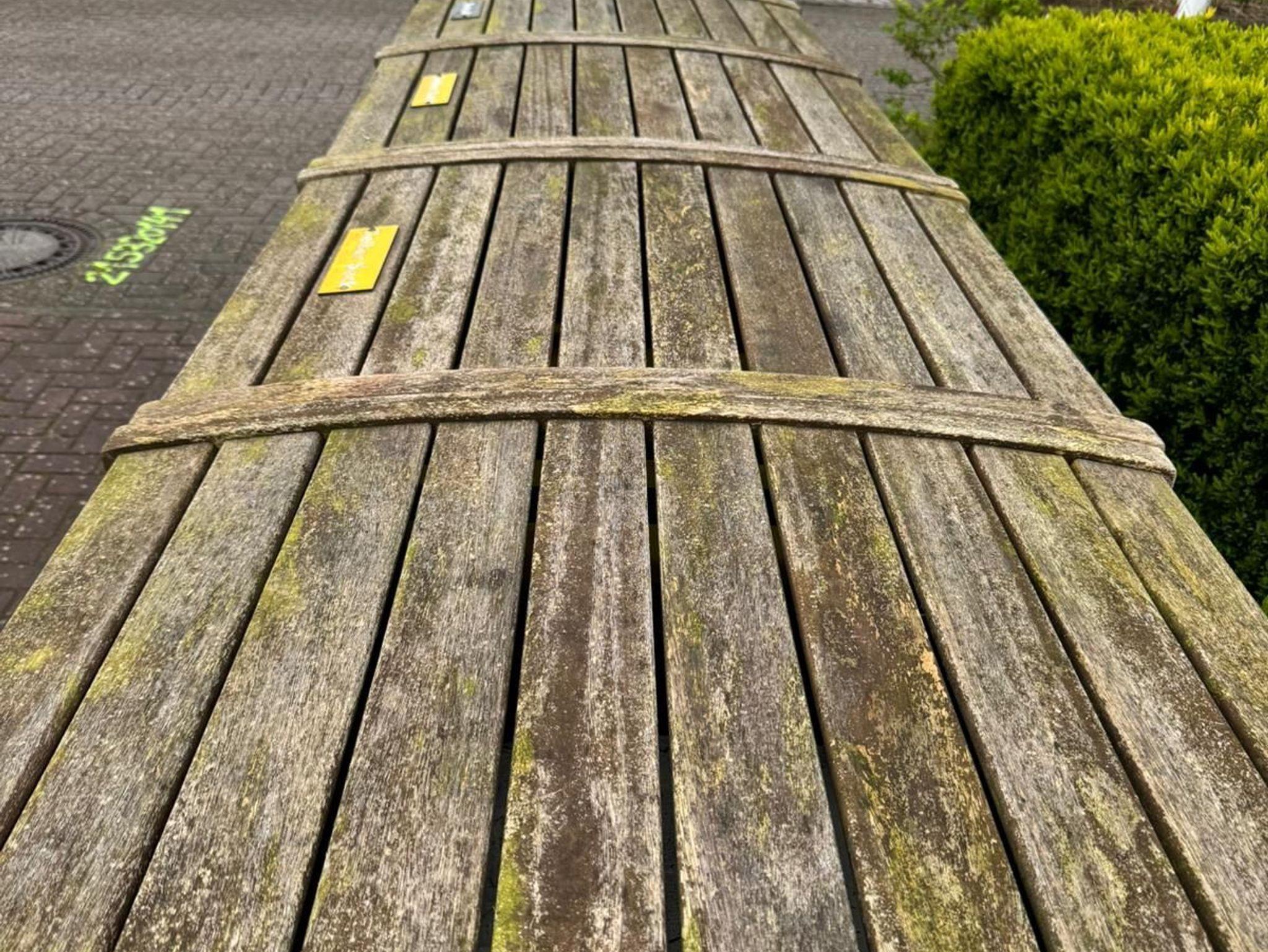 In einem Holzhaus befinden sich die Gartenmöbel und bietet Platz für Ihre Fahrräder.