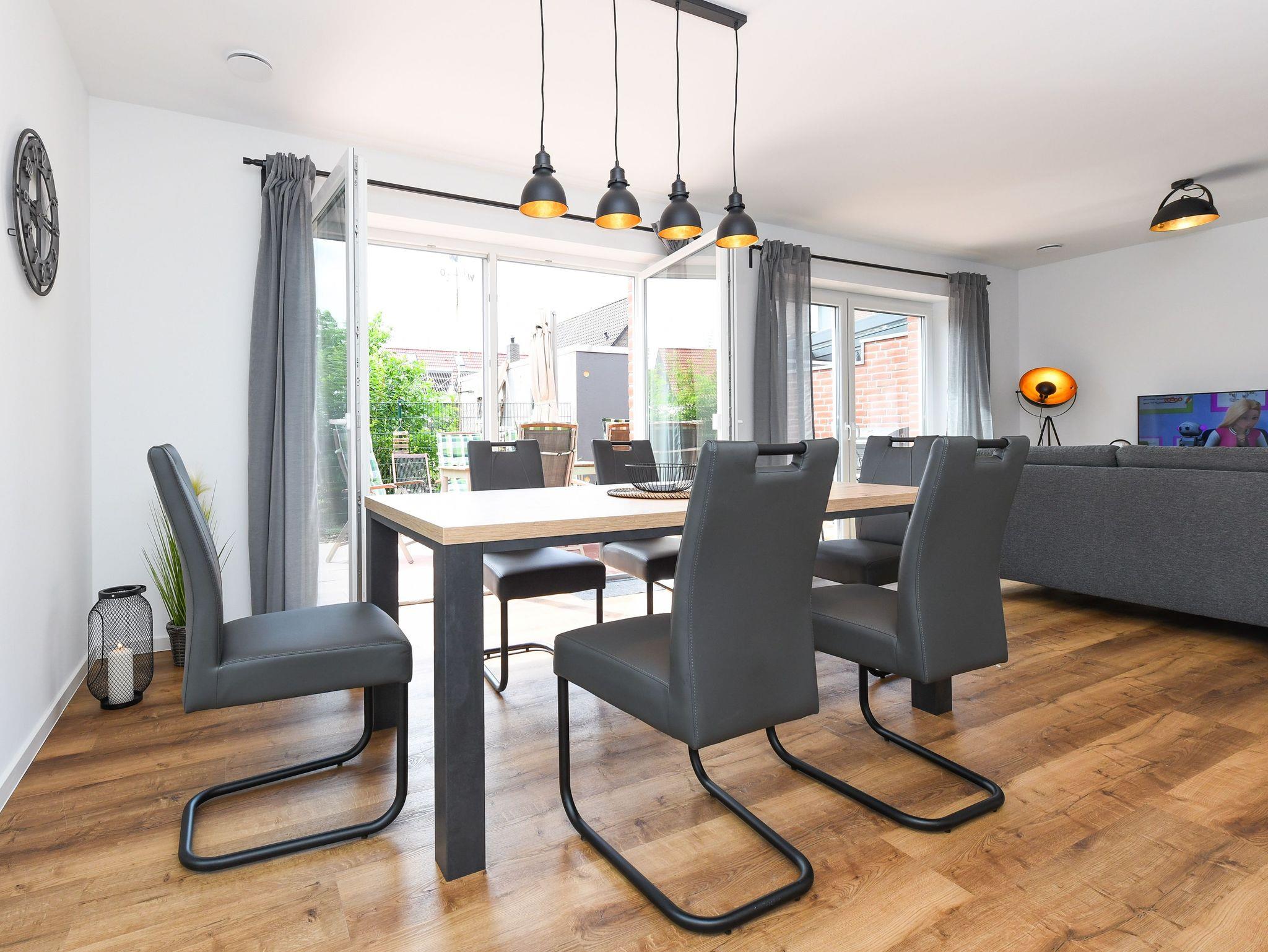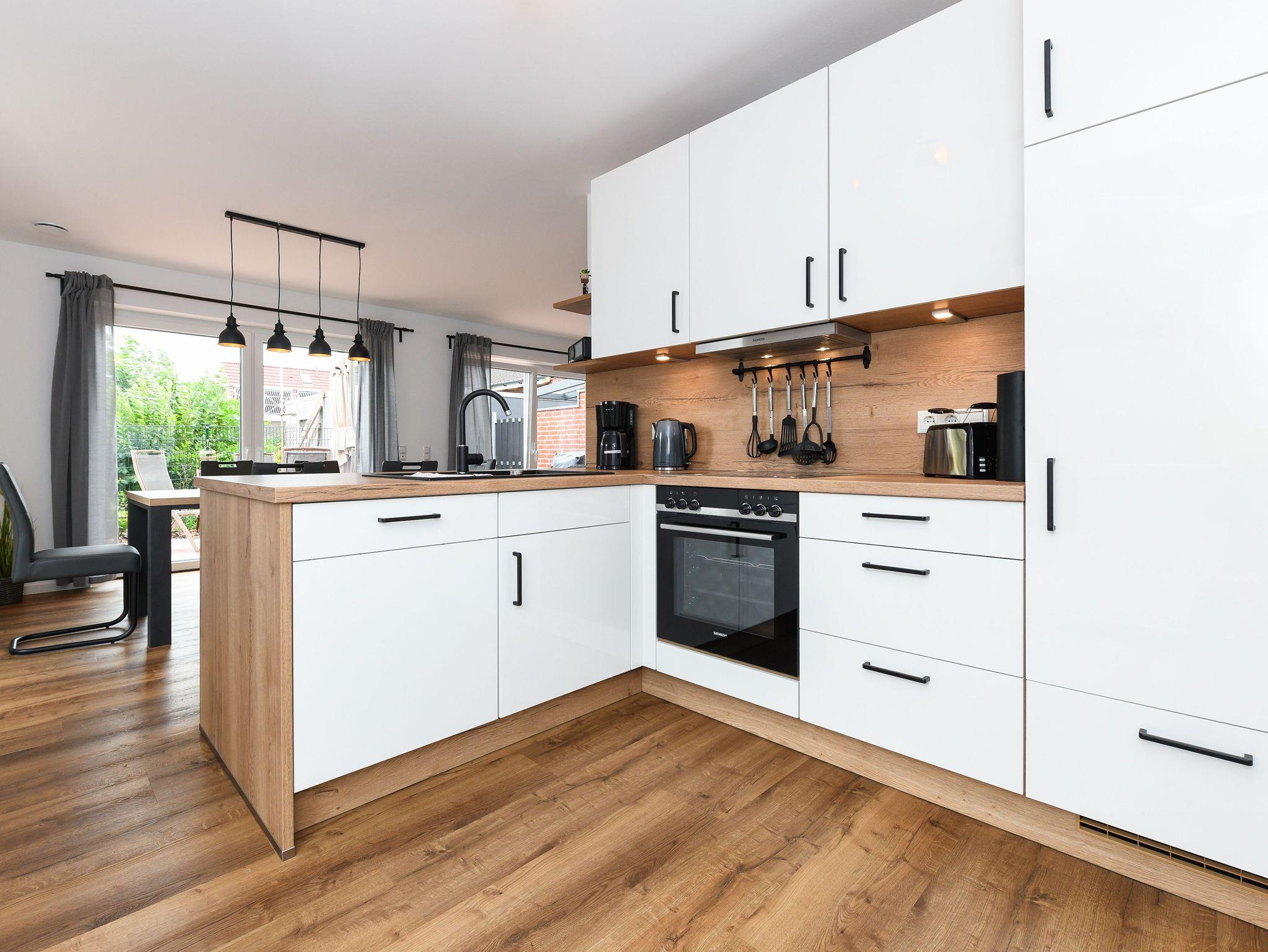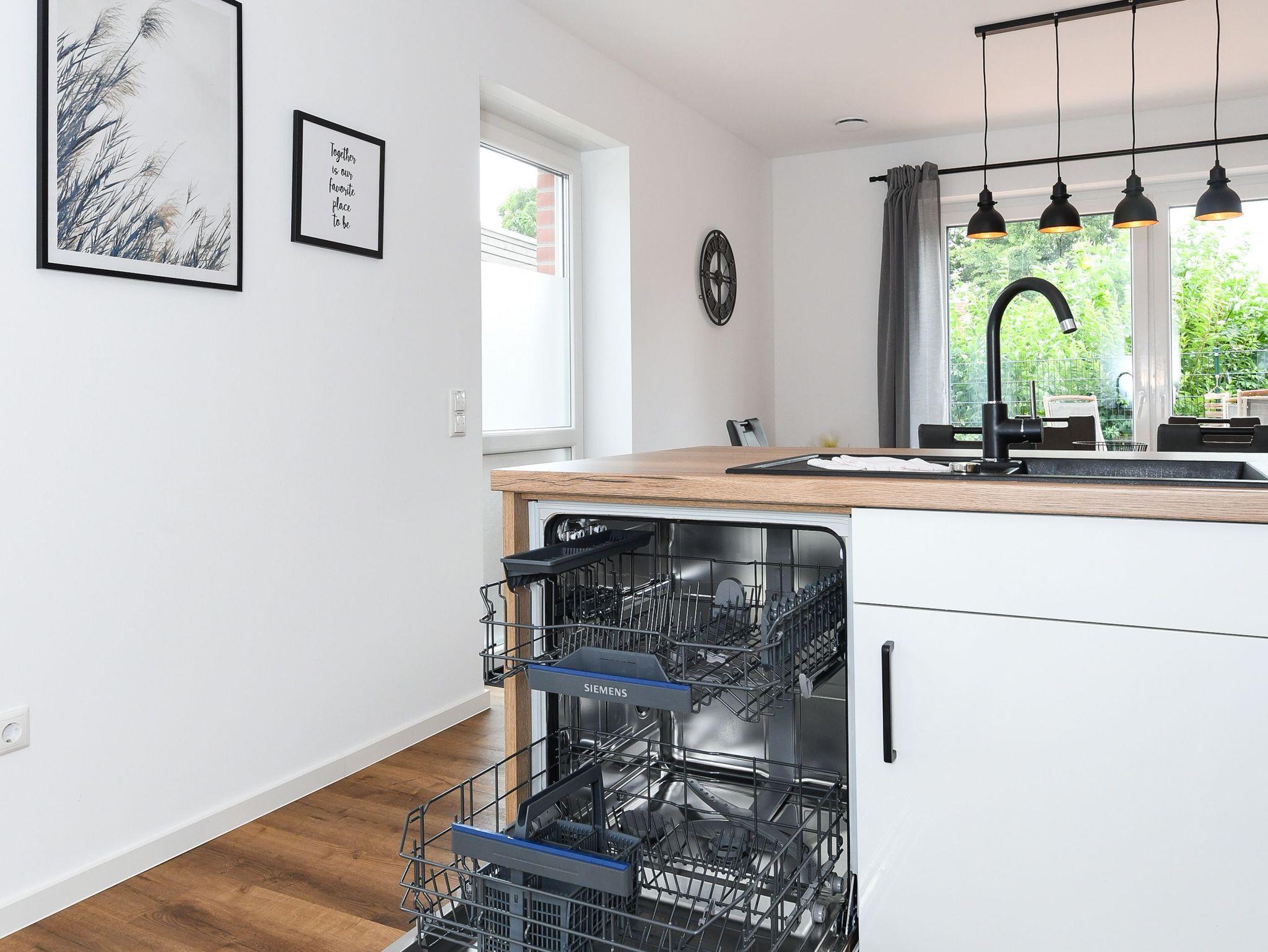 Das Ferienhaus ist modern-gemütlich, hell und freundlich gestaltet und eingerichtet sowie äußerst hochwertig mit viel Liebe zum Detail ausgestattet. Es verfügt zum Beispiel eine Terrasse, über eine ausgestattete moderne Küche mit Geschirrspülmaschine und Mikrowelle, und es stehen Waschmaschine und Wäschetrockner zum kostenlosen Benutzen bereit.