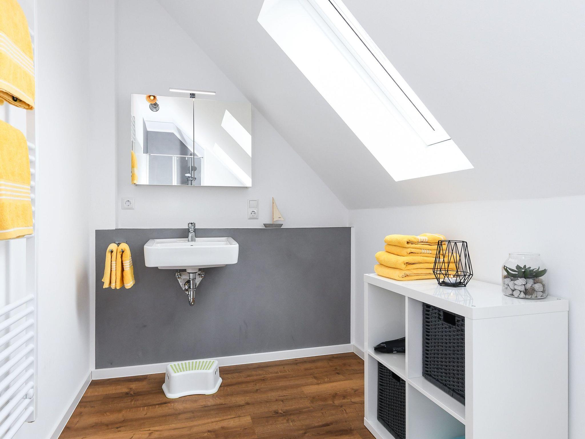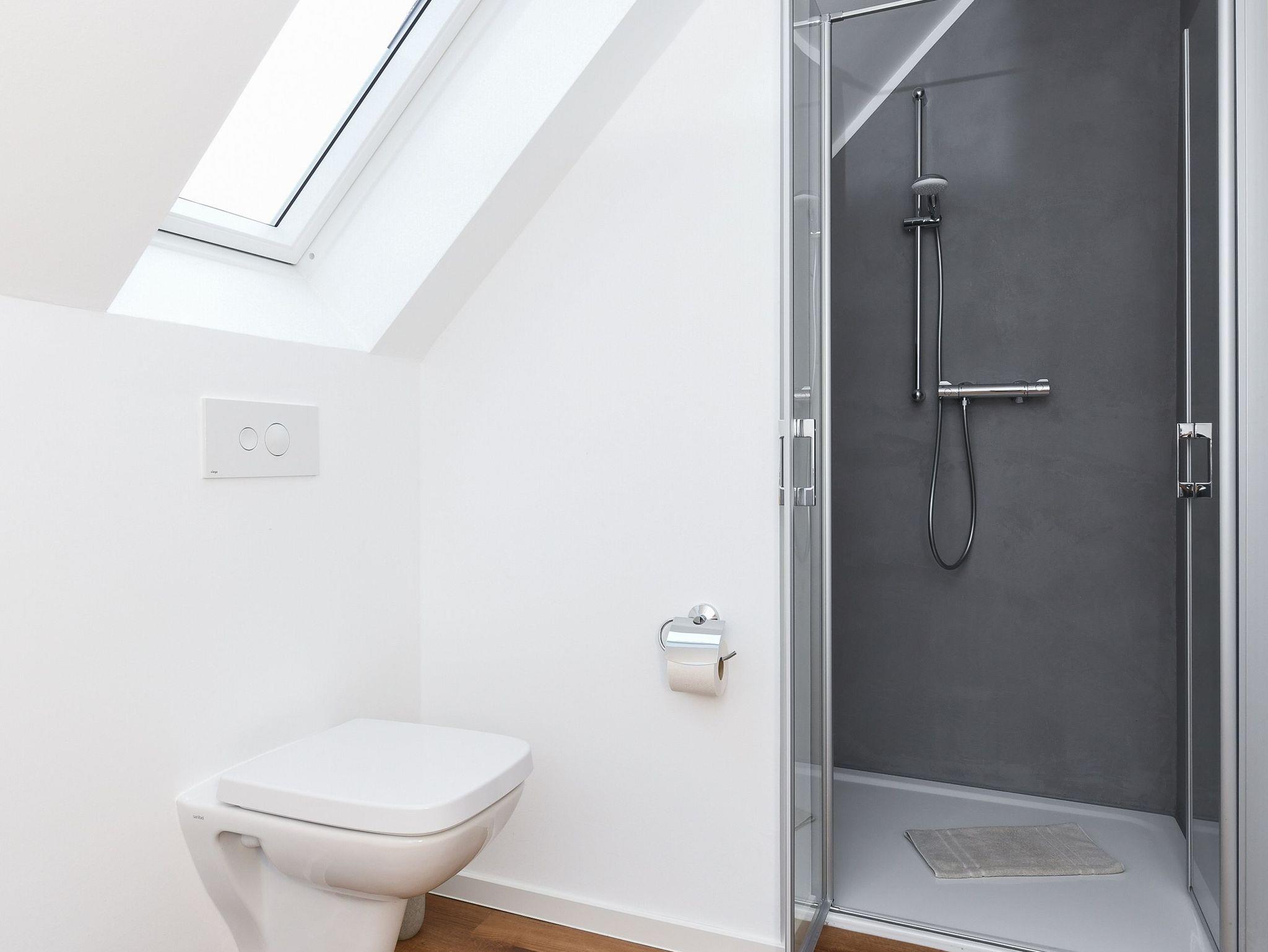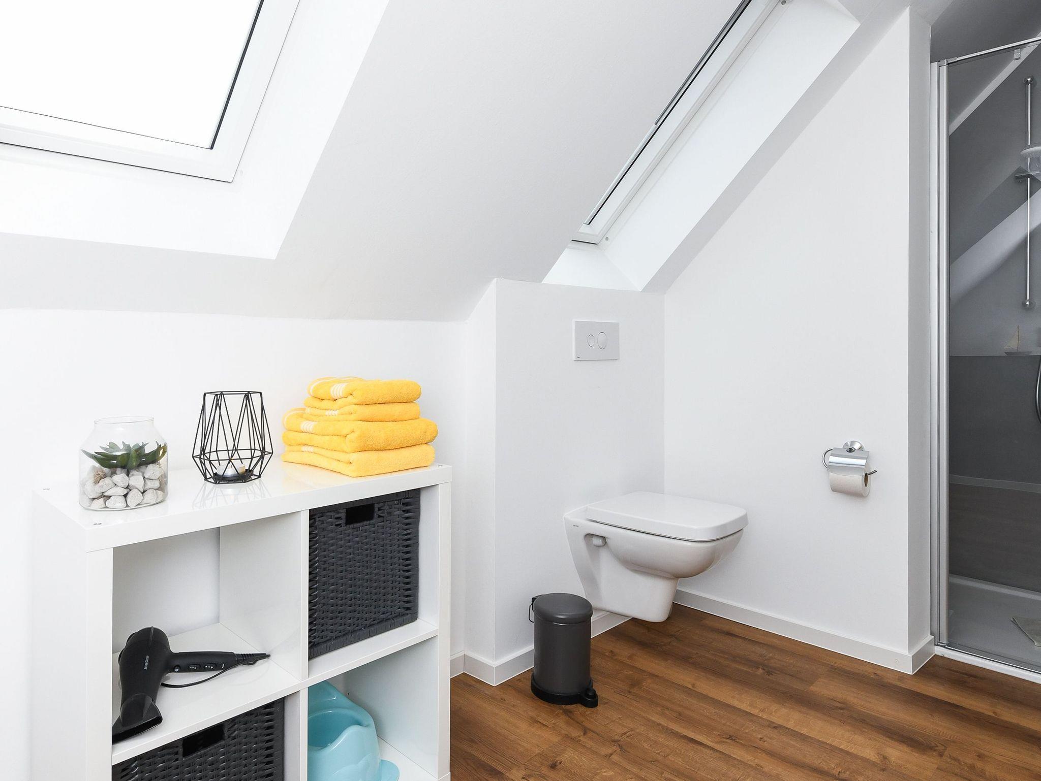 zweites Badezimmer mit Dusche, Waschtisch und WC