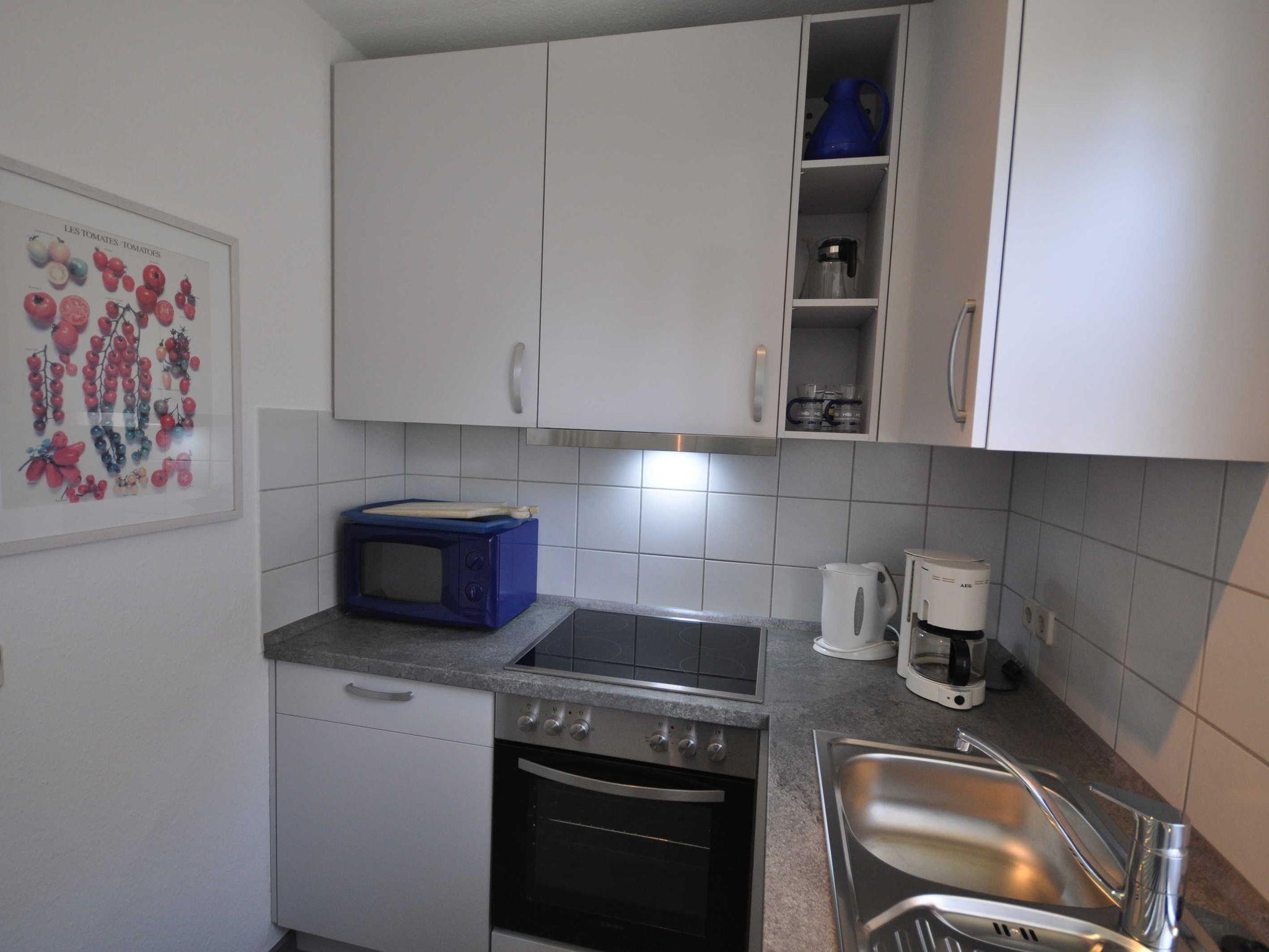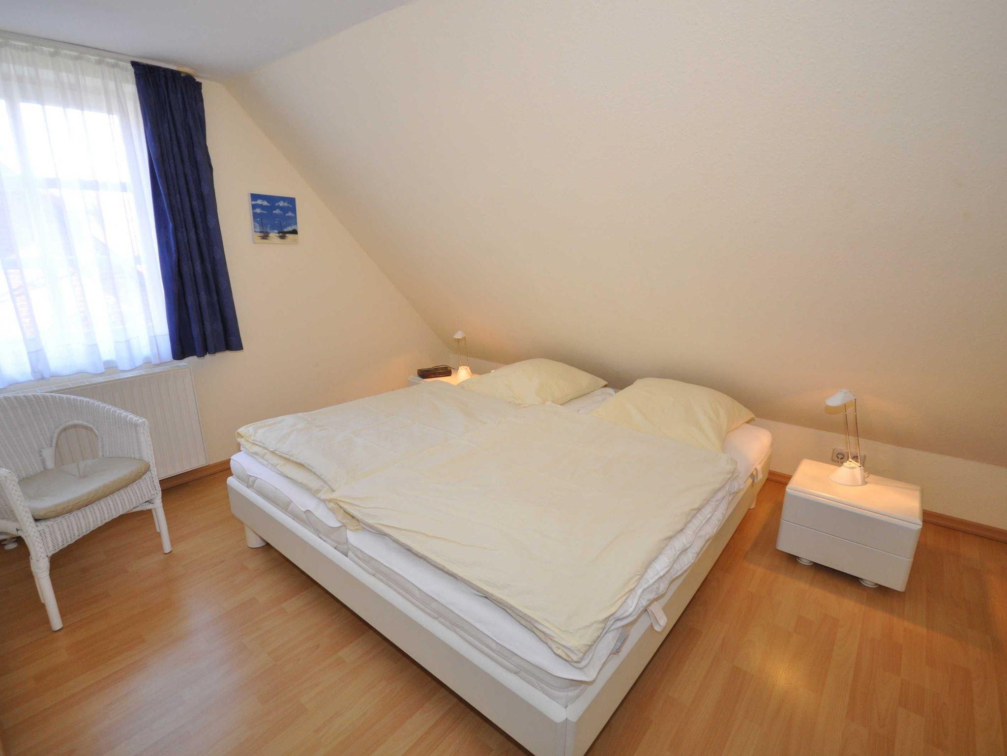 Die Doppelhaushälfte ist hell und freundlich ausgestattet und bietet Platz für bis zu 4 Personen und ein Baby/Kleinkind. Im Erdgeschoss befinden sich ein großer Wohn- und Essbereich mit Ausgang zur Südterrasse, eine separate, vollständig ausgestattete Küche sowie ein Gäste-WC. Das 1. Obergeschoss verfügt über ein Schlafzimmer mit Doppelbett und ein Schlafzimmer mit zwei Einzelbetten sowie über ein Badezimmer mit Dusche und WC. Die Böden des Ferienhauses sind mit Fliesen bzw. Laminat ausgestattet.
