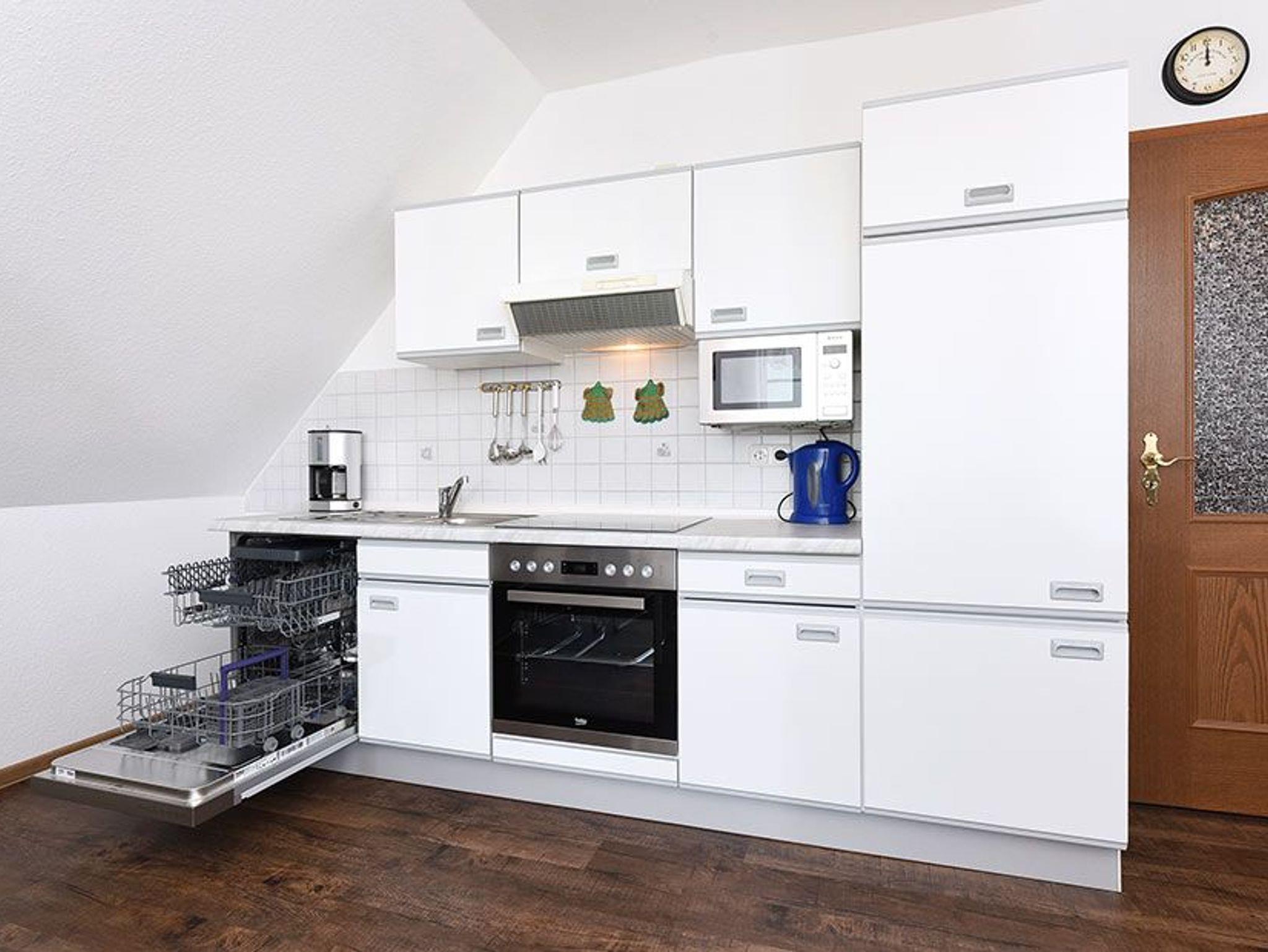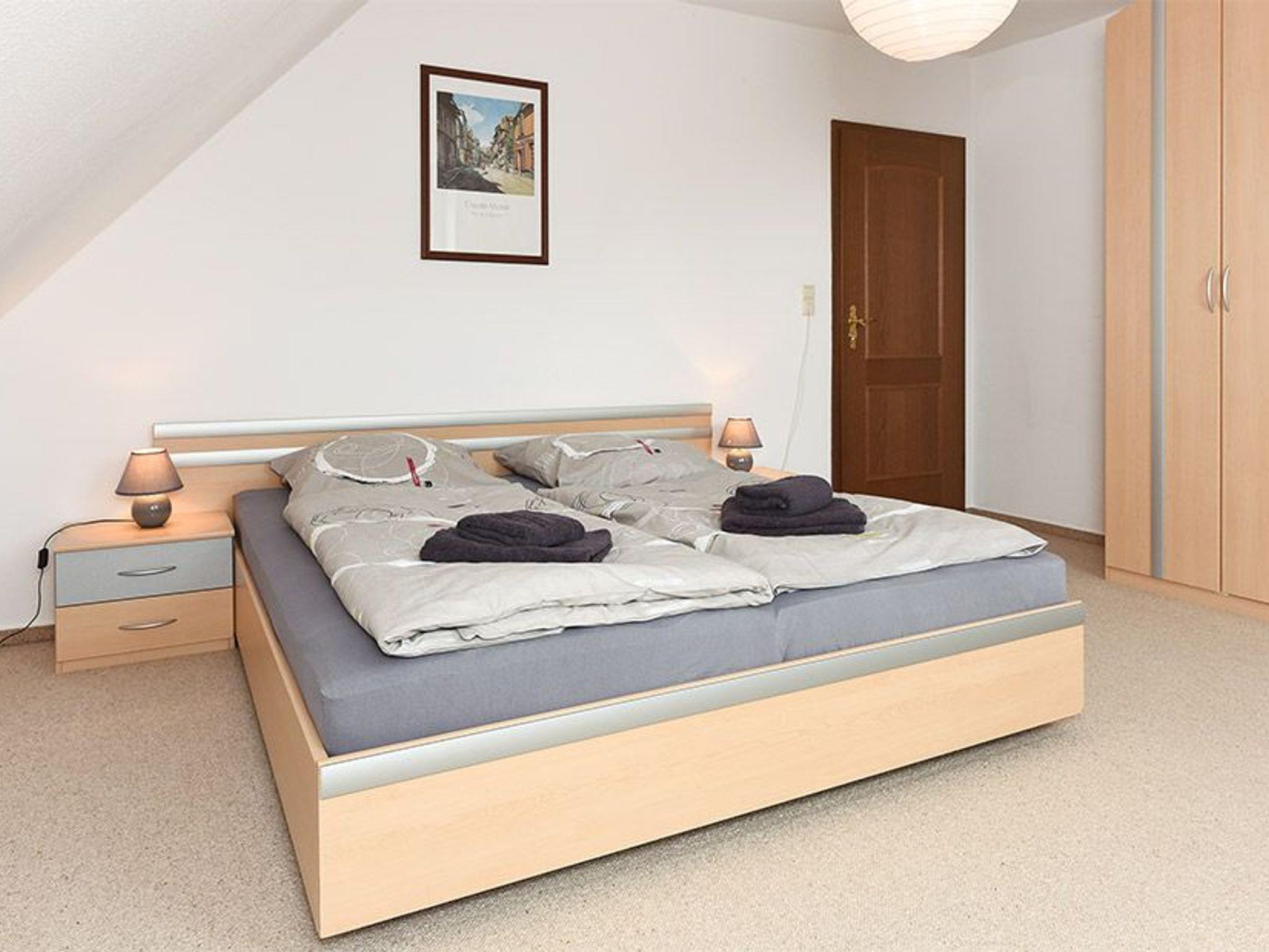 Größe ca. 58 Quadratmeter, Wohnraum mit integrierter Küche, Schlafzimmer, zweites separates Schlafzimmer, Badezimmer mit Dusche, Waschtisch und WC, Obergeschoss, Balkon, überdachte Terrasse (am Garten, kein direkter Wohnungszugang), optimal für 2 bis 4 Personen und zusätzlich ein Kleinkind.