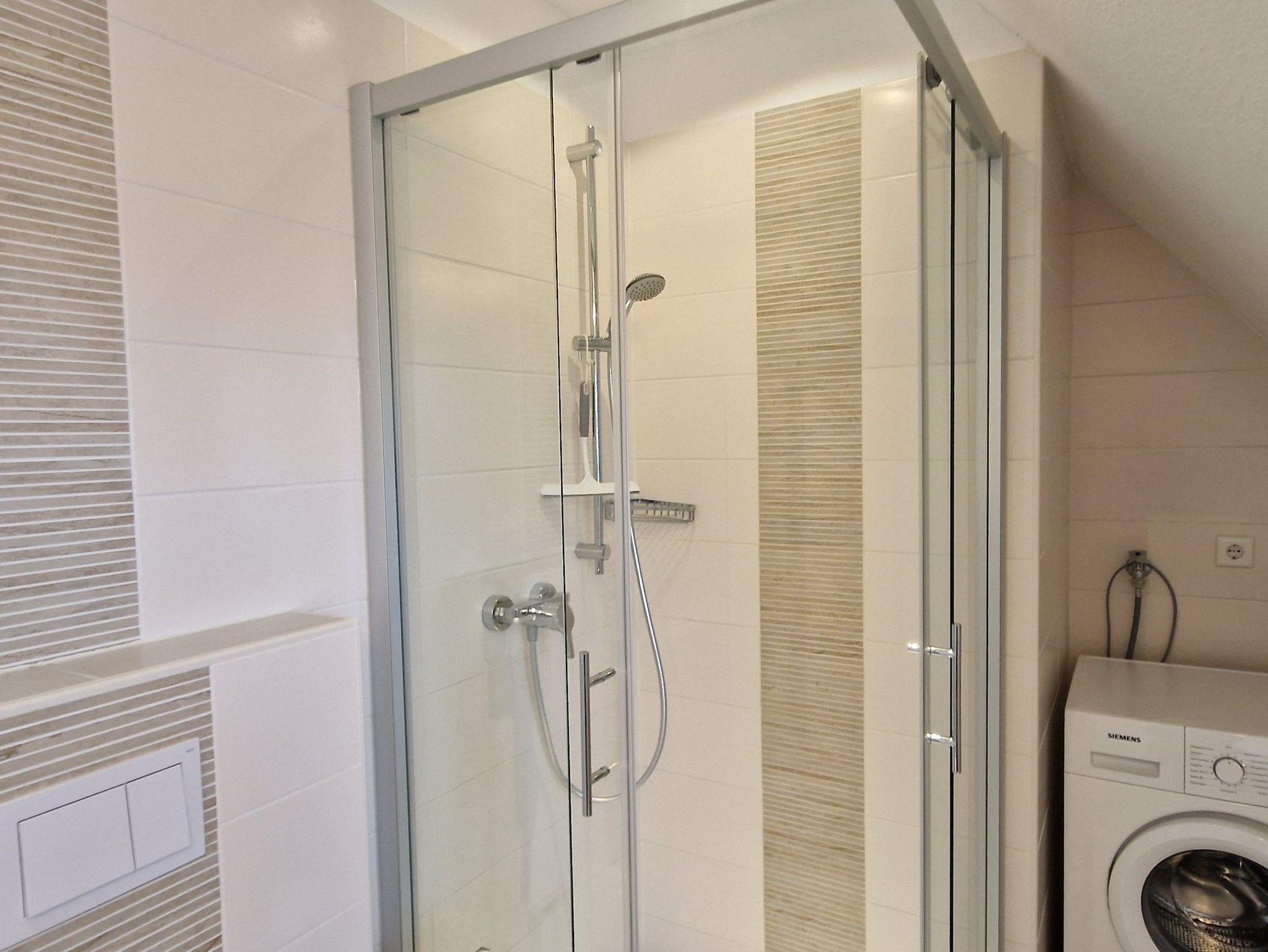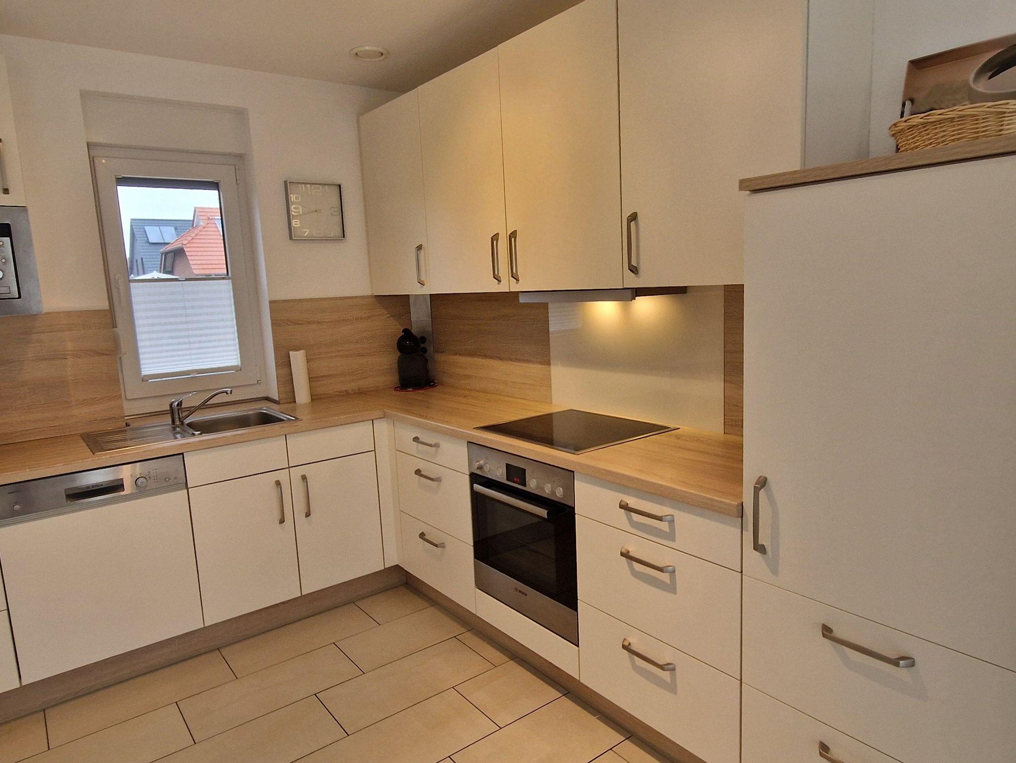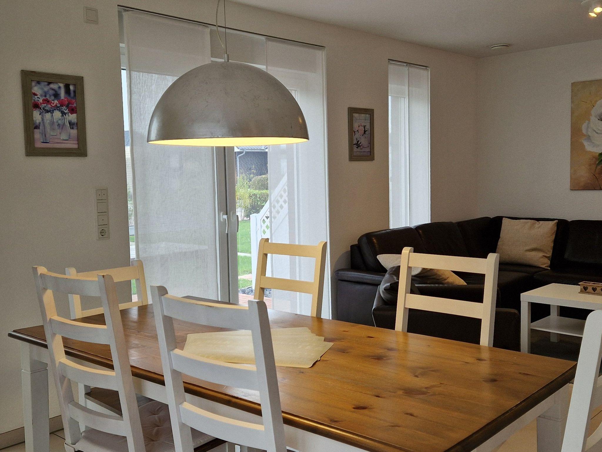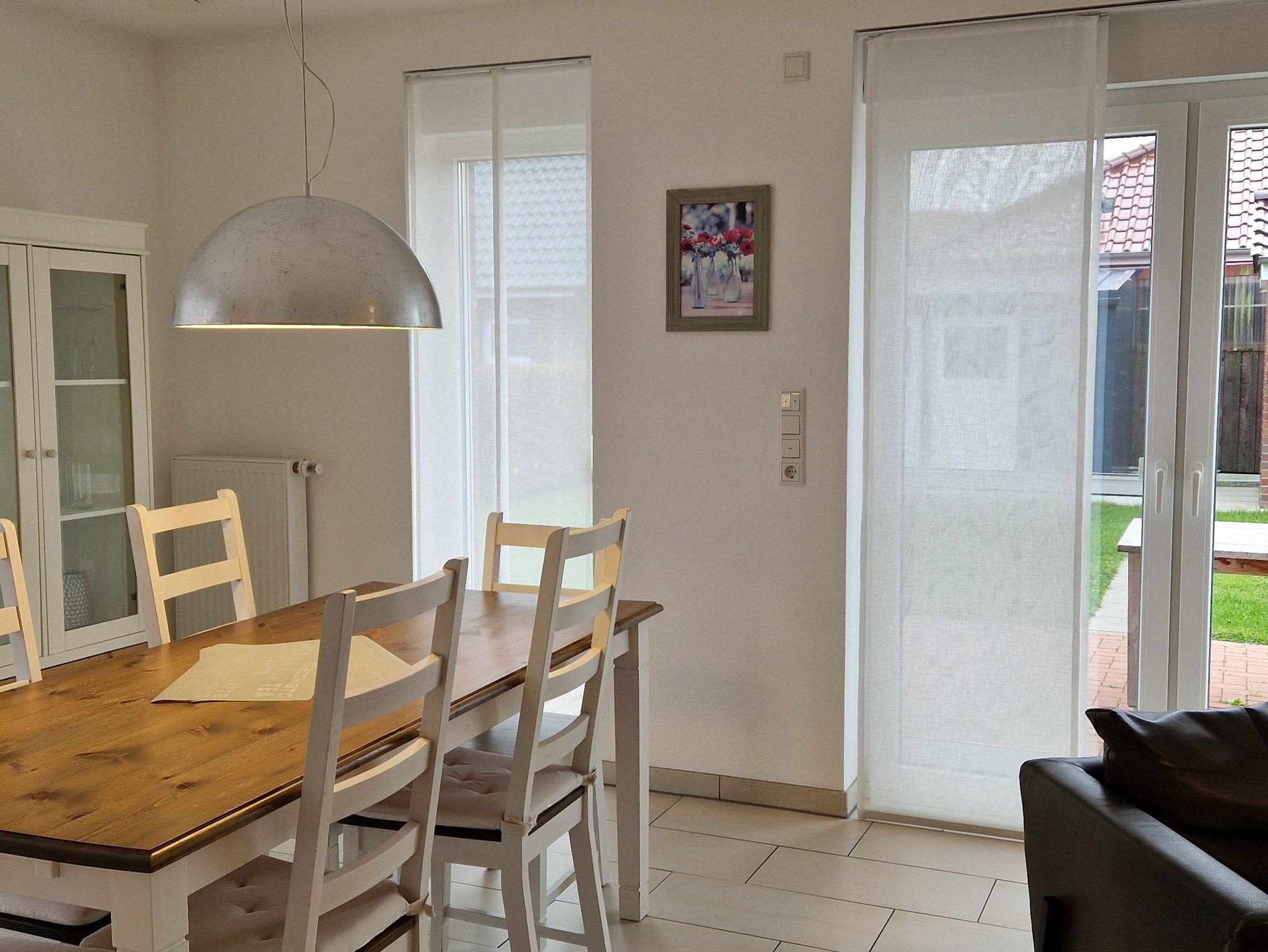 Die Doppelhaushälfte verspricht auf ca. 80m² höchsten Wohnkomfort und bietet ausreichend Platz für die ganze Familie. Neben einem großzügigen und vollständig ausgestatteten Bereich im Erdgeschoss für Kochen, Essen und Wohnen sowie einem Gäste-WC, verfügt das Obergeschoss über drei Schlafzimmer (ein Doppelbett, ein 1,40m Bett, zwei Einzelbetten) und ein großzügiges Duschbad. WLAN kann kostenlos genutzt werden. Das Ferienhaus verfügt außerdem über eine Lüftungsanlage. Alle Fenster sind mit Rollläden, teilweise mit Fliegenschutzgittern ausgestattet. Im gesamten Objekt sind Fliesen bzw. Laminat verlegt. Eine hochwertige Ausführung sowie eine familiengerechte Aufteilung sorgen für ein entsprechendes Ambiente.