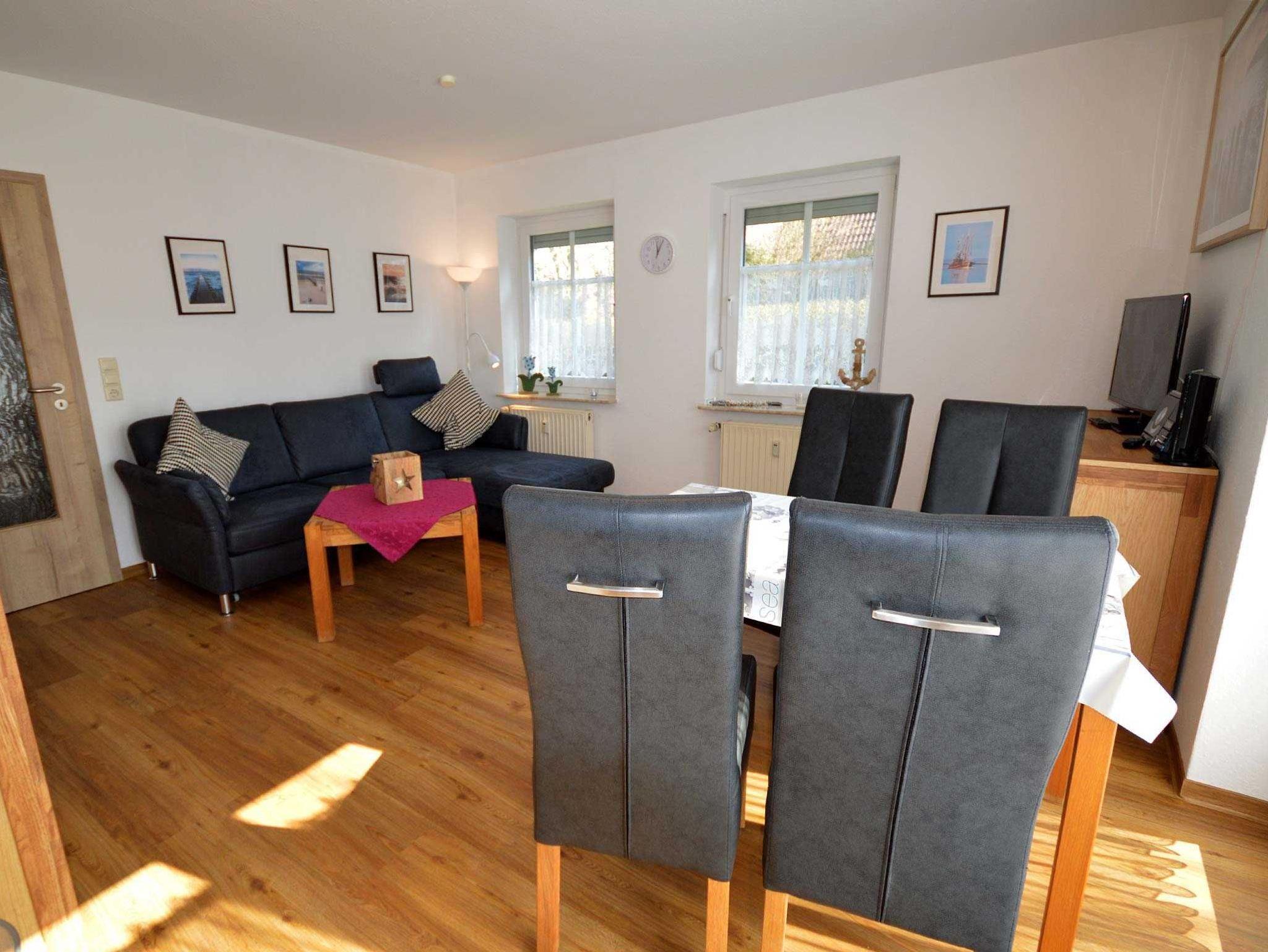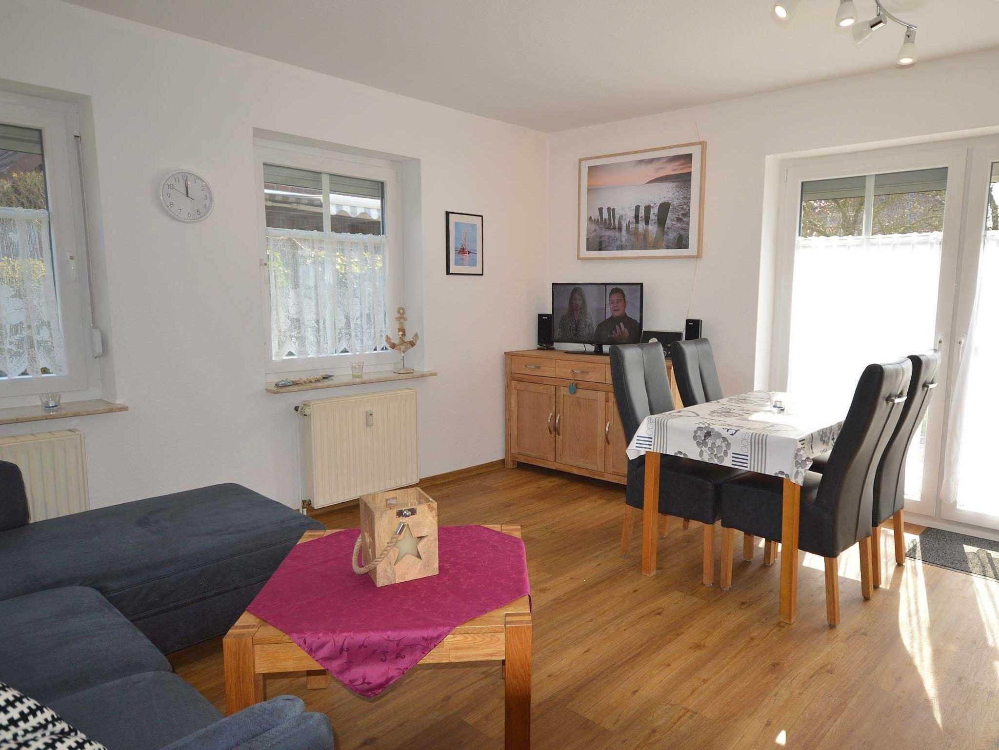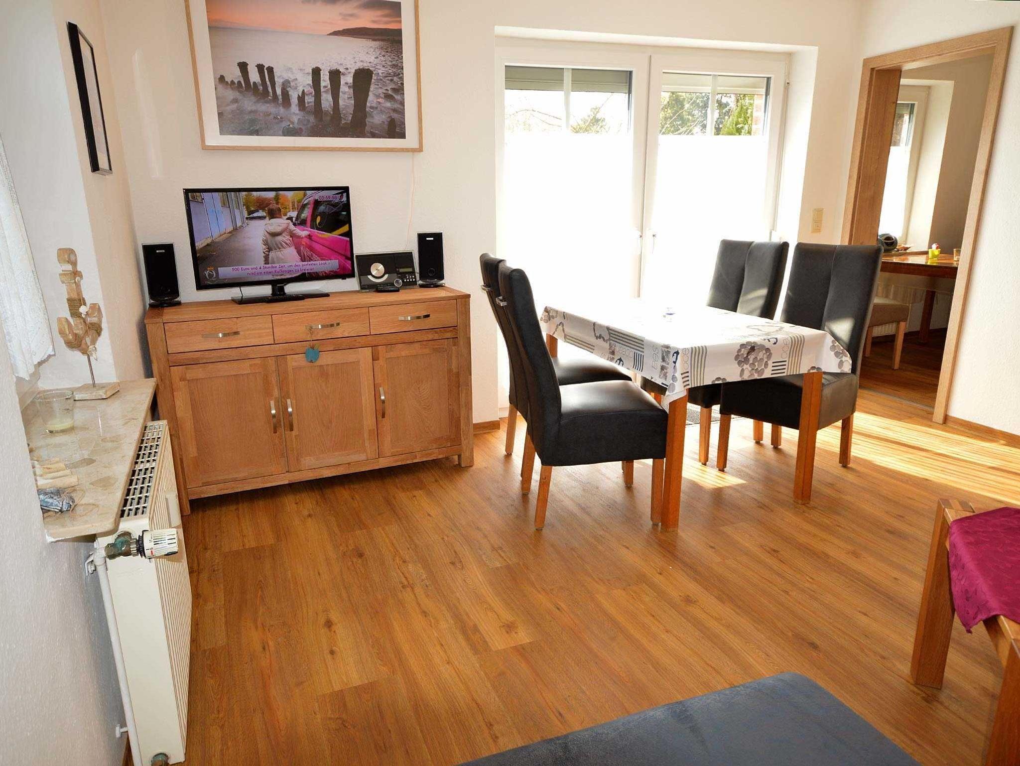 Schöne helle und gemütliche Ferienwohnung für 2-3 Personen. Im Wohn- und Esszimmer befinden sich ein 3er-Sofa( Ottomane) zum Verweilen vor dem Flachbildschirm und der Hifi-Anlage, sowie die Essecke zum Frühstücken oder Mittagessen.