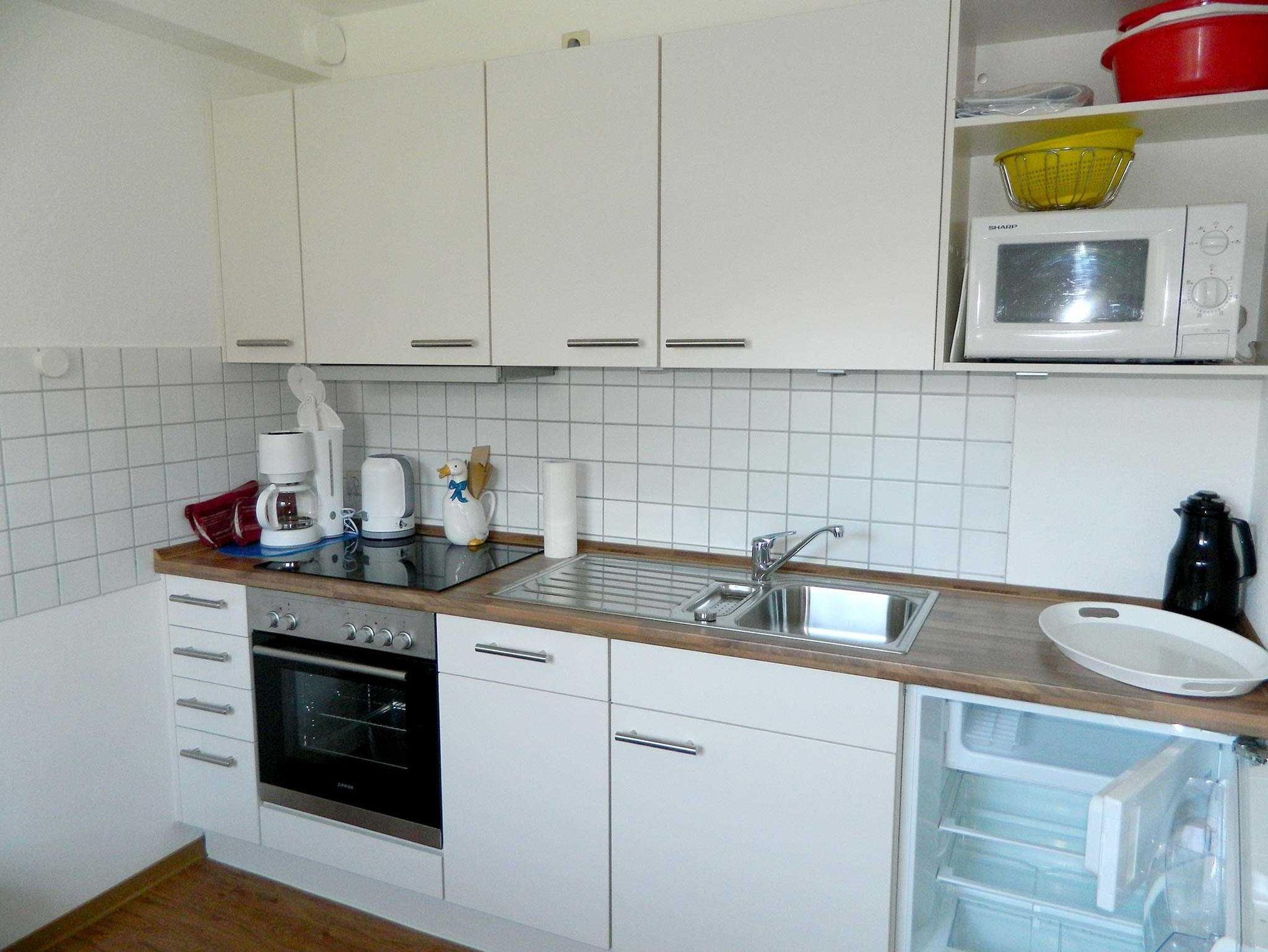 Vom Wohnzimmer aus gelangen Sie direkt auf die Terrasse und in den Garten (Südlage). Die angrenzende sep. Küche ist voll ausgestattet, mit Backofen, Cerankochfeld, Kühlschrank mit Gefrierfach, Spülmaschine, Mikrowelle etc. Das Schlafzimmer ist mit Doppelbett und Kleiderschrank ausgestattet. Im Badezimmer mit Dusche/WC stehen Fön und eine Waschmaschine zur Verfügung. Alle Fenster sind mit Aussenrollos ausgestattet.