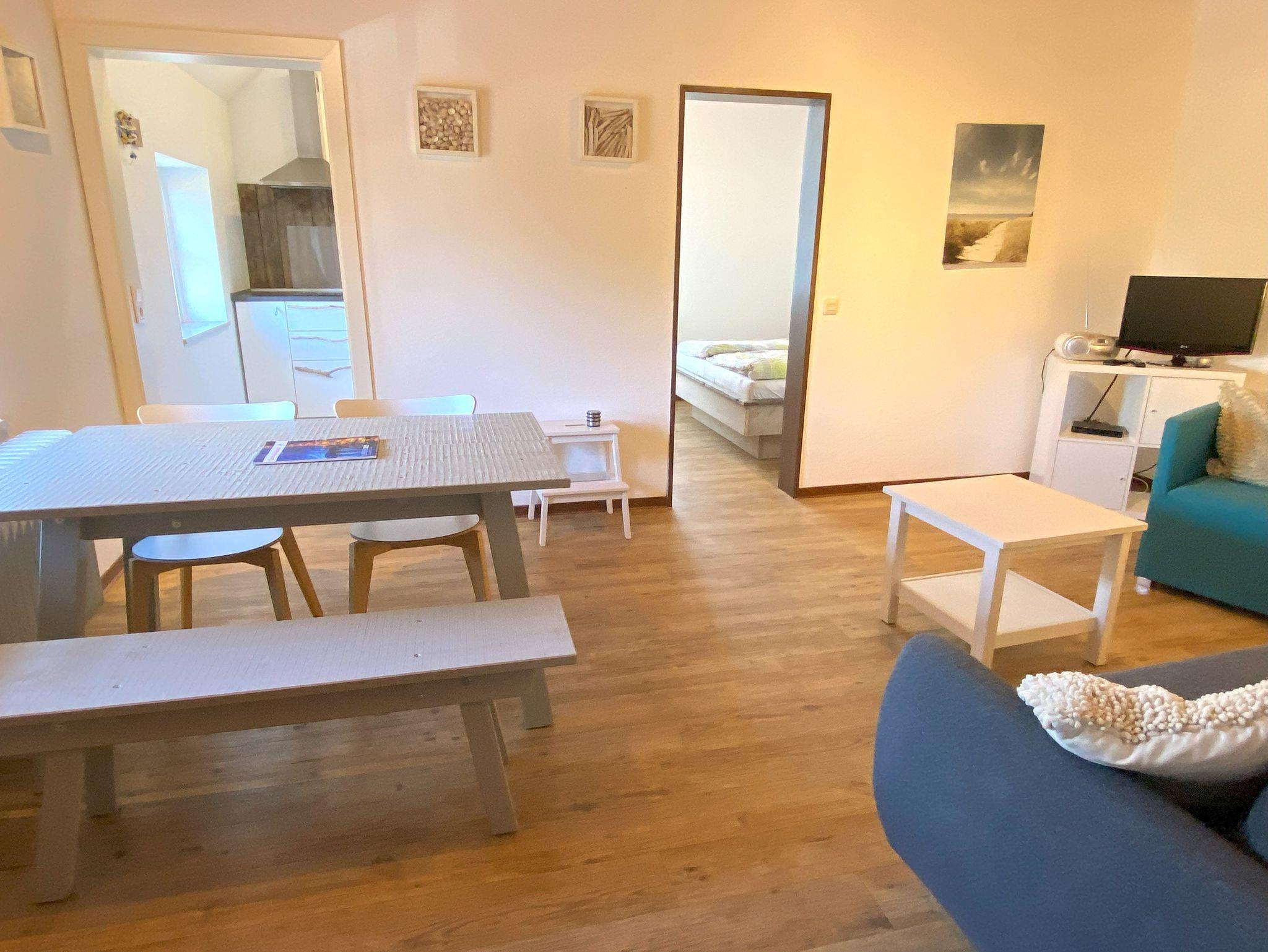 Die helle 38 qm Ferienwohnung Knutt erwartet euch mit einem geräumigen Wohn- und Esszimmer sowie einer modernen Küche mit Spülmaschine, Kaffeemaschine, Mikrowellen-Backofenkombi. Neben dem Schlafzimmer mit handgefertigtem Doppelbett, steht im Wohnbereich das bequeme Schlafsofa auf Anfrage für weitere Personen zur Verfügung.