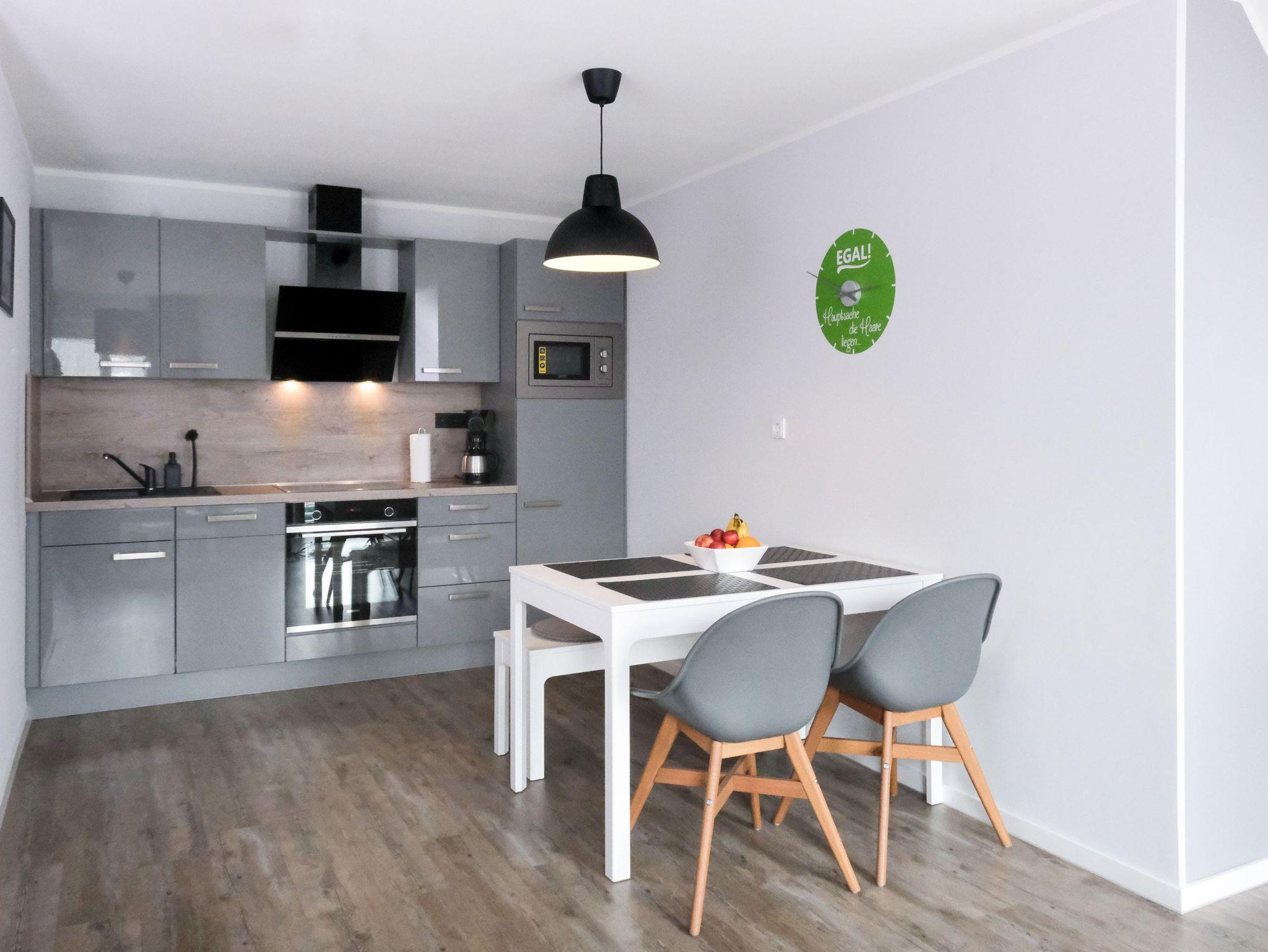 Die Küche verfügt über eine Spülmaschine, einen Backofen mit Cerankochfeld, eine Mikrowelle, einen großen Kühlschrank mit separatem Gefrierfach, eine Kaffeemaschine (wahlweise Pad oder Filter), einen Wasserkocher, Toaster u.v.m.