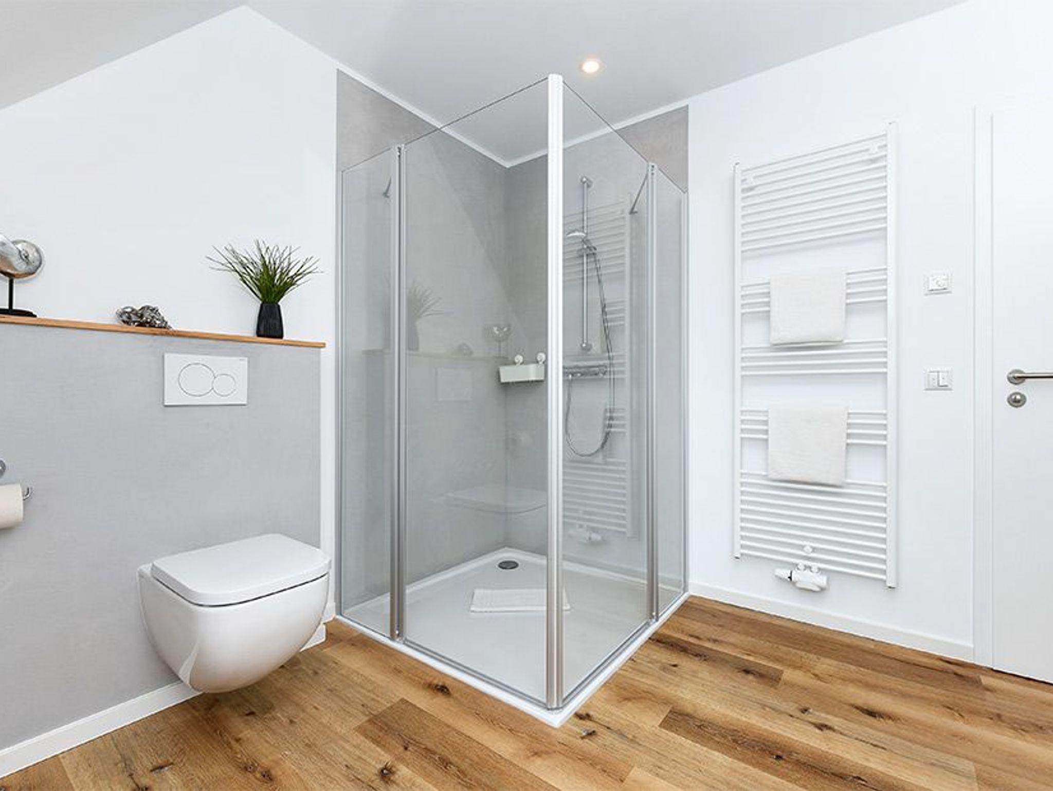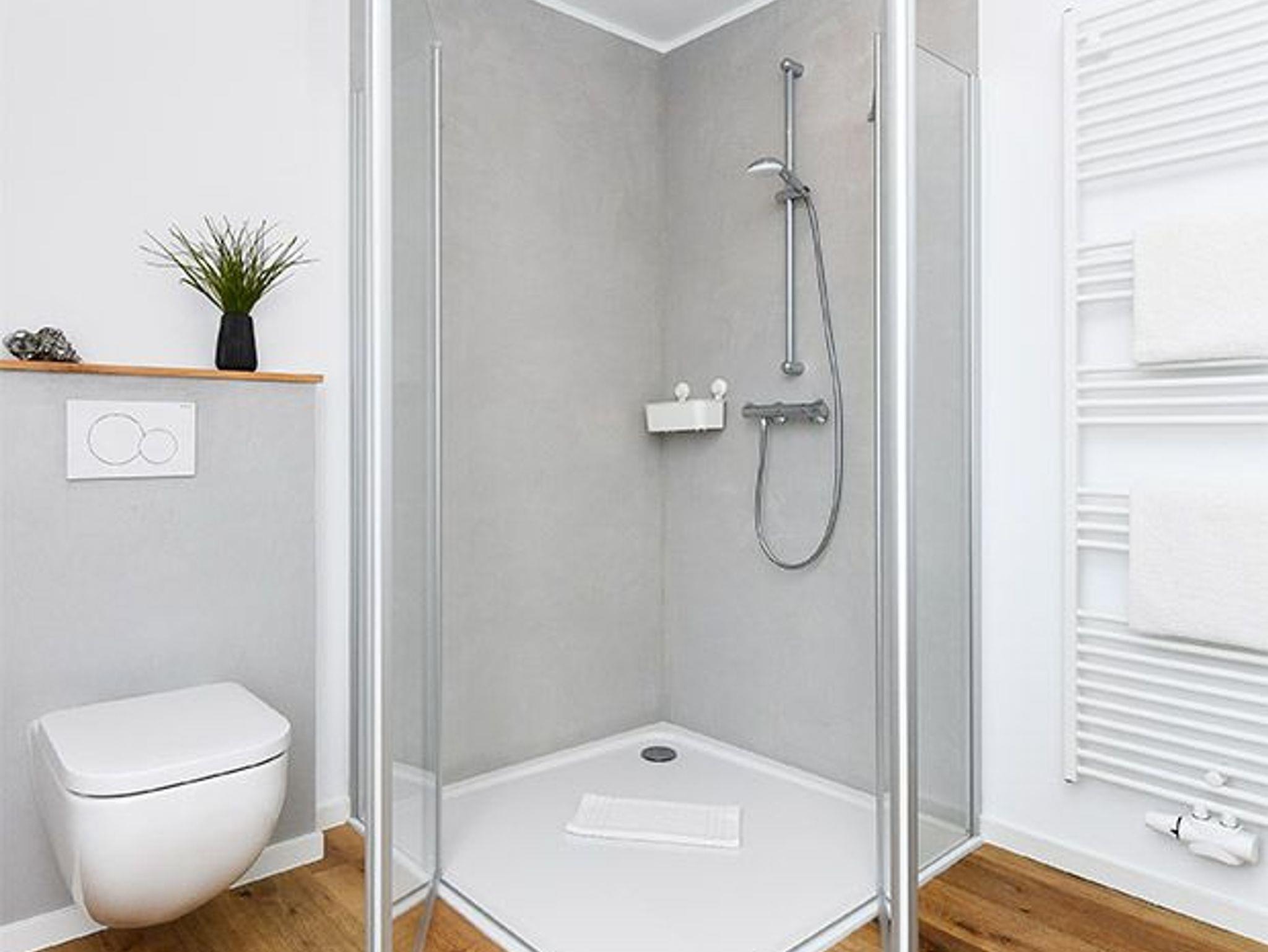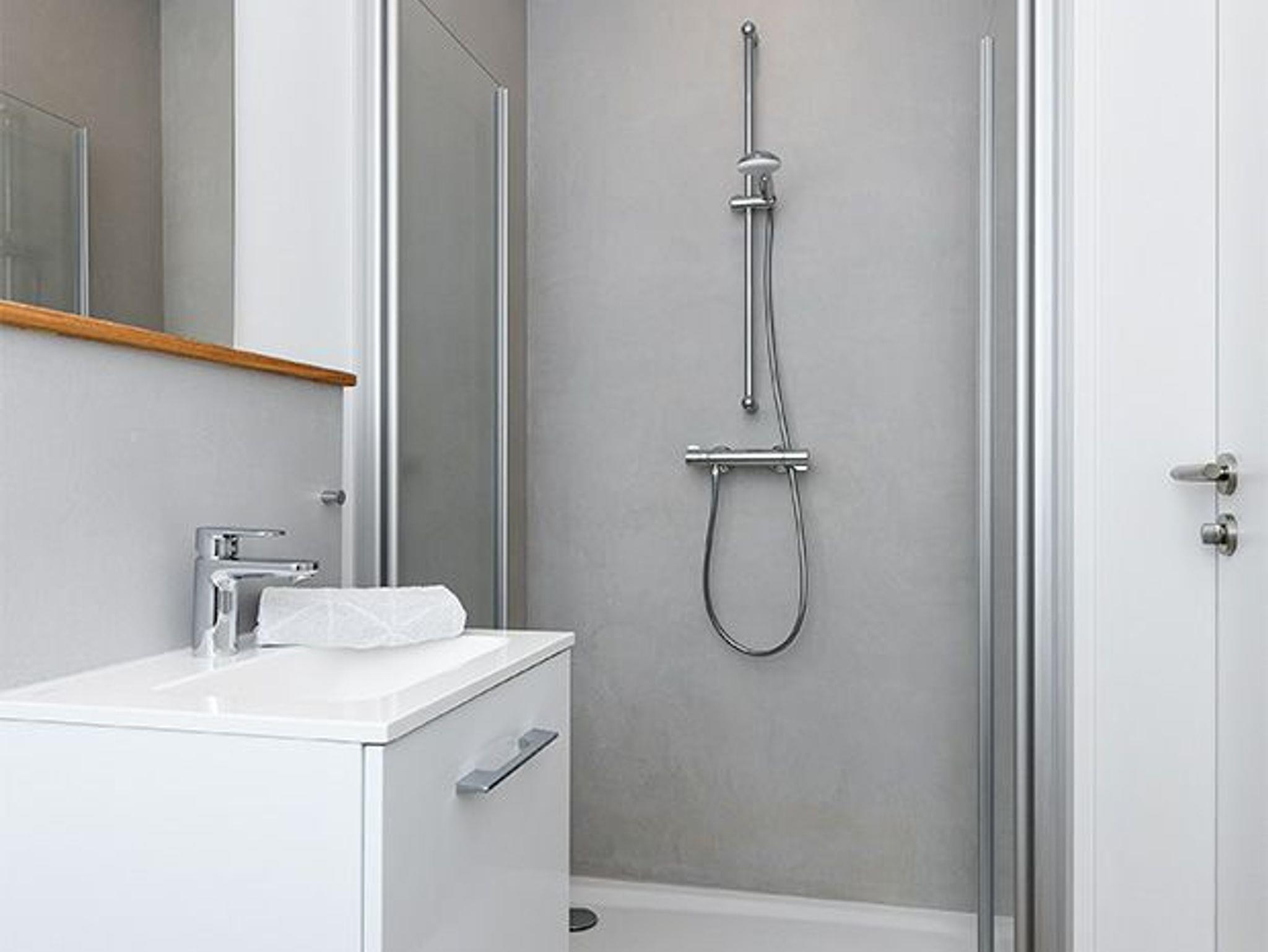zweites Badezimmer mit Dusche, Waschtisch und WC