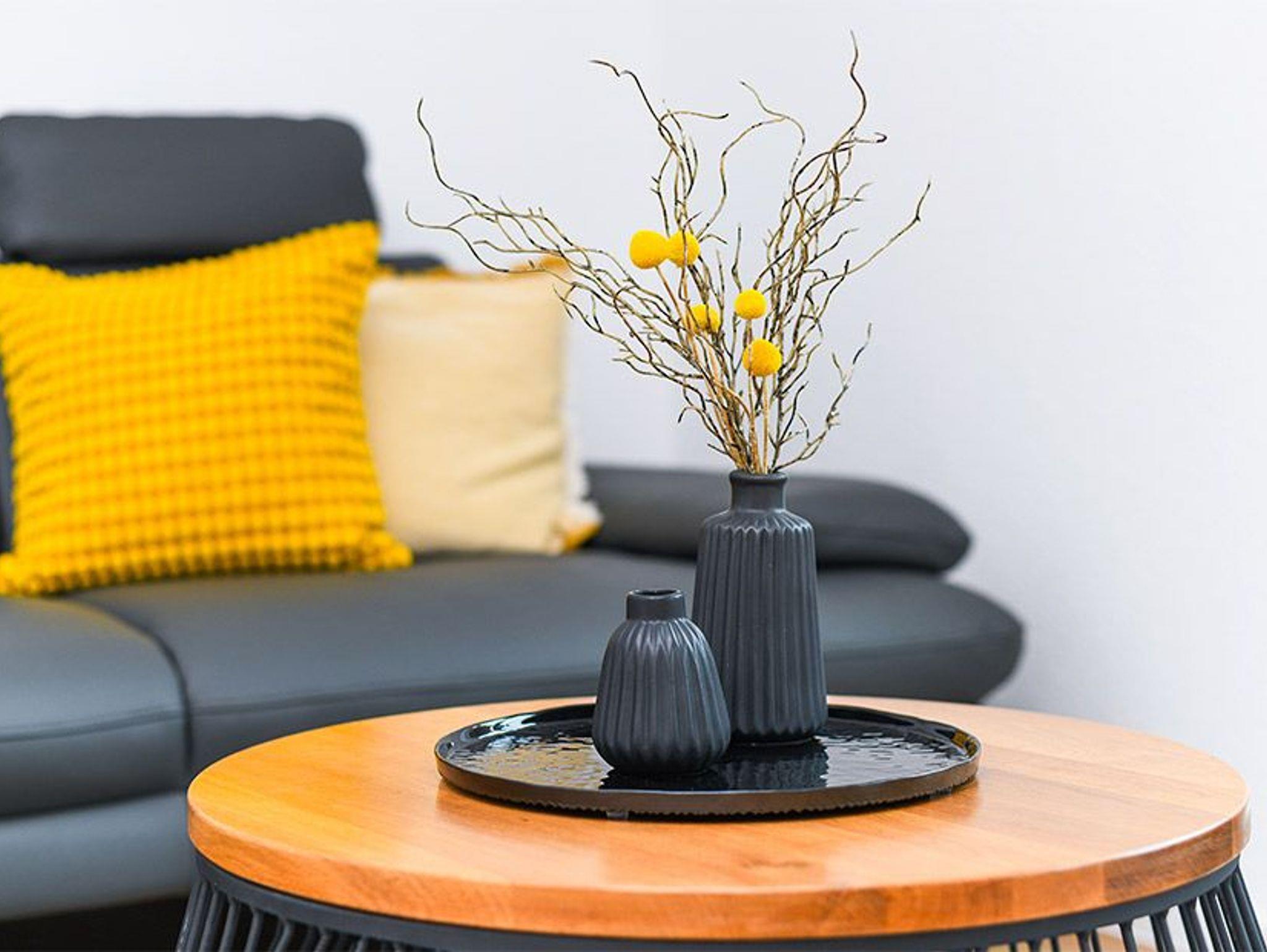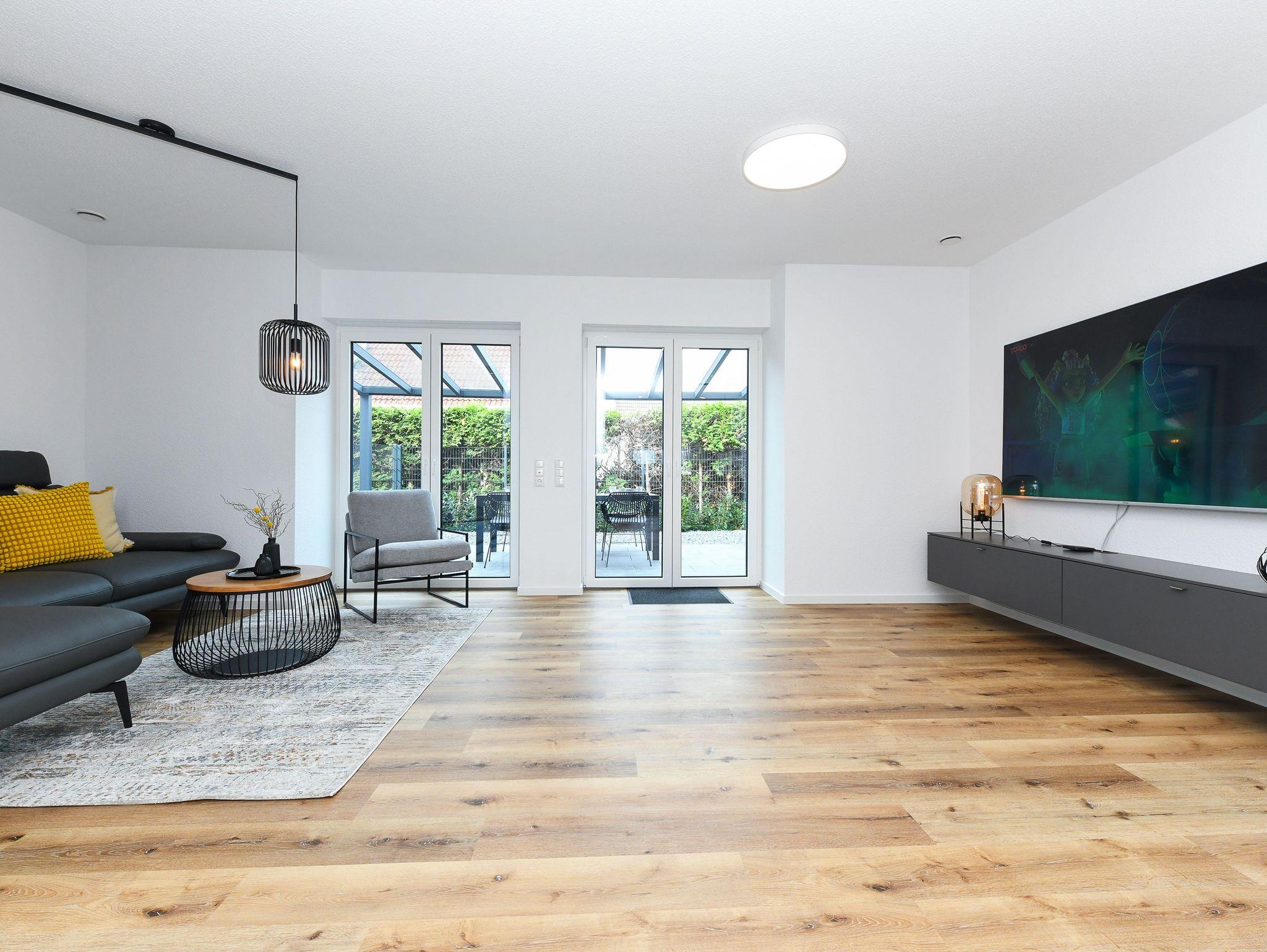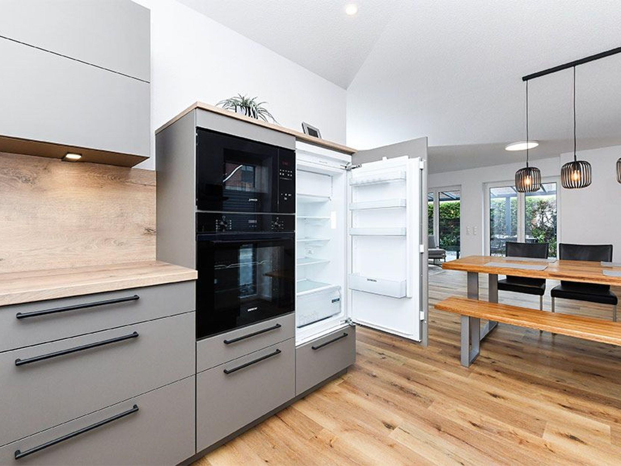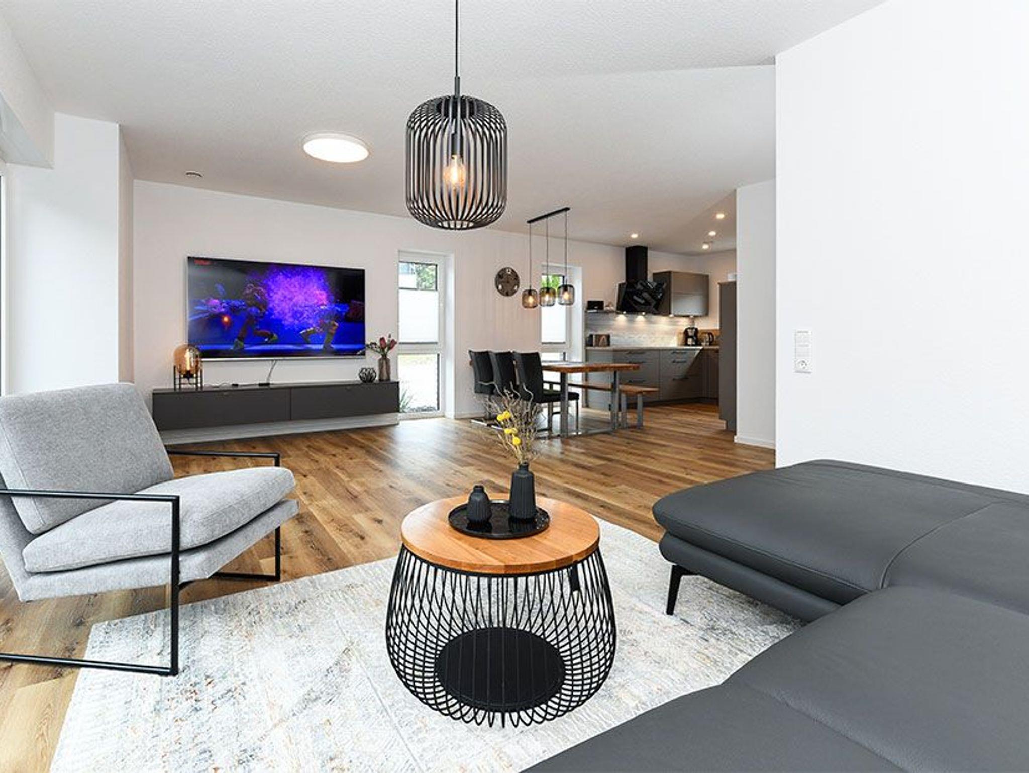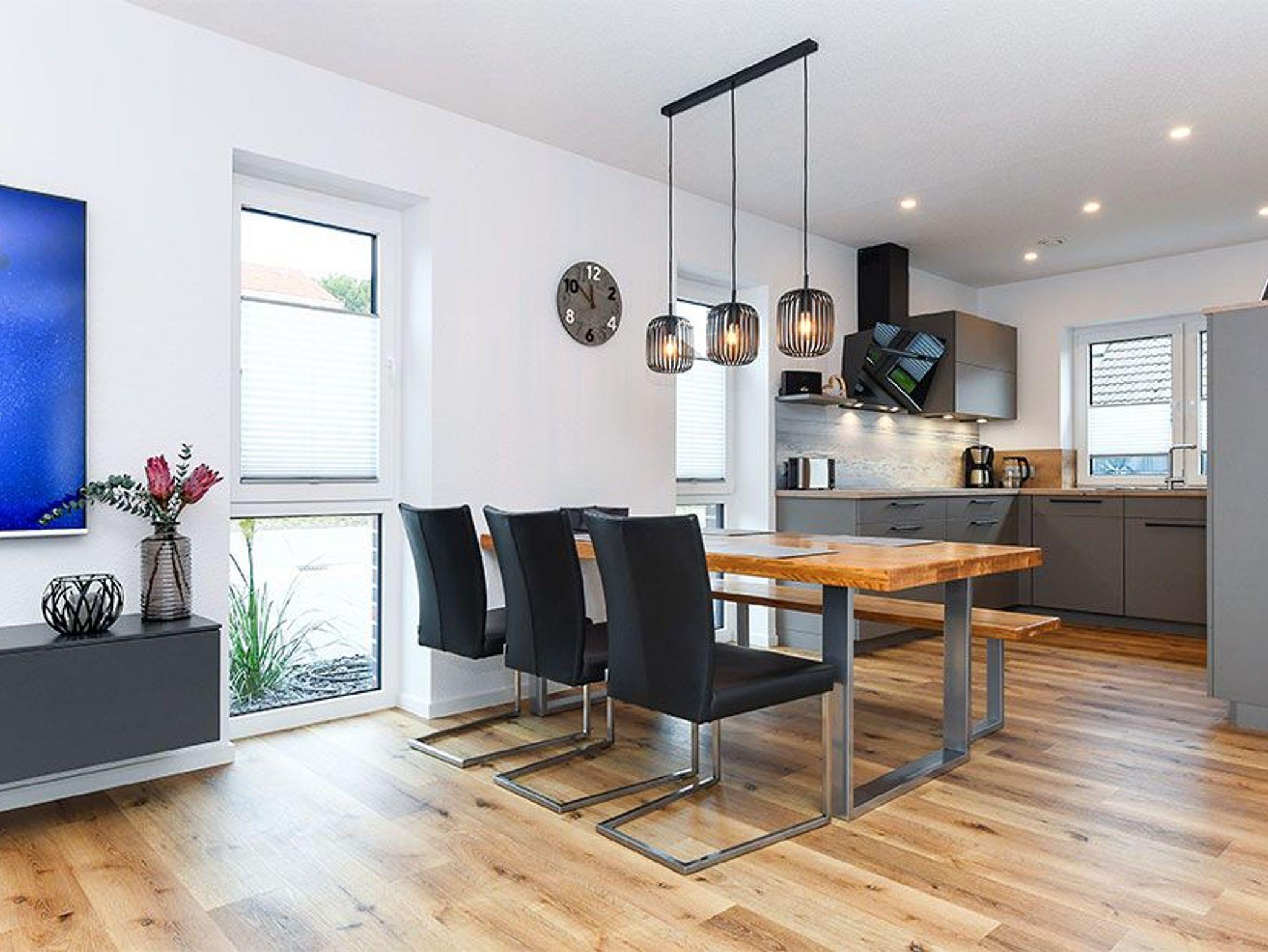 Wohnraum mit separatem Küchenteil bei offener Raumgestaltung