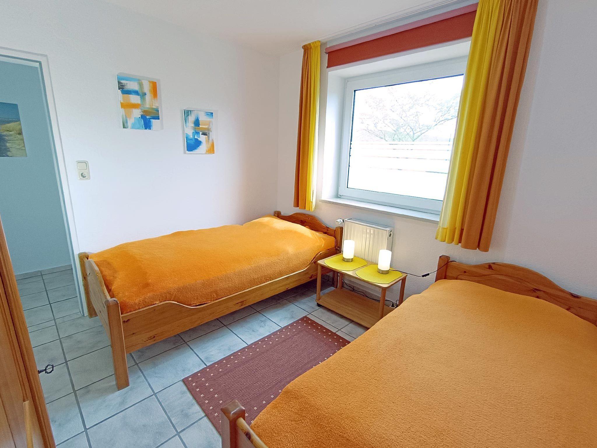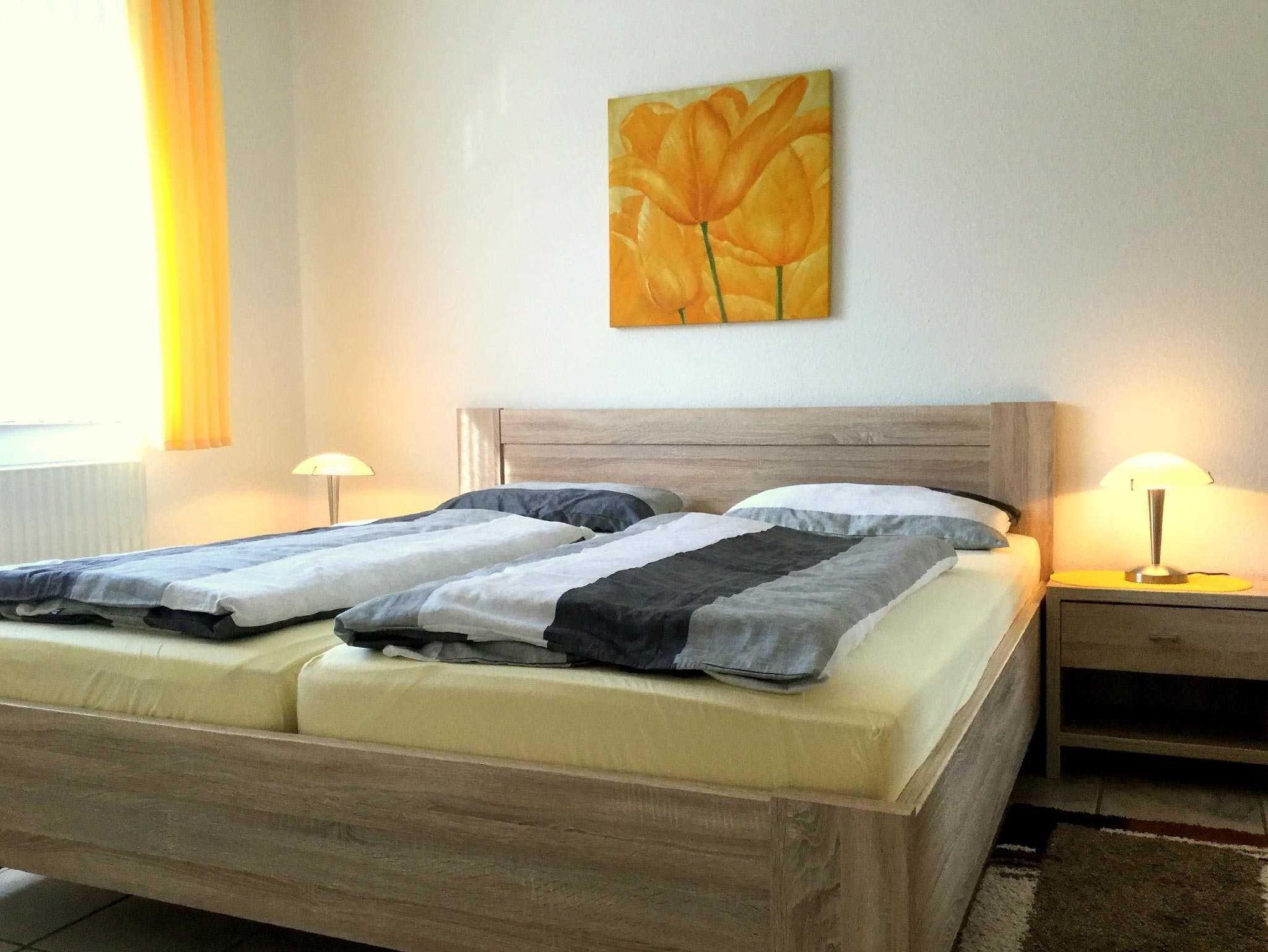 Komfortable und geschmackvoll eingerichtete Parterrewohnung von ca. 68qm Größe mit Südterrasse. Bis 4 Personen buchbar. Die Wohnung ist folgendermaßen ausgestattet: Wohnzimmer mit Polstergarnitur, Essecke, Sat-HDTV, DVD, Internetradio, kostenloses WLAN. Elternschlafzimmer mit Doppelbett, Kinderzimmer mit 2 Einzelbetten, separate Küche, Bad mit Dusche/WC, Gäste-WC, Flur. Parkplatz. Diese Wohnung ist allergikergeeignet. Nichtraucher! Fliegengitter in den Wohn- und Schlafräumen, sowie Küche und Bad. Bettwäsche und Handtücher-Erstausstattung inklusive.