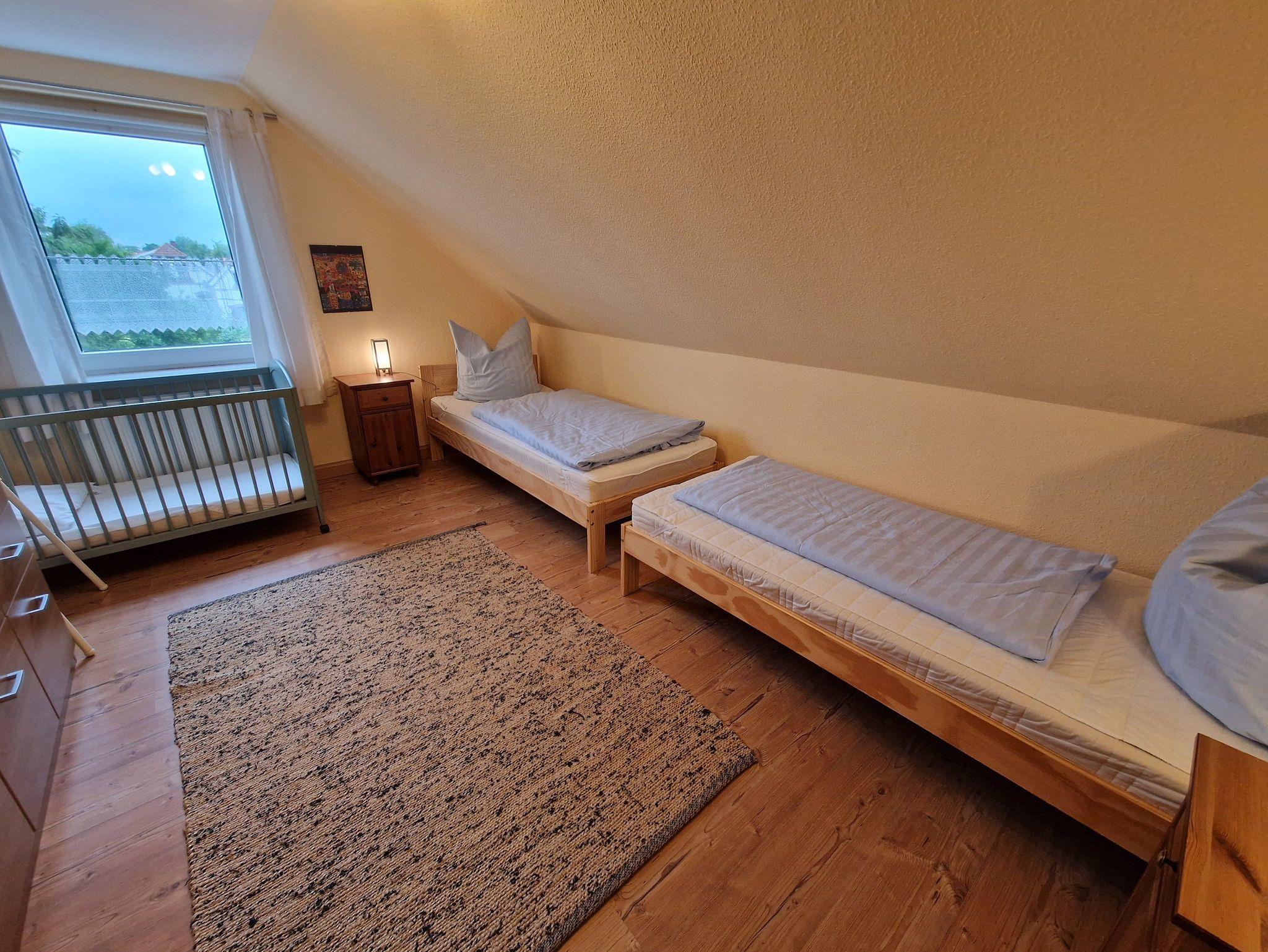 Die geschmackvoll eingerichtete Ferienwohnung befindet sich in der 2. Etage und bietet Ihnen alles, was Sie für einen entspannten Aufenthalt benötigen. Neben einer komfortablen Raumaufteilung verfügt die Wohnung über eine vollausgestattete Küche sowie einen Balkon. Dieser befindet sich in Südausrichtung lädt bei schönem Wetter zum Frühstück und zur Erholung ein. Des weiteren stehen Ihnen ein Schlafzimmer mit einem Doppelbett, ein Schlafzimmer mit 2 Einzelbetten sowie Badezimmer mit Dusche und eine Gäste-WC zur Verfügung. WLAN stehet Ihnen ebenfalls zur Verfügung.