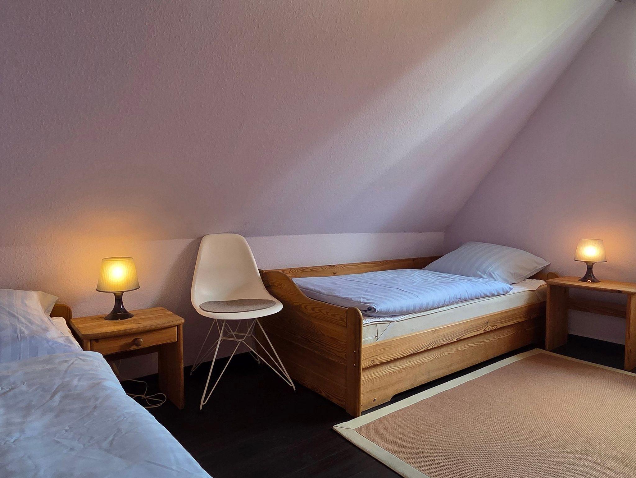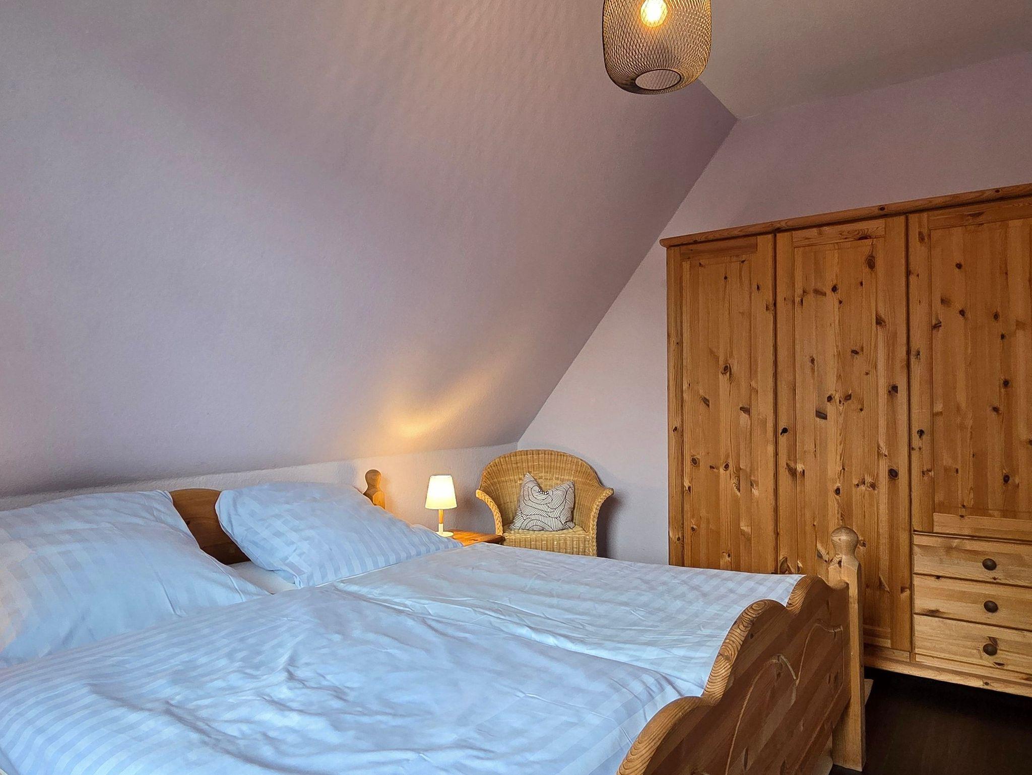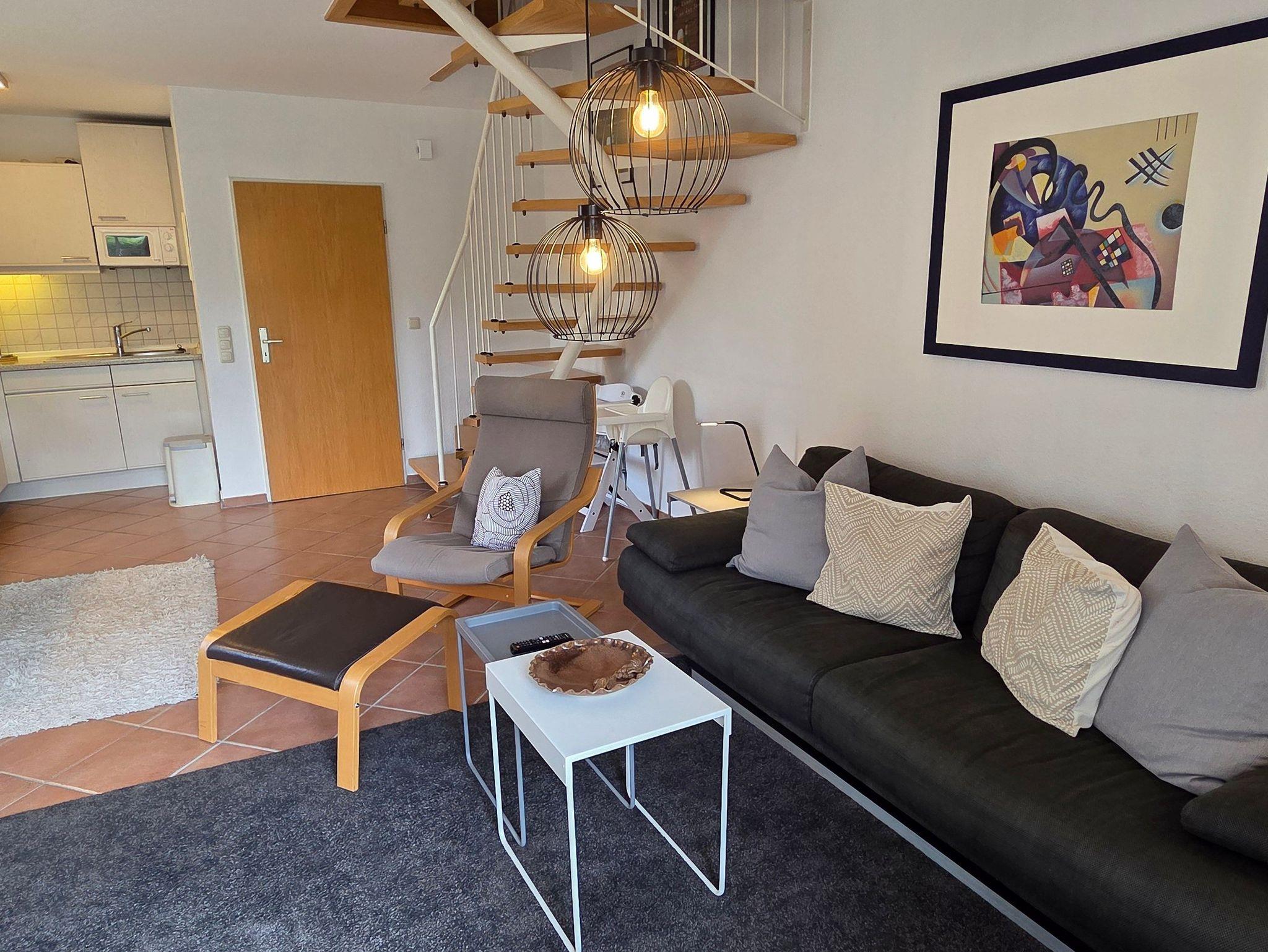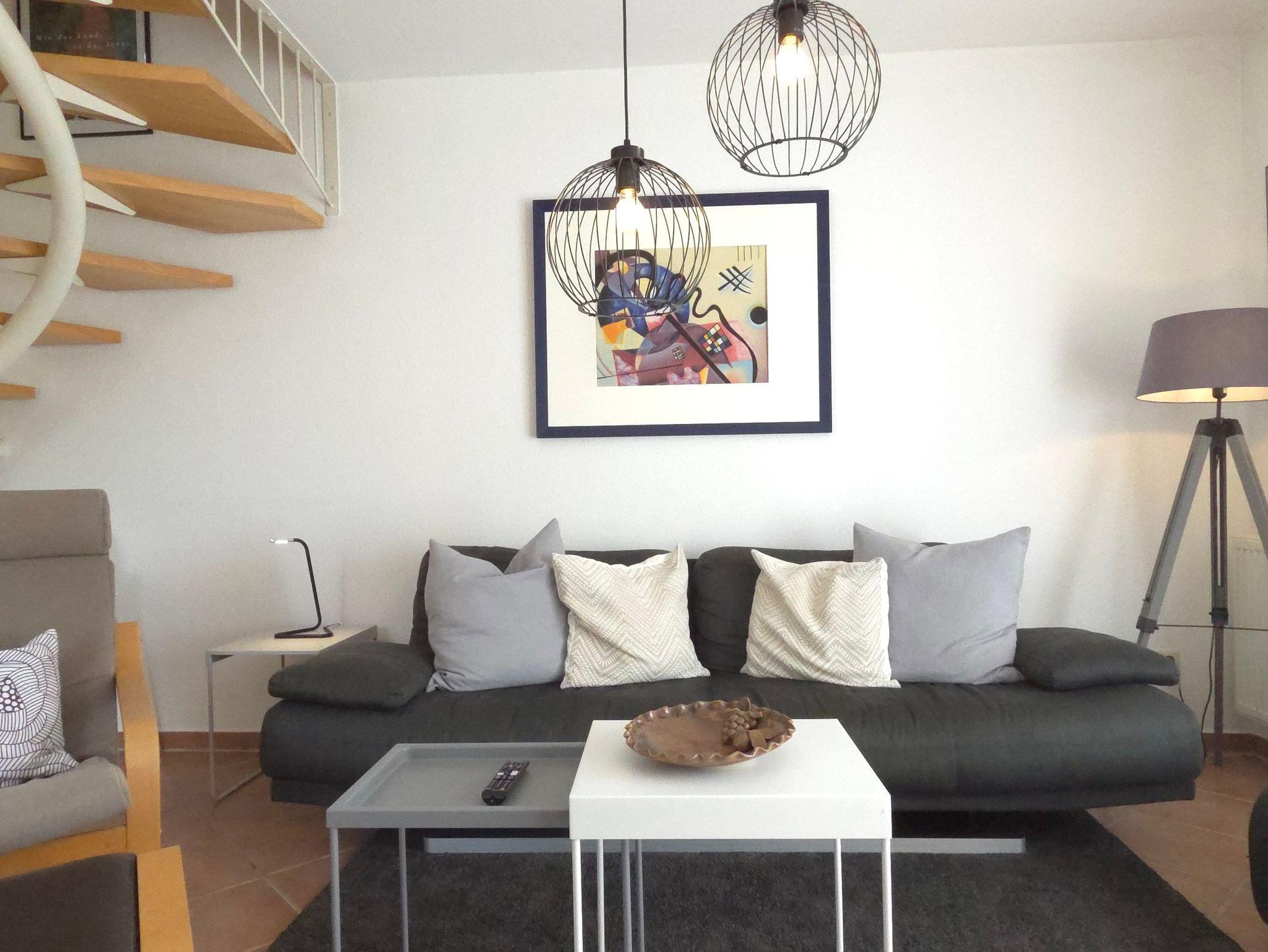 Das Reihenendhaus bietet auf ca. 70m² ausreichend Platz für 4 Personen und ein Baby/Kleinkind. Im Erdgeschoss befindet sich ein großzügiger und lichtdurchfluteter Wohn- und Essbereich mit einer offenen Küche, sowie ein Gäste-WC. Vom Wohnraum aus führt eine offene Treppe ins Obergeschoss, hier stehen ein Schlafzimmer mit einem Doppelbett, ein Schlafzimmer mit zwei Einzelbetten und ein Duschbad mit WC zur Verfügung. In allen Räumen sind Fliesen bzw. Laminat verlegt. WLAN steht Ihnen kostenlos zur Verfügung.