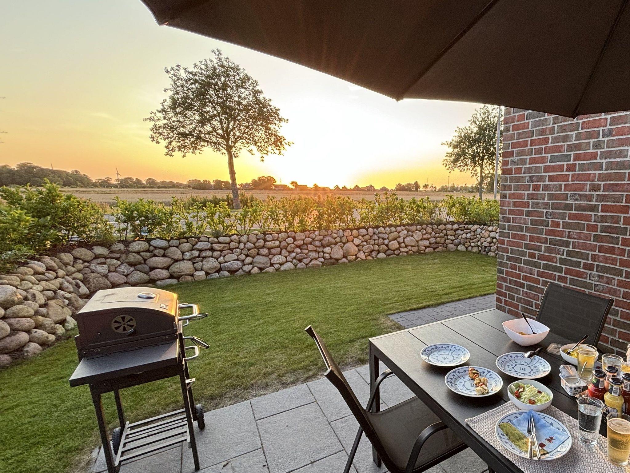 Das Ferienhaus ist modern-gemütlich, hell und freundlich gestaltet und eingerichtet sowie äußerst hochwertig mit viel Liebe zum Detail ausgestattet. Es verfügt zum Beispiel über eine Terrasse mit Strandkorb, über eine ausgestattete moderne Küche mit Geschirrspülmaschine und Mikrowelle, und es stehen Waschmaschine und Wäschetrockner zum Benutzen bereit.