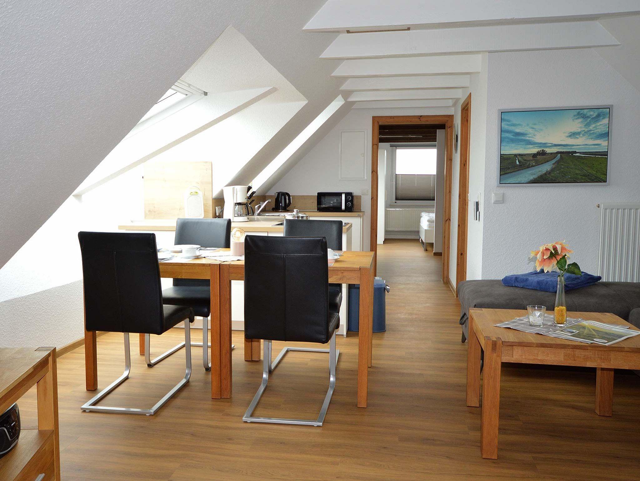 Die helle und moderne eingerichtete Ferienwohnung für 5 Personen im Dachgeschoss.