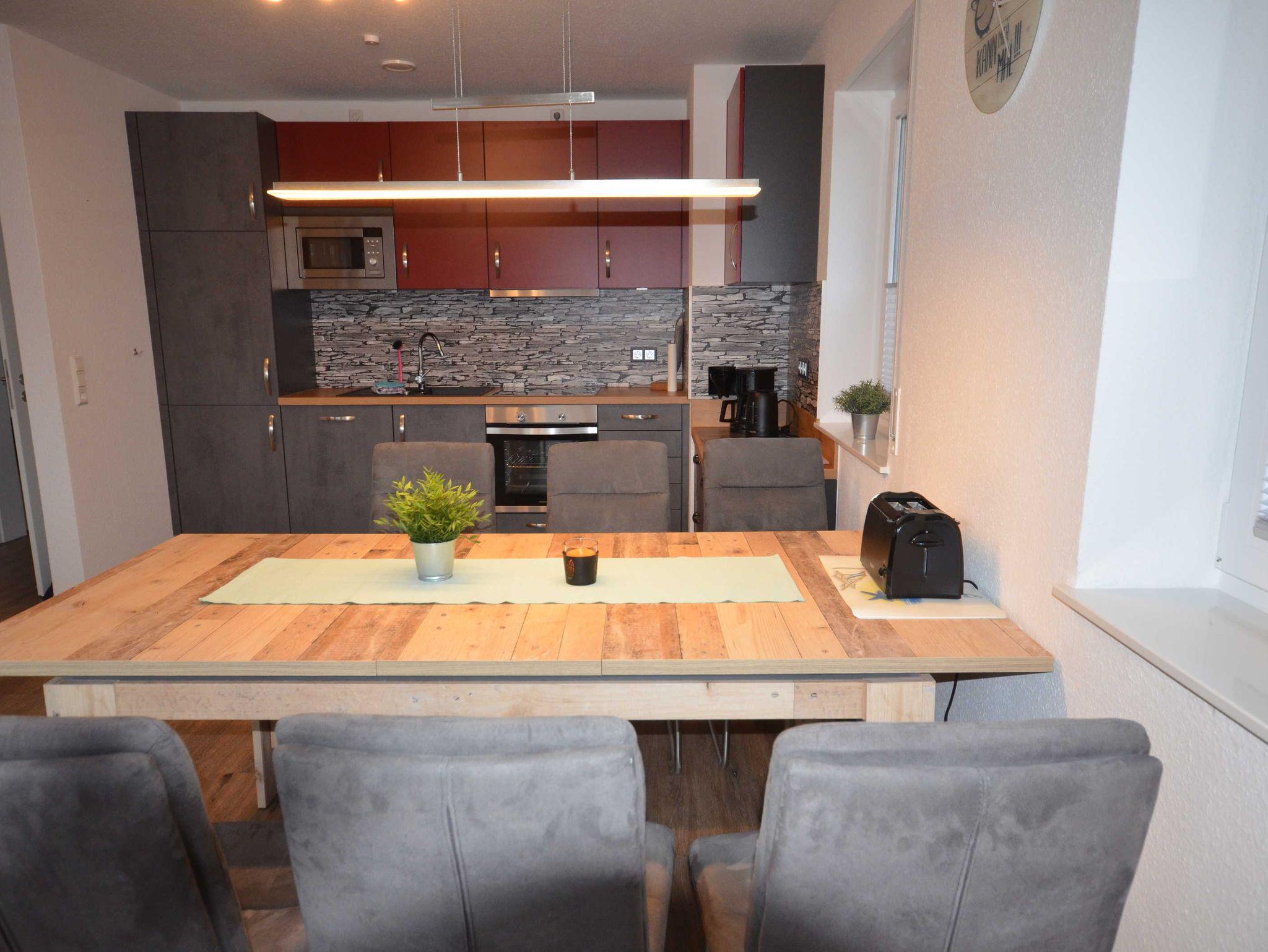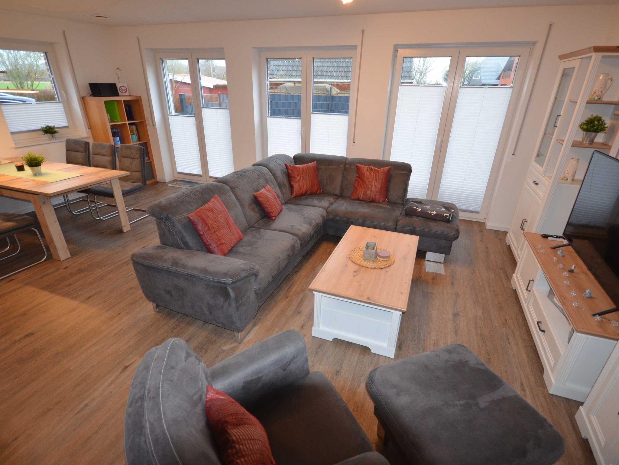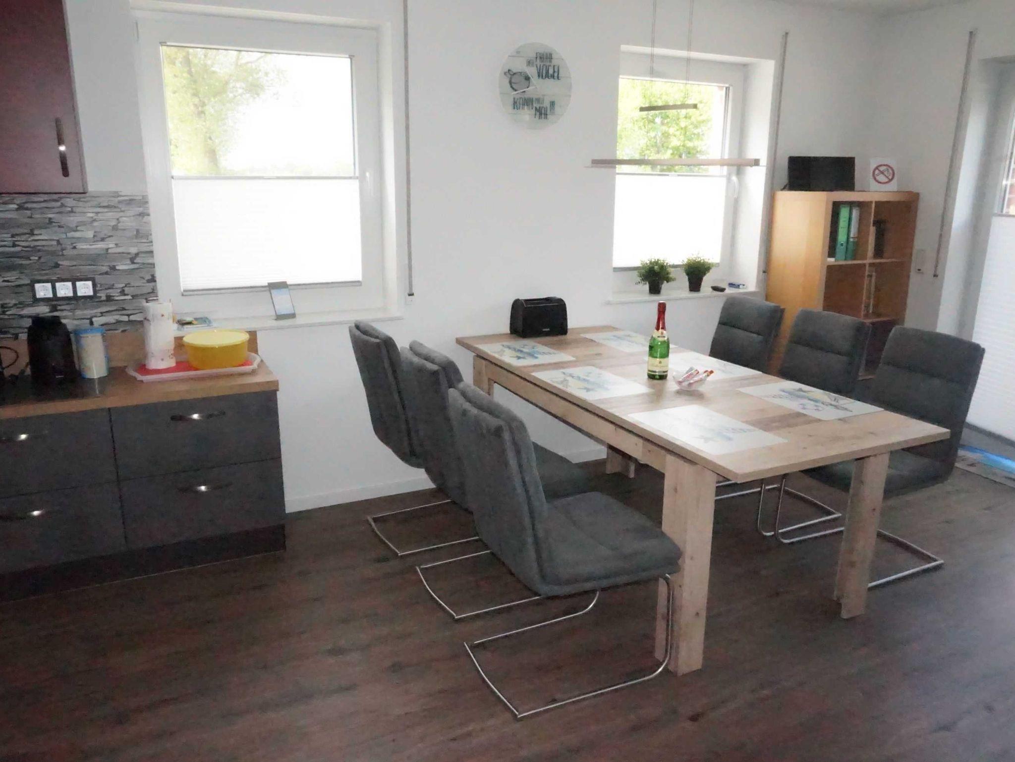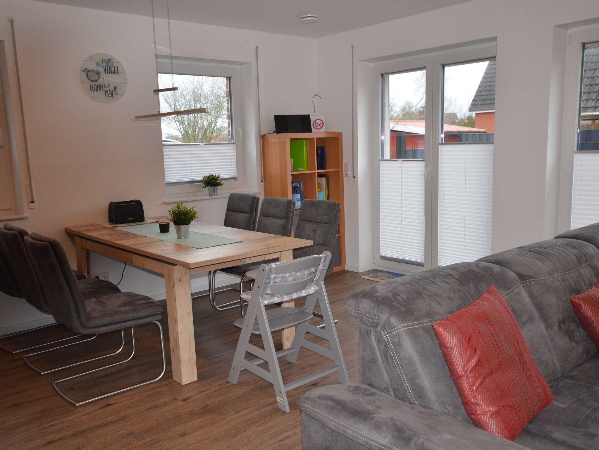 Das Ferienhaus ist für bis zu 6 Personen und zwei Kleinkinder eingerichtet. Neben dem Haus befinden sich zwei PKW-Stellplätze und hinter dem Haus ist ein abschließbarer Fahrradschuppen mit 6 Steckdosen zum Aufladen von E-Bikes.