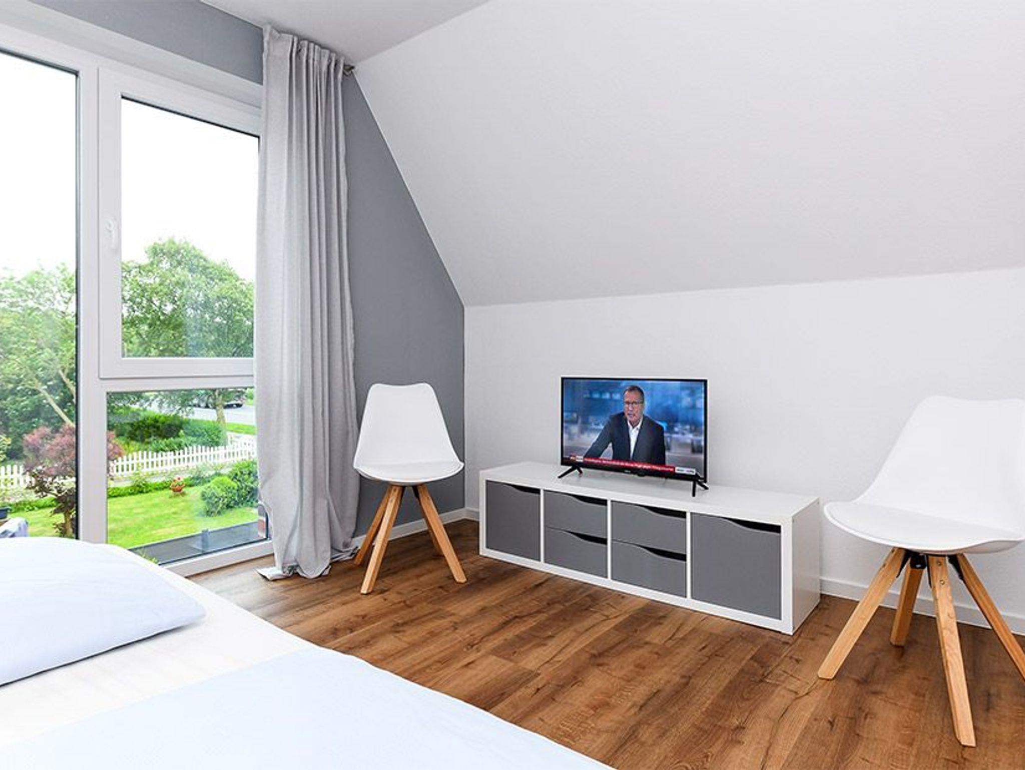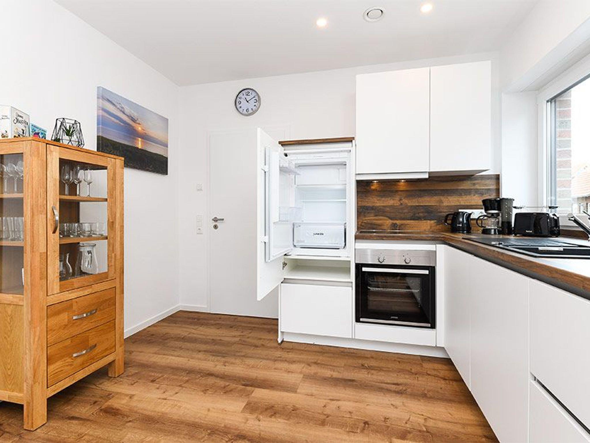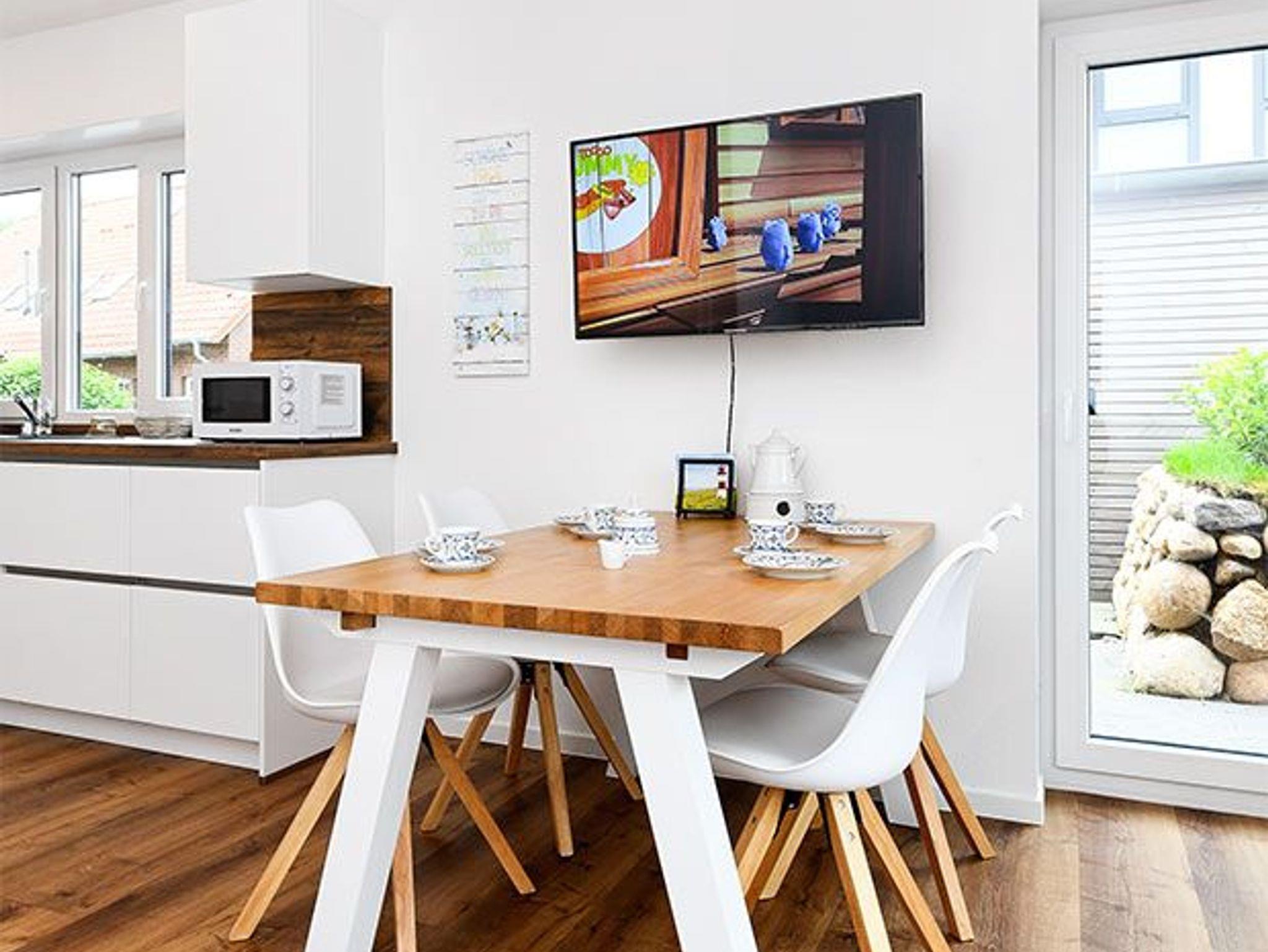 Das Ferienhaus ist modern-gemütlich, hell und freundlich gestaltet und eingerichtet sowie äußerst hochwertig mit viel Liebe zum Detail ausgestattet. Es verfügt zum Beispiel über eine Terrasse mit Strandkorb, über eine ausgestattete moderne Küche mit Geschirrspülmaschine und Mikrowelle, und es stehen Waschmaschine und Wäschetrockner zum Benutzen bereit.