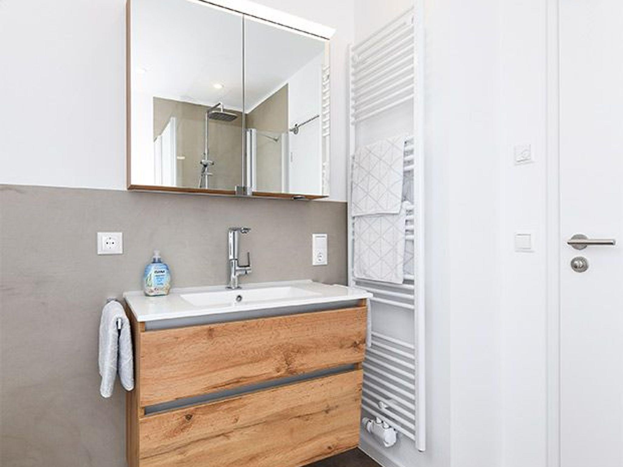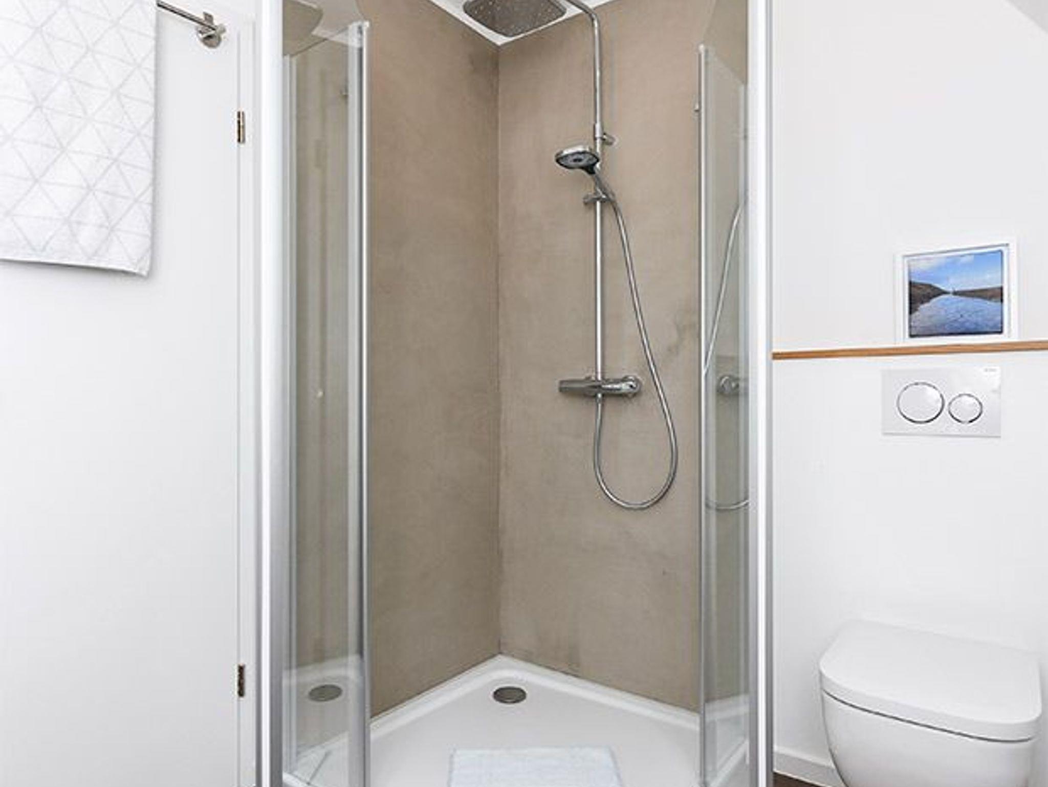 zweites Badezimmer mit Dusche, Waschtisch und WC