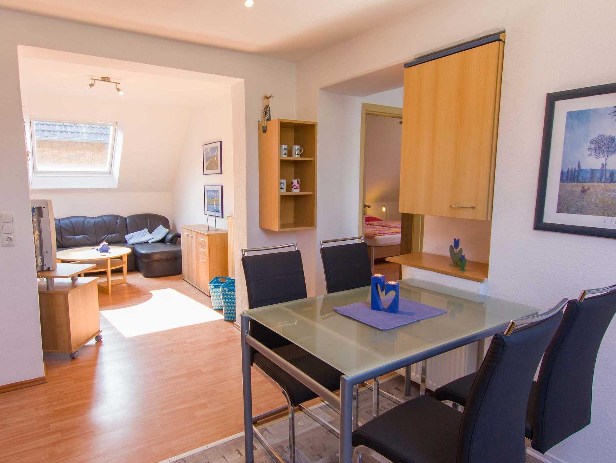 In zentraler, unmittelbarer Nähe zum Museumshafen von Carolinensiel vermieten wir eine modern ausgestattete Ferienwohnung für 4 Personen und 1 Kleinkind. Die großzügige Ferienwohnung für Nichtraucher bietet viel Platz und ein angenehmes warmes Ambiente. Die Wohnung liegt im ersten Obergeschoss und verfügt über eine eigene große Dachterrasse (16qm) sowie einen PKW-Stellplatz hinter dem Haus. WLan kostenlos!