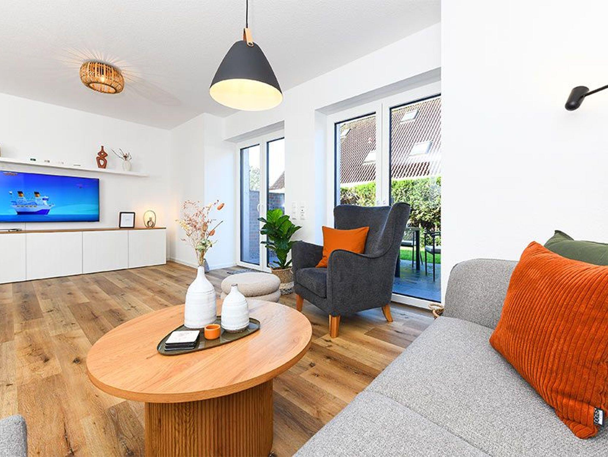 Es handelt sich bei diesem Ferienhaus um ein geräumiges ungefähr 100 Quadratmeter großes Reihenhaus, dass für einen schönen Nordseeurlaub für bis zu 6 Personen bestens vorbereitet ist. Das Ferienhaus ist modern-gemütlich, hell und freundlich gestaltet und eingerichtet sowie äußerst hochwertig mit viel Liebe zum Detail ausgestattet. Es gibt zum Beispiel eine Terrasse und eine top ausgestattete moderne Küche mit Geschirrspülmaschine.
