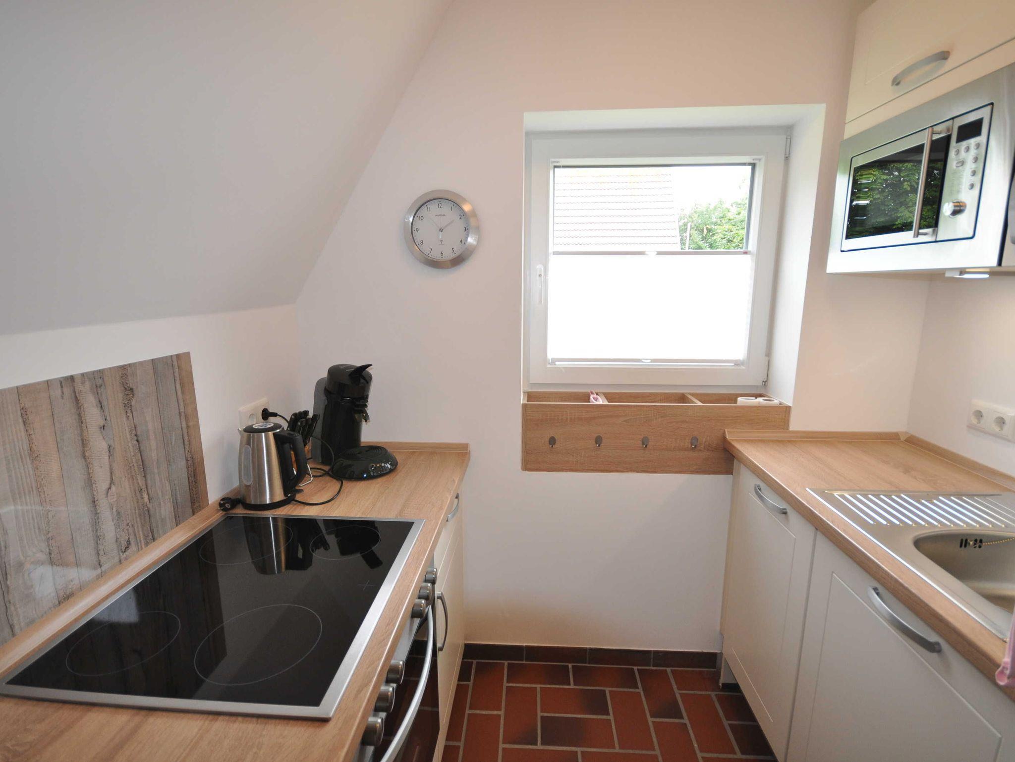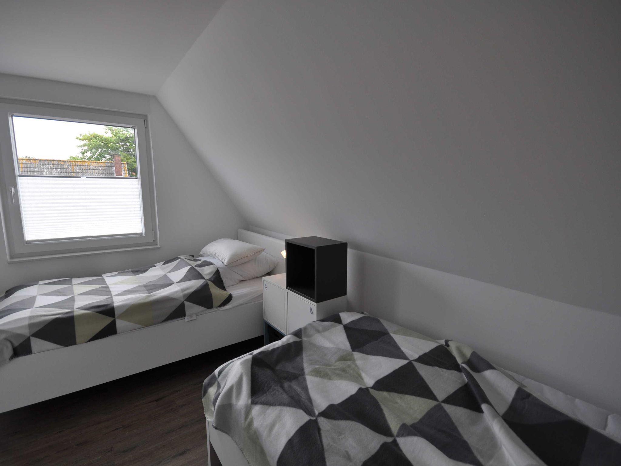 Das Fereinhaus verfügt im Erdgeschoss über einen großzügigen Wohn- und Essbereich, einer separaten Küche sowie über ein Schlafzimmer mit einem Doppelbett. Ebenso befindet sich hier ein geräumiges, behindertenfreundliches Badezimmer mit begehbarer Dusche und WC. Eine offene Holztreppe führt zum Obergeschoss. Hier befinden sich zwei Schlafzimmer (je ein Schlafzimmer mit zwei Einzelbetten, ein Schlafzimmer davon zusätzlich mit Wickelkommode) sowie ein WC. Ein Großteil der Fenster sind mit Rollläden ausgestattet. Auf den Böden sind Fliessen bzw. Vinyl verlegt. WLAN steht Ihnen kostenfrei zur Verfügung. Eine attraktive Ausstrahlung sorgt für entsprechende Wohnqualität. Gerne können Sie auch Ihren Vierbeiner mitbringen.