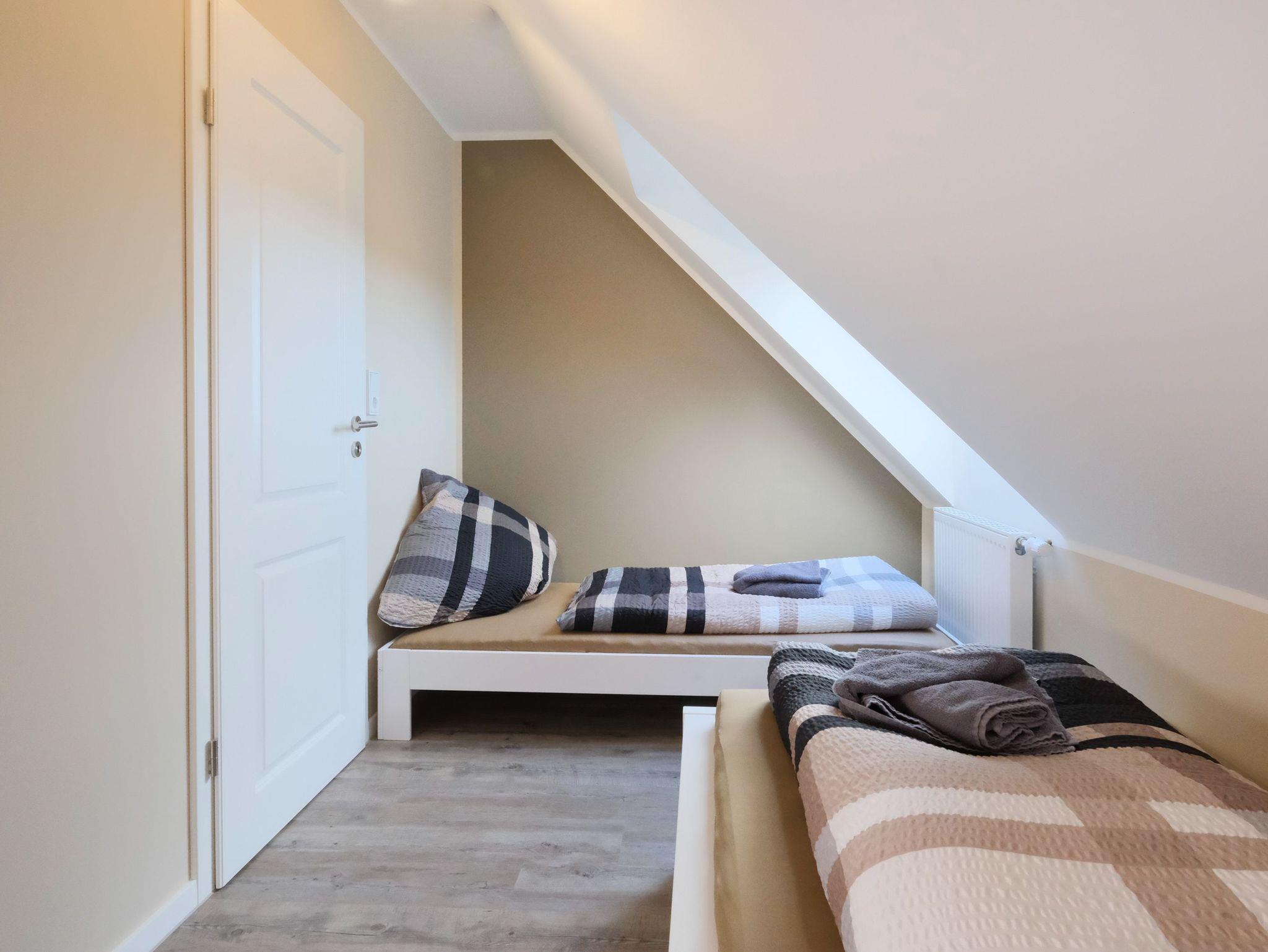 Die stilvoll eingerichtete Ferienwohnung bietet ausreichend Platz für insgesamt 4 Personen. Durch die beiden Schlafzimmer mit Doppelbett (180x200) und zwei Einzelbetten ist die Ferienwohnung ideal für Familien mit zwei Kinder oder Paare geeignet. Beide Schlafzimmer verfügen über praktische Wandschränke und Verdunkelungsmöglichkeiten. ist durch die beiden Schlafzimmer ideal für 4 Personen geeignet.