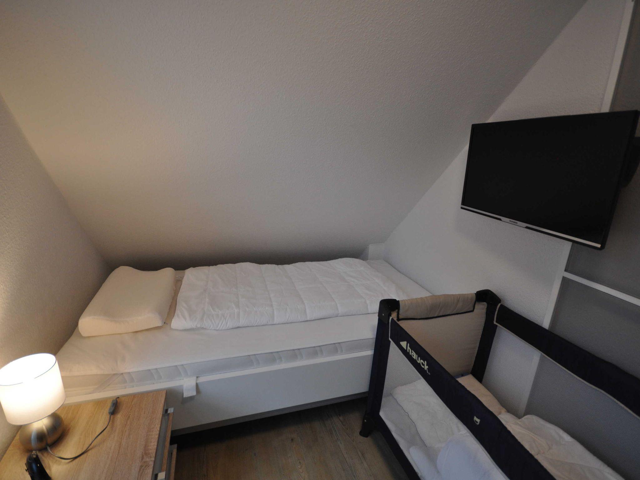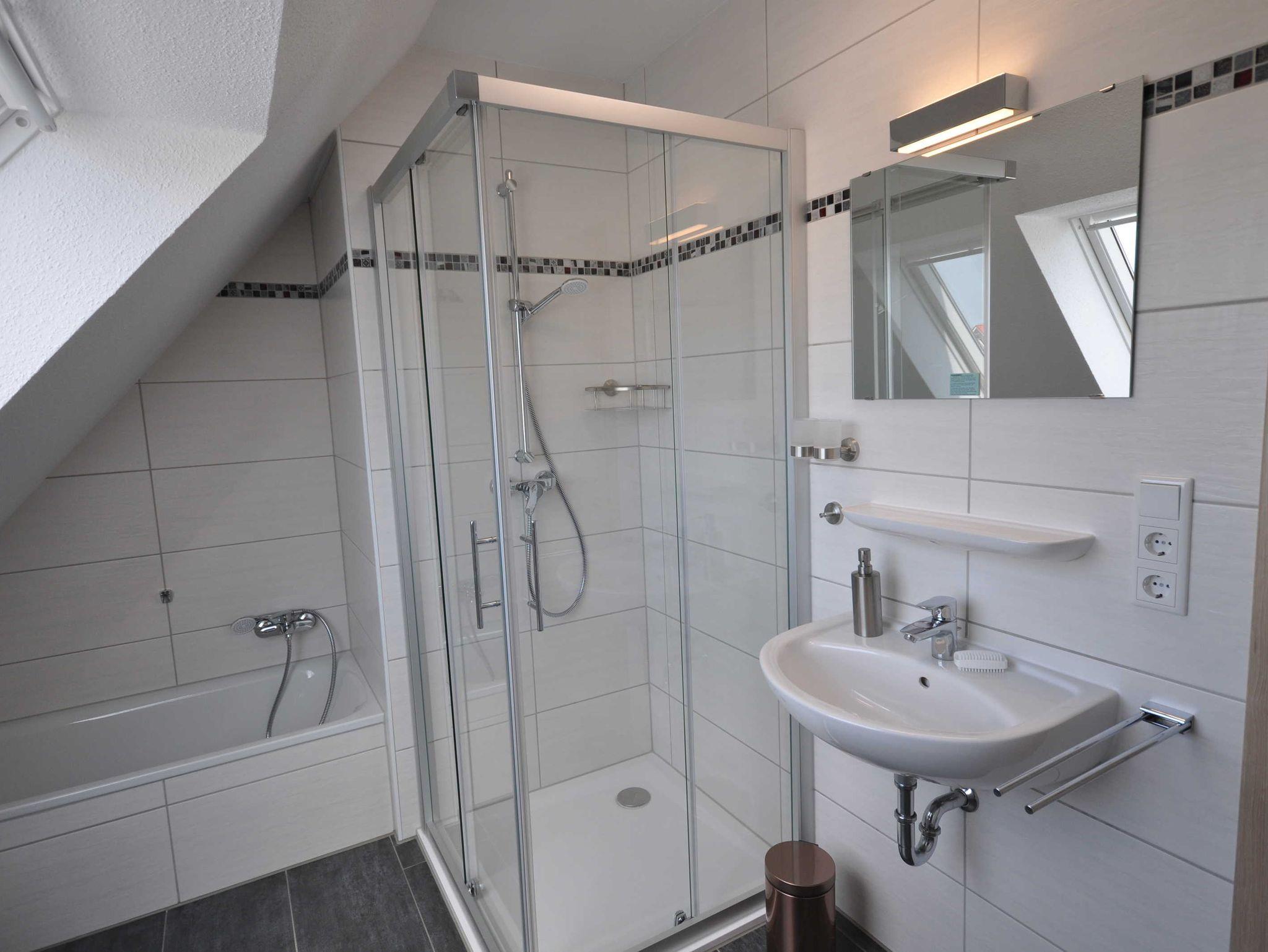 Im Erdgeschoss der 80m² großen Doppelhaushälfte befindet sich ein großzügiger und freundlicher Bereich für Kochen, Essen und Wohnen, ein Kaminofen sorgt für Wohlfühlatmosphäre. Zudem ist ein zusätzliches Bad mit Dusche vorhanden. Das Obergeschoss verfügt über drei mit TV ausgestatteten Schlafzimmern (2x je ein Doppelbett, 1x Einzelbett) sowie über ein großzügiges Duschbad inkl. Badewanne und bietet somit ausreichend Platz für die ganze Familie. WLAN steht Ihnen kostenfrei zur Verfügung. Alle Fenster sind mit Rollläden ausgestattet und im gesamten Objekt sind Fliesen bzw. Laminat verlegt. Eine hochwertige Ausstattung sorgt für entsprechenden Wohnkomfort.