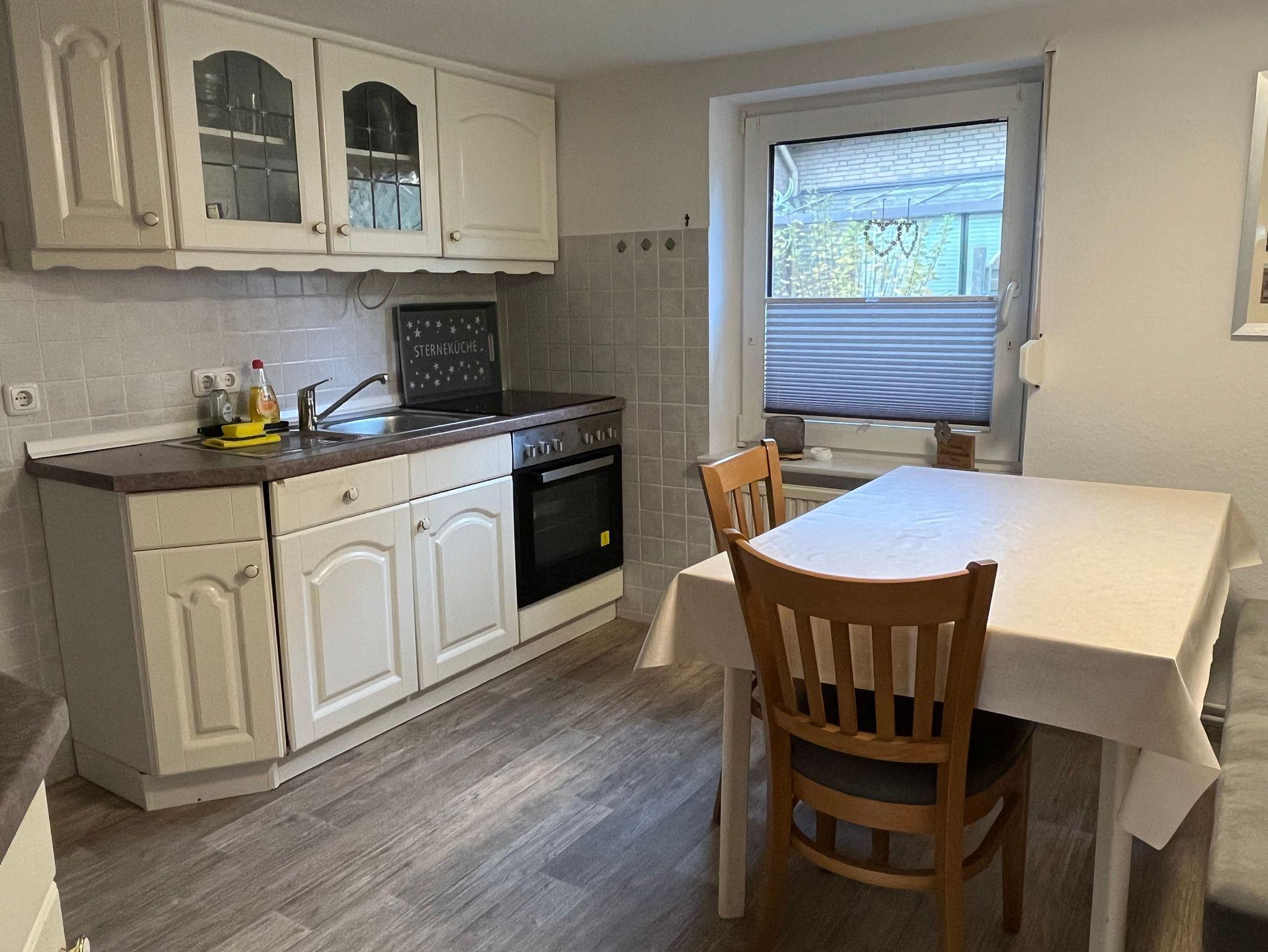 Familiär eingerichtete Wohnung ( ca. 65 qm ) mit 1 Eltern-Schlafzimmer mit Doppelbett im EG, 1 Doppelzimmer mit zwei Einzelbetten im DG, 1 Wohnzimmer, separater Küche, Badezimmer mit Duschbadewanne. Der Eingang ist separat. Terrasse mit Sitz- und Liegemöglichkeit. Gemeinschaftlicher Garten mit direktem Zugang zum Fluss Harle.