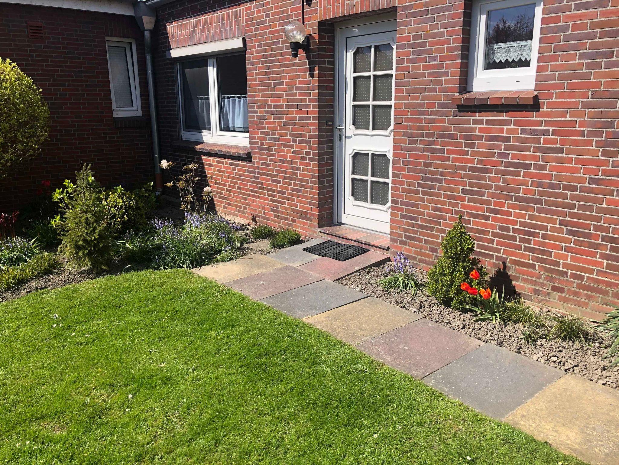 Die helle komfortable Ferienwohnung betreten Sie über einen separaten Eingang Richtung Harle.