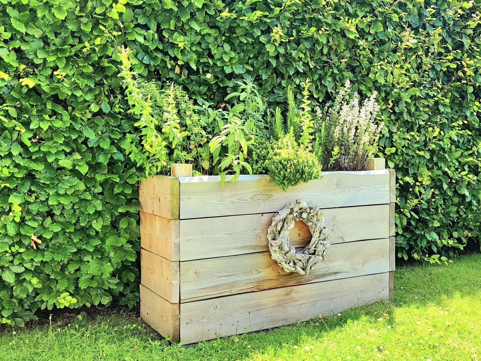 Seitlich am Haus befindet sich ein abschließbares Gartenhaus in dem Sie Fahrräder oder sonstiges abstellen können, sowie ein Kräuterhochbeet mit Pfefferminze, Zitronenmelisse, Salbei, Rosmarin und Thymian. Gerne können Sie sich zur Zubereitung von leckeren Speisen oder Getränken daran bedienen.
