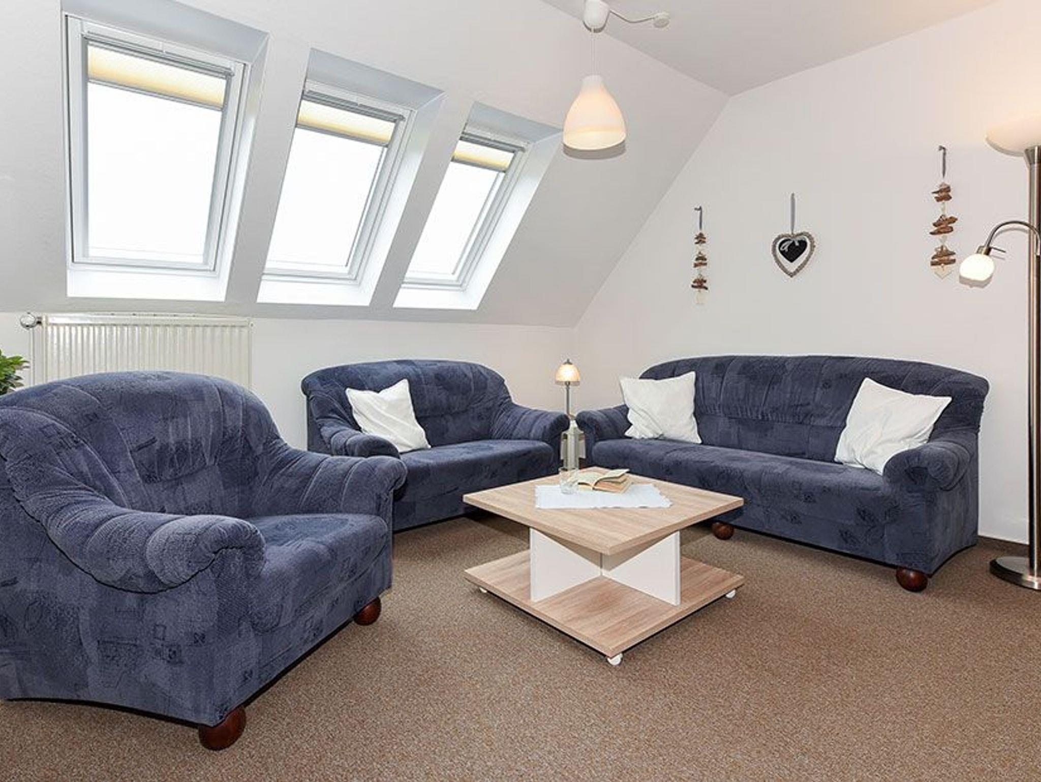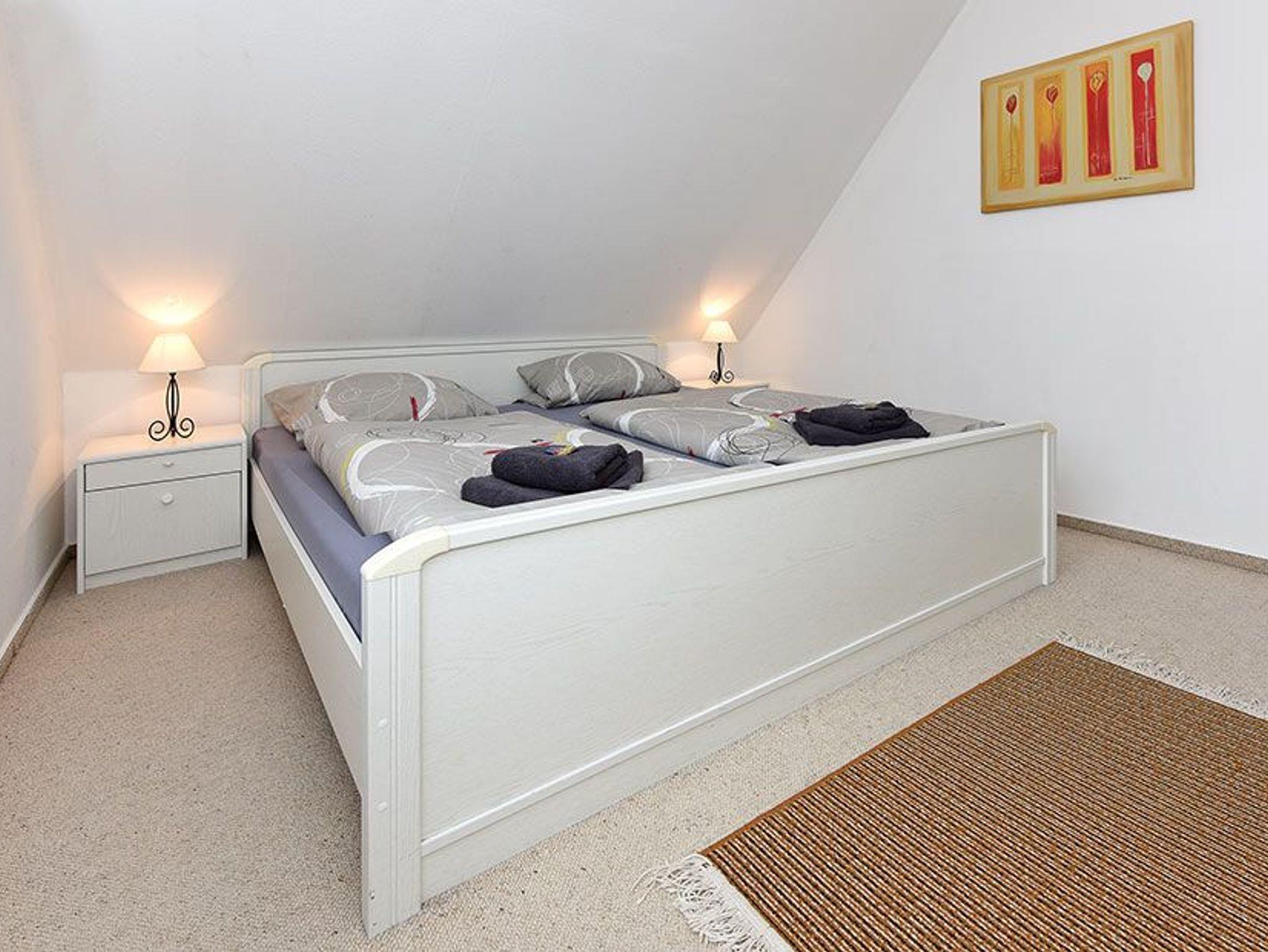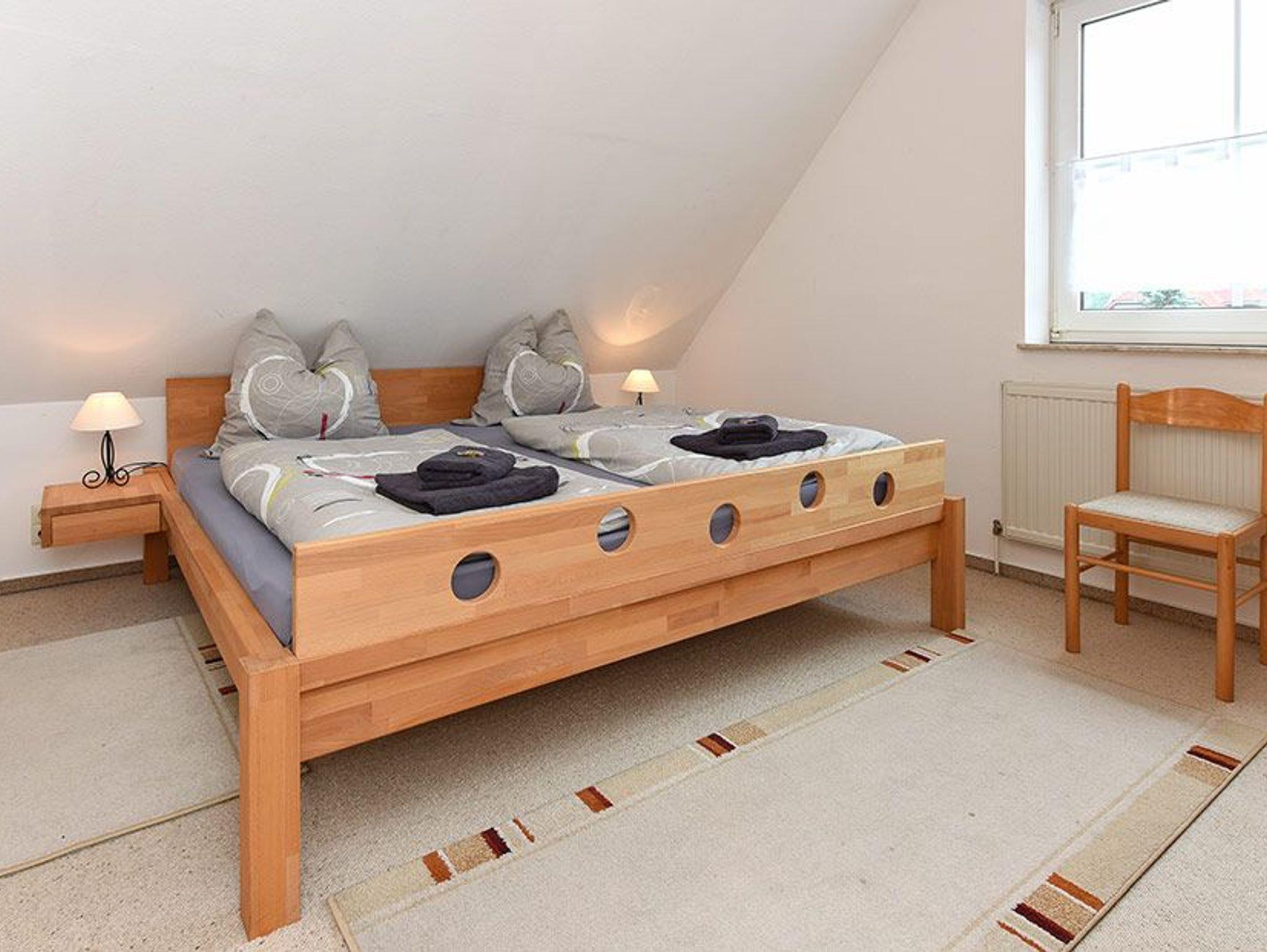 Größe ca. 64 Quadratmeter, Wohnzimmer, Küche, Schlafzimmer, zweites separates Schlafzimmer, Badezimmer mit Dusche, Waschtisch und WC, Obergeschoss, optimal für 2 bis 4 Personen und zusätzlich ein Kleinkind.