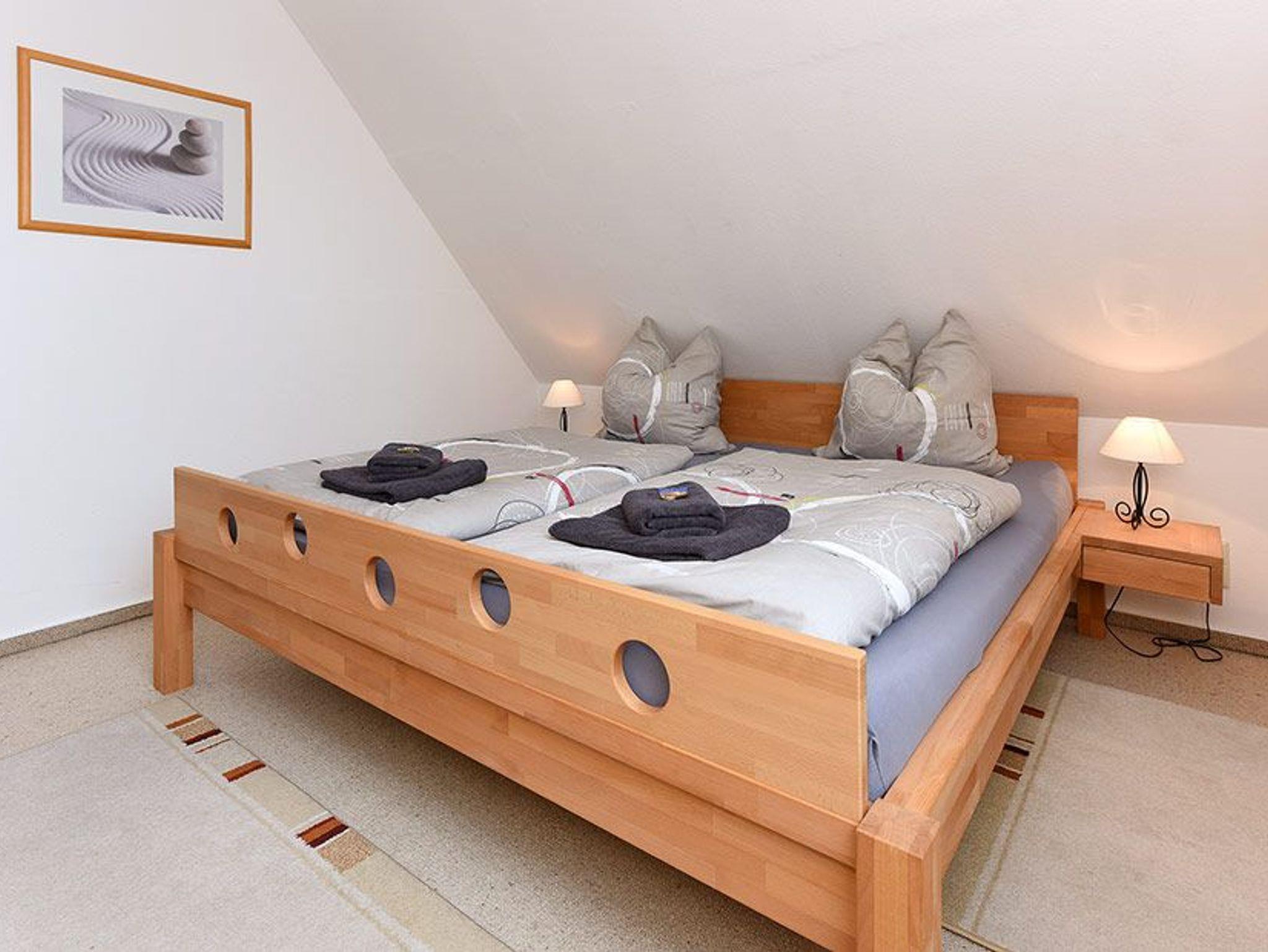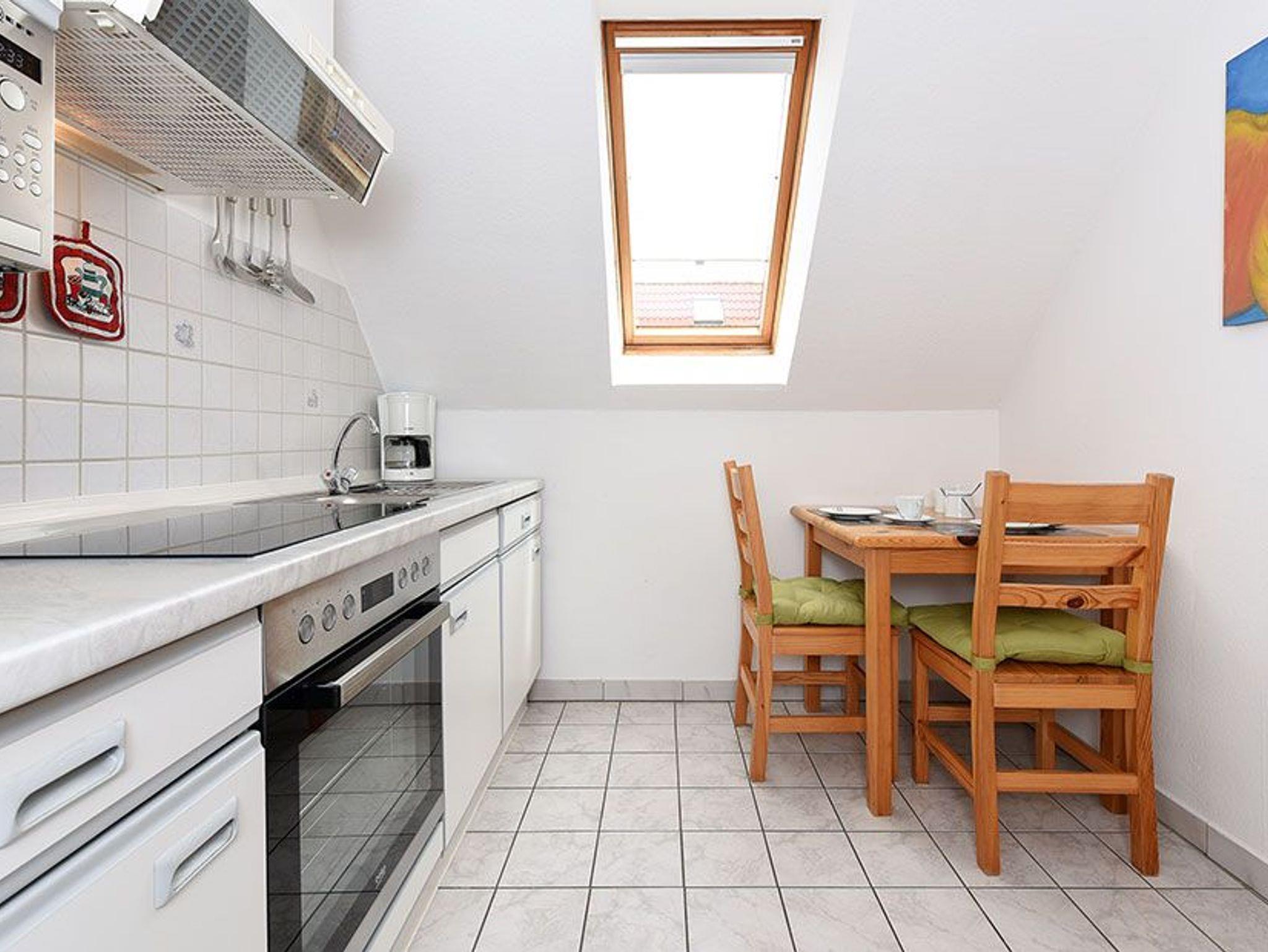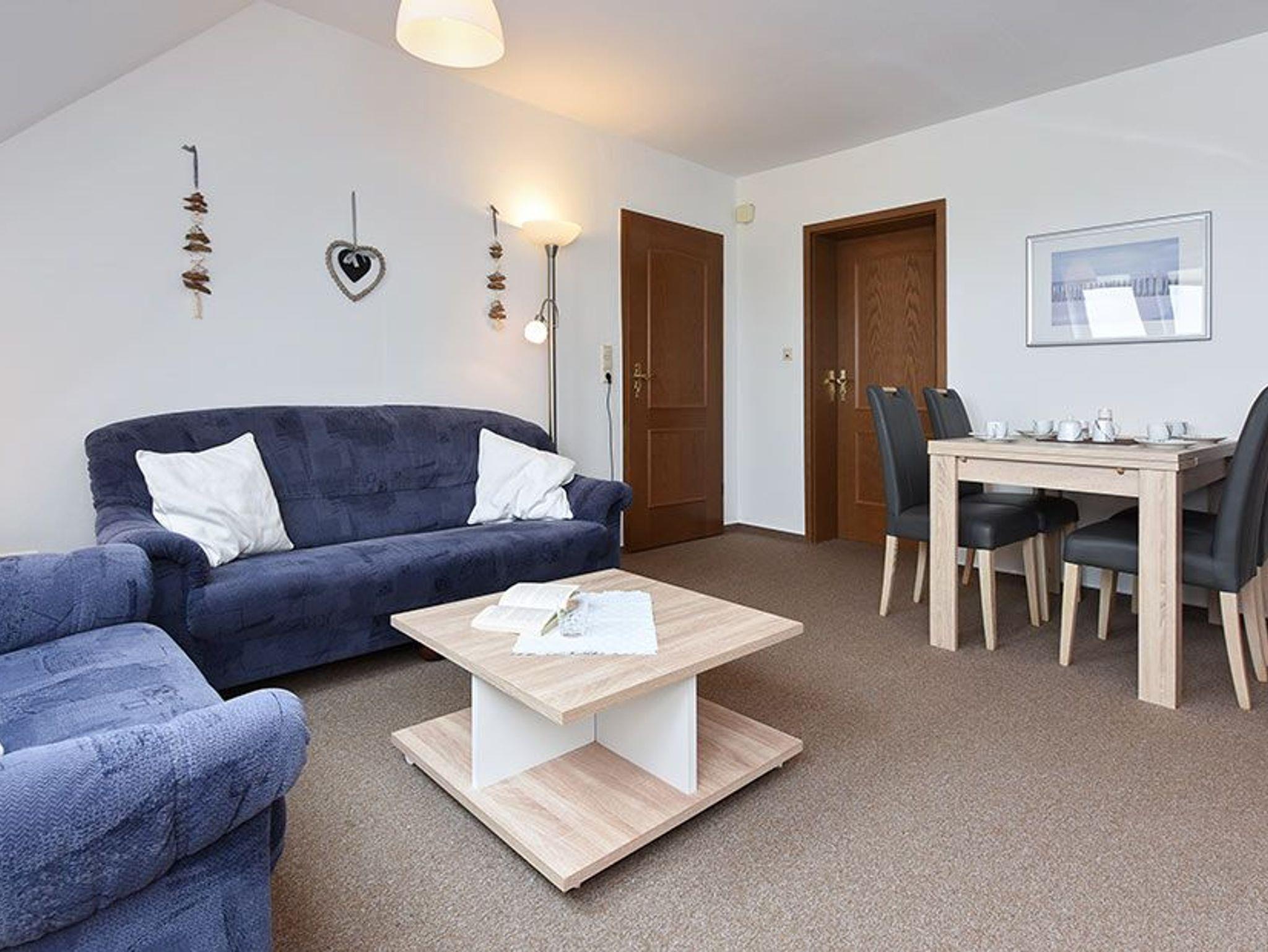 Größe ca. 64 Quadratmeter, Wohnzimmer, Küche, Schlafzimmer, zweites separates Schlafzimmer, Badezimmer mit Dusche, Waschtisch und WC, Obergeschoss, optimal für 2 bis 4 Personen und zusätzlich ein Kleinkind.