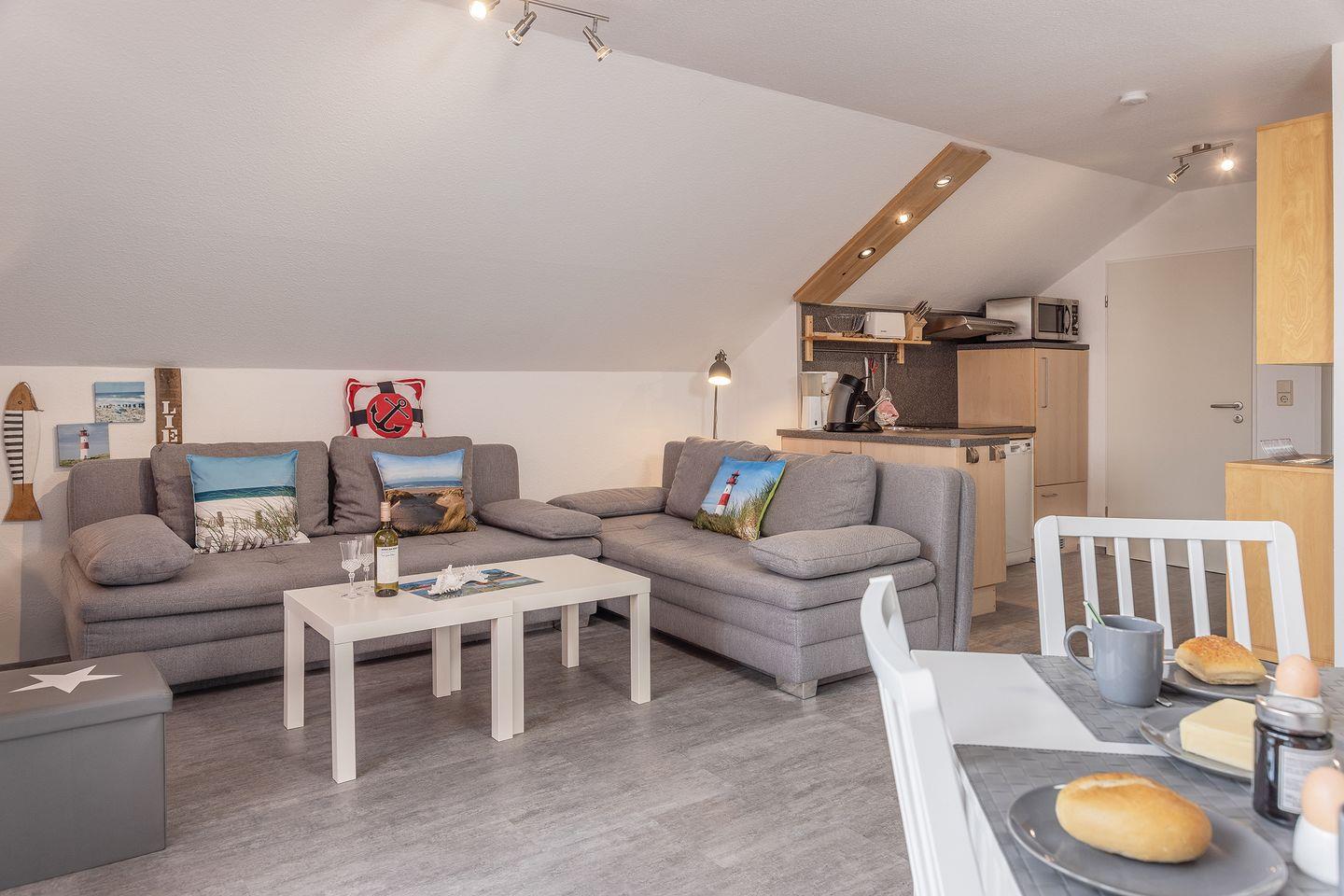Frisch, maritim, gemütlich: Diese gepflegte und liebevoll eingerichtete Ferienwohnung empfängt Sie mit einem großen Wohnraum, Südbalkon und komfortablem Schlafzimmer. Wer einmal hier war, kommt wieder – garantiert.