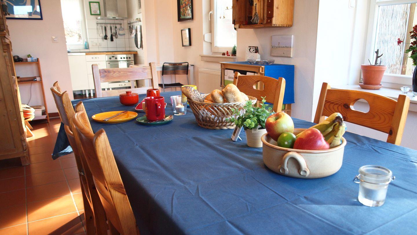 Genießen Sie gemeinsame Mahlzeiten am großen Esstisch oder entspannen Sie in der Sofaecke. Für all Ihre kulinarischen Wünsche steht Ihnen eine voll ausgestattete Küche mit Cerankochfeld, Backofen, Spülmaschine und Küchenutensilien zur Verfügung. Ein Kühlschrank mit Gefrierfach sowie eine Mikrowelle runden die Einrichtung ab und garantieren Ihnen einen unbeschwerten Urlaub.