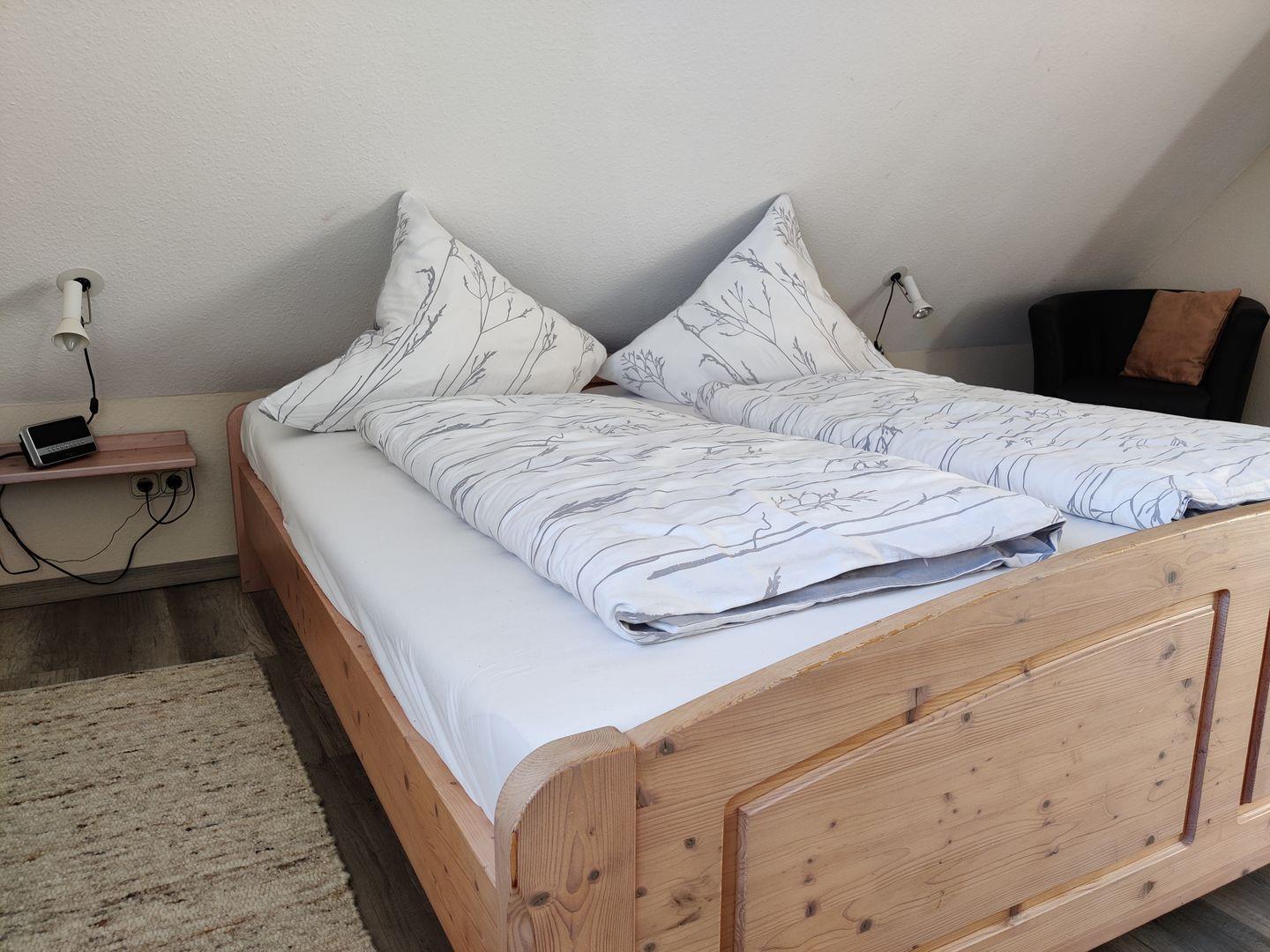 Im 2. Obergeschoss gibt es zwei weitere Einzelbetten (je 90 × 200 cm), die zusätzlichen Schlafplatz bieten.