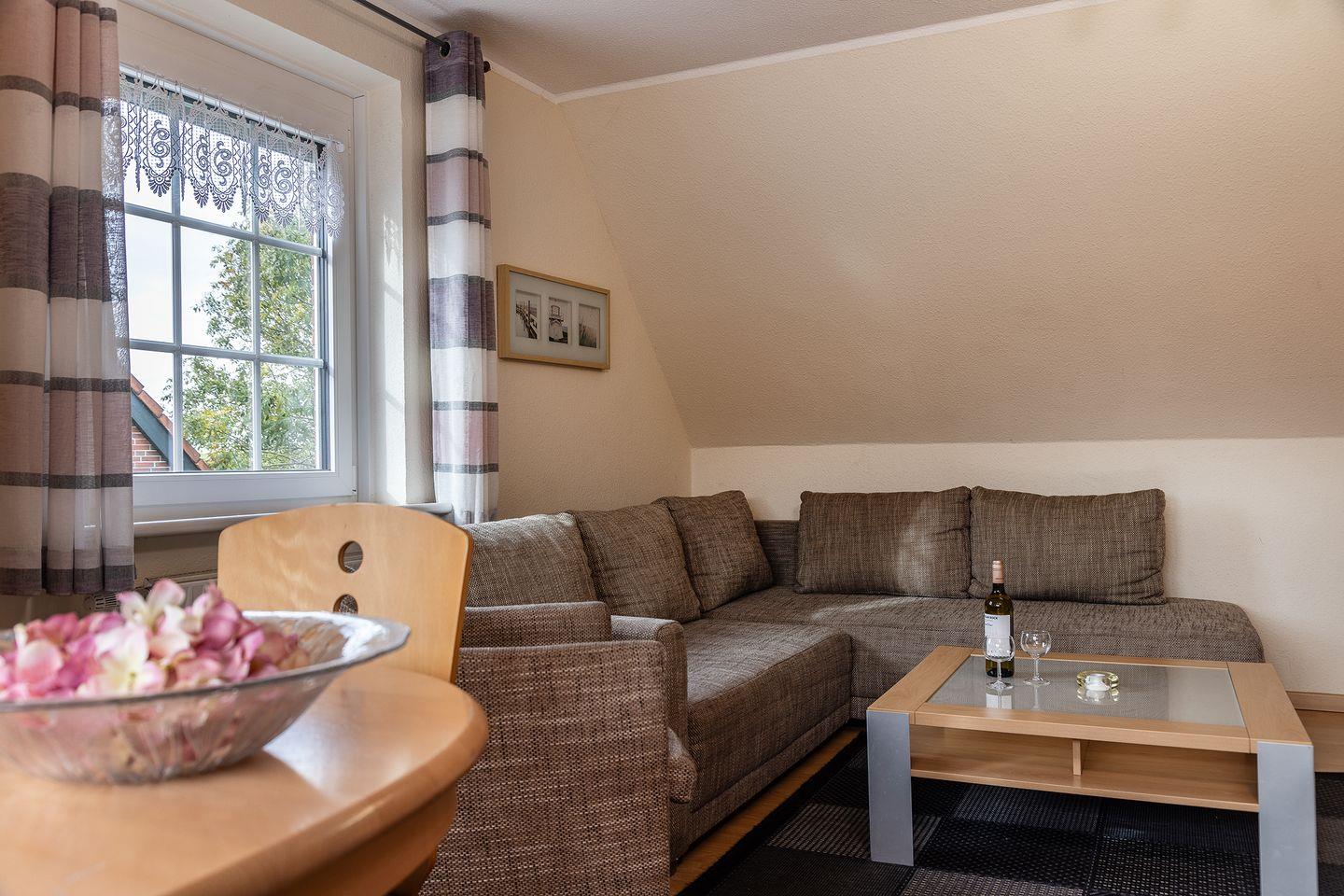 Komfortabel und hell: Die einladende Oberwohnung von ca. 60 qm liegt direkt am Deich. Die 2 Schlafzimmer erstrecken sich über 2 Etagen. Auf dem windgeschützten Balkon können Sie die Ruhe genießen.