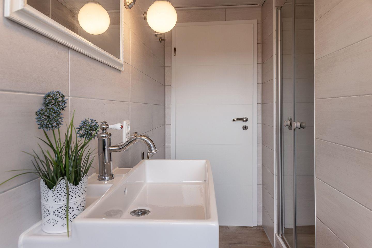 Bad: Dusche mit niedrigem Einstieg, Toilette, Handwaschbecken