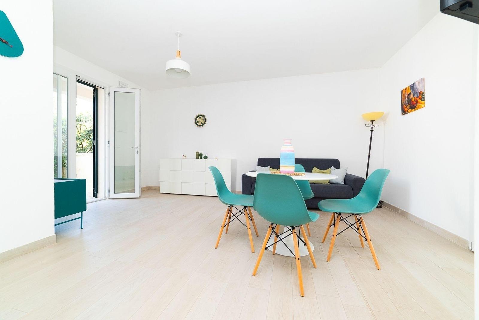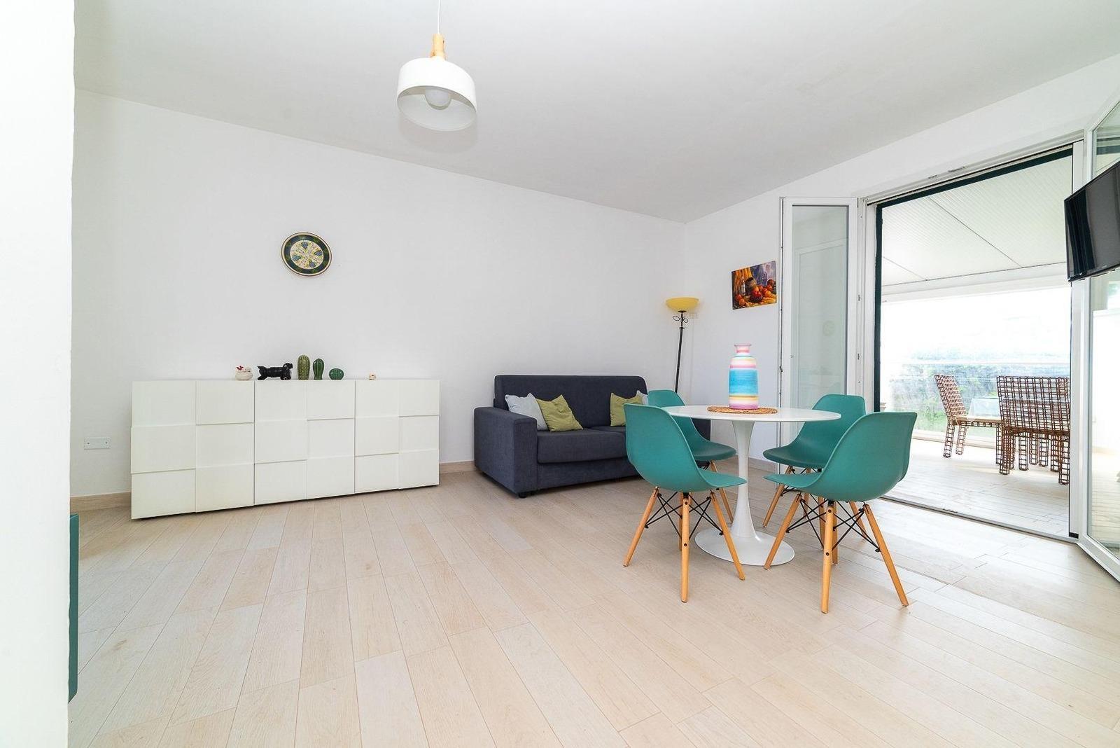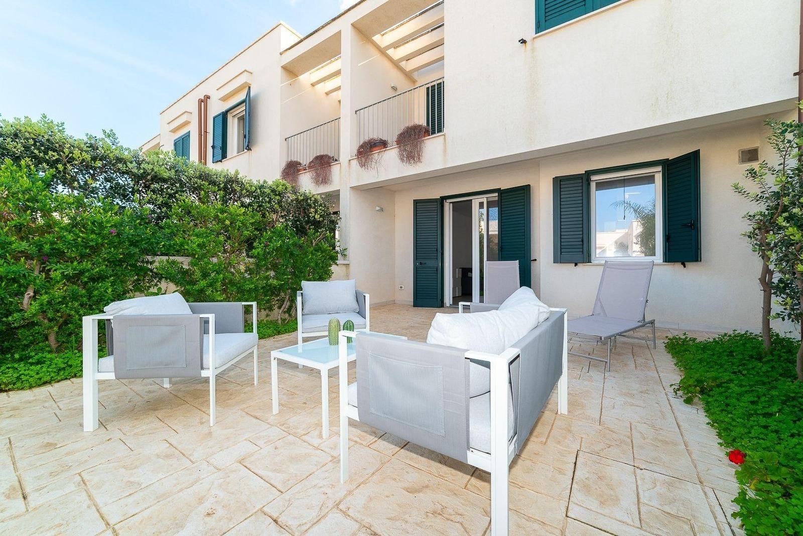 Villetta Annamaria ist ein Duplex-Ferienhaus mit einem Wohnbereich im Erdgeschoss und einem Schlafbereich im ersten Stock, völlig unabhängig, mit 5 Betten, 50 Meter von den schönen Stränden von Torre Santa Sabina entfernt