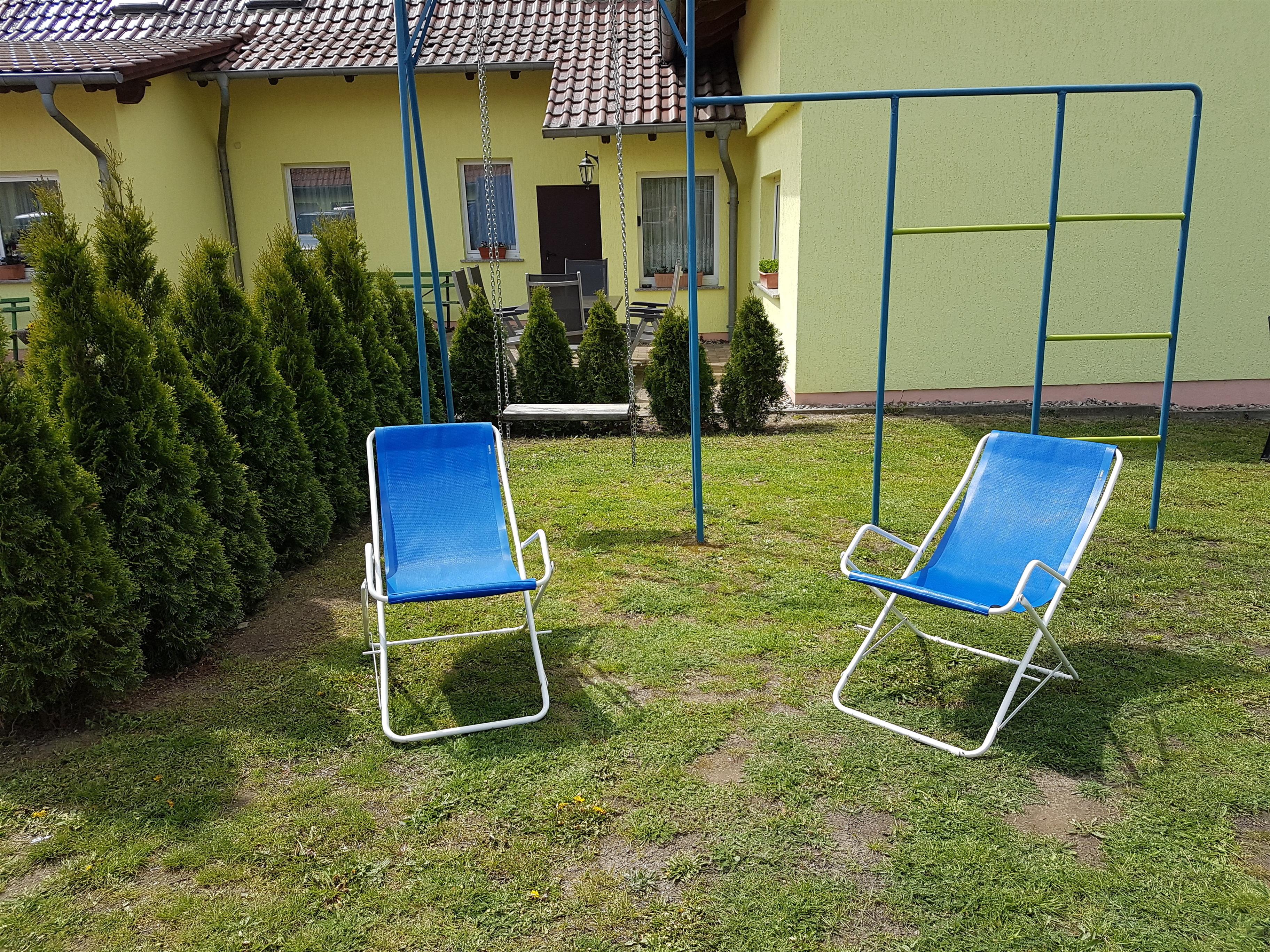 Im Außenbereich steht Ihnen ein Garten mit Sitzgelegenheiten sowie ein Grillhäuschen zum gemütlichen Grillen zur Verfügung. Für Ihre Kinder steht Ihnen ein eigener Spielplatz mit Schaukel, Klettergerüst, Wippe und ein Karussell zur Verfügung.
