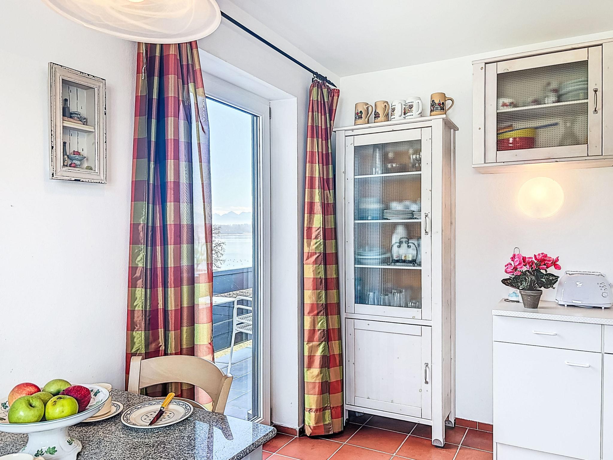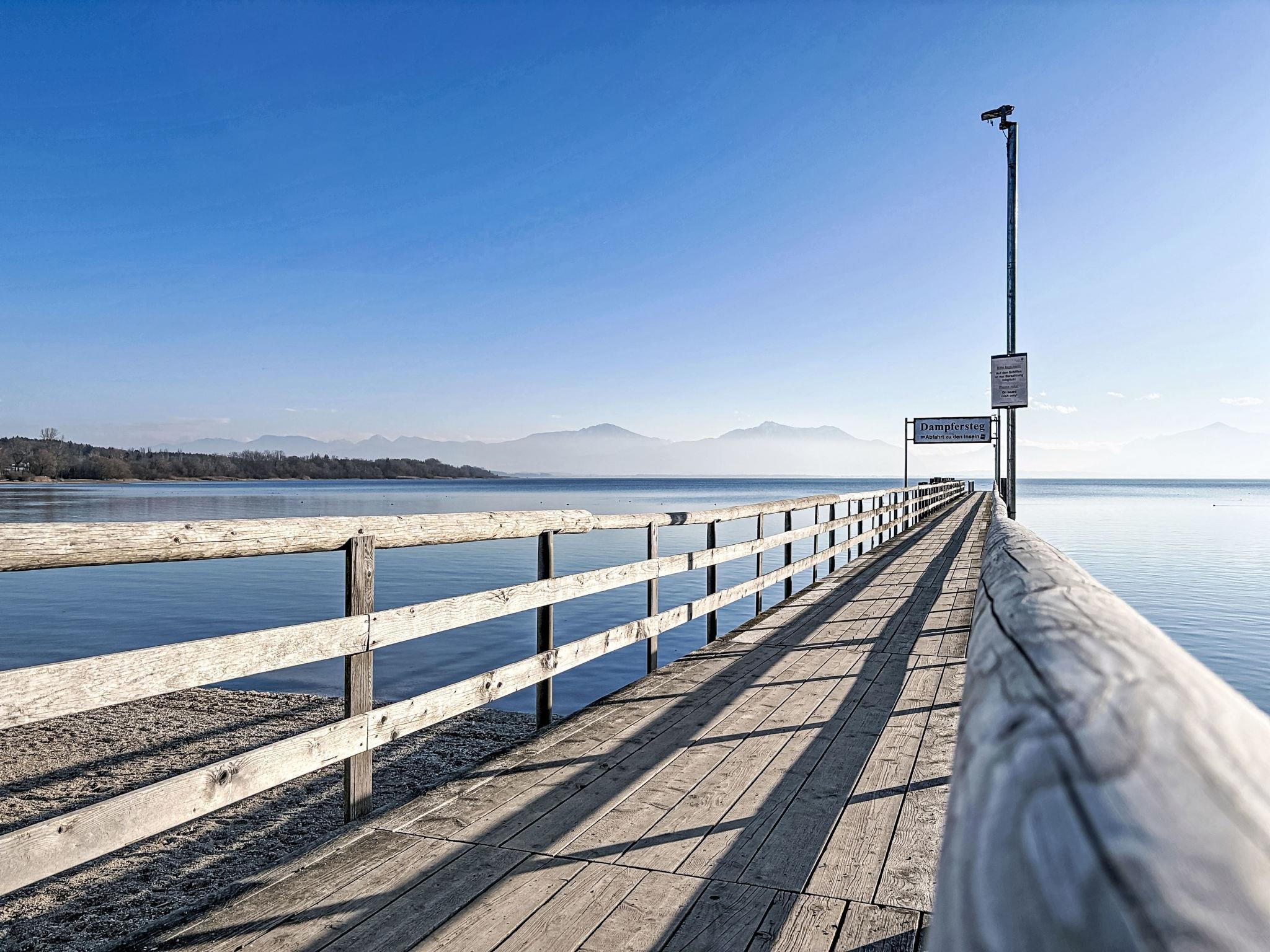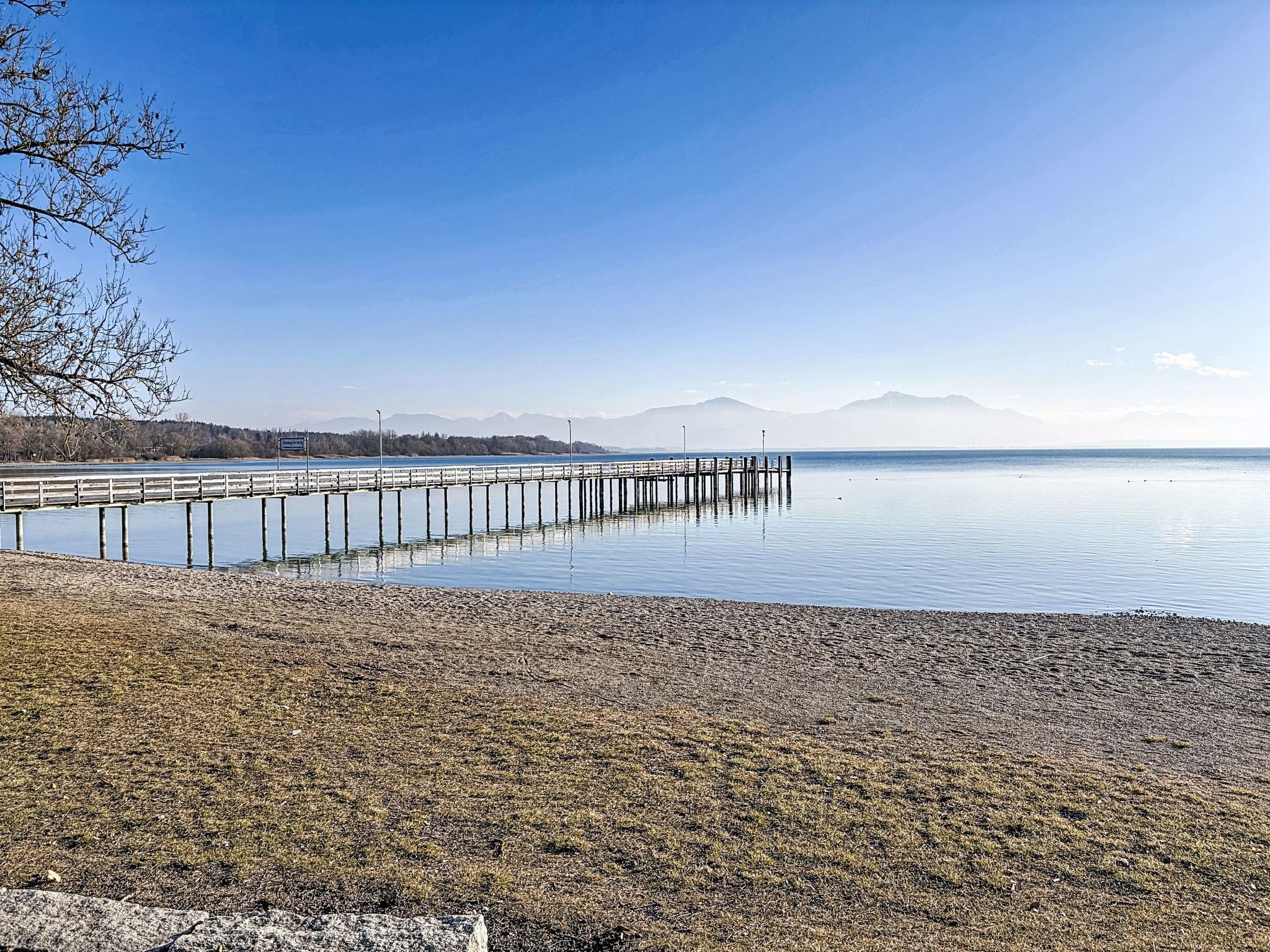 Apartment house, 2 storeys. In the centre of Seebruck 14 km from the centre of Traunstein, 18 km from the centre of Prien am Chiemsee, 32 km from the centre of Rosenheim, in a central, sunny position, 20 m from the lake. Parking at the house. Restaurant 50 m, bicycle rental 600 m, bus stop "Landungssteg" 20 m, grass beach 50 m. Sports harbour 20 m, golf course (9 hole) 3 km, walking paths from the house 50 m. Nearby attractions: Römermuseum Bedaium 600 m, Kletterwald Prien am See 18 km, Chiemgau Therme Bad Endorf 16 km. Well-known ski regions can easily be reached: Ruhpolding 28 km. Hiking paths: Seebruck-Seeon-Truchtlaching.