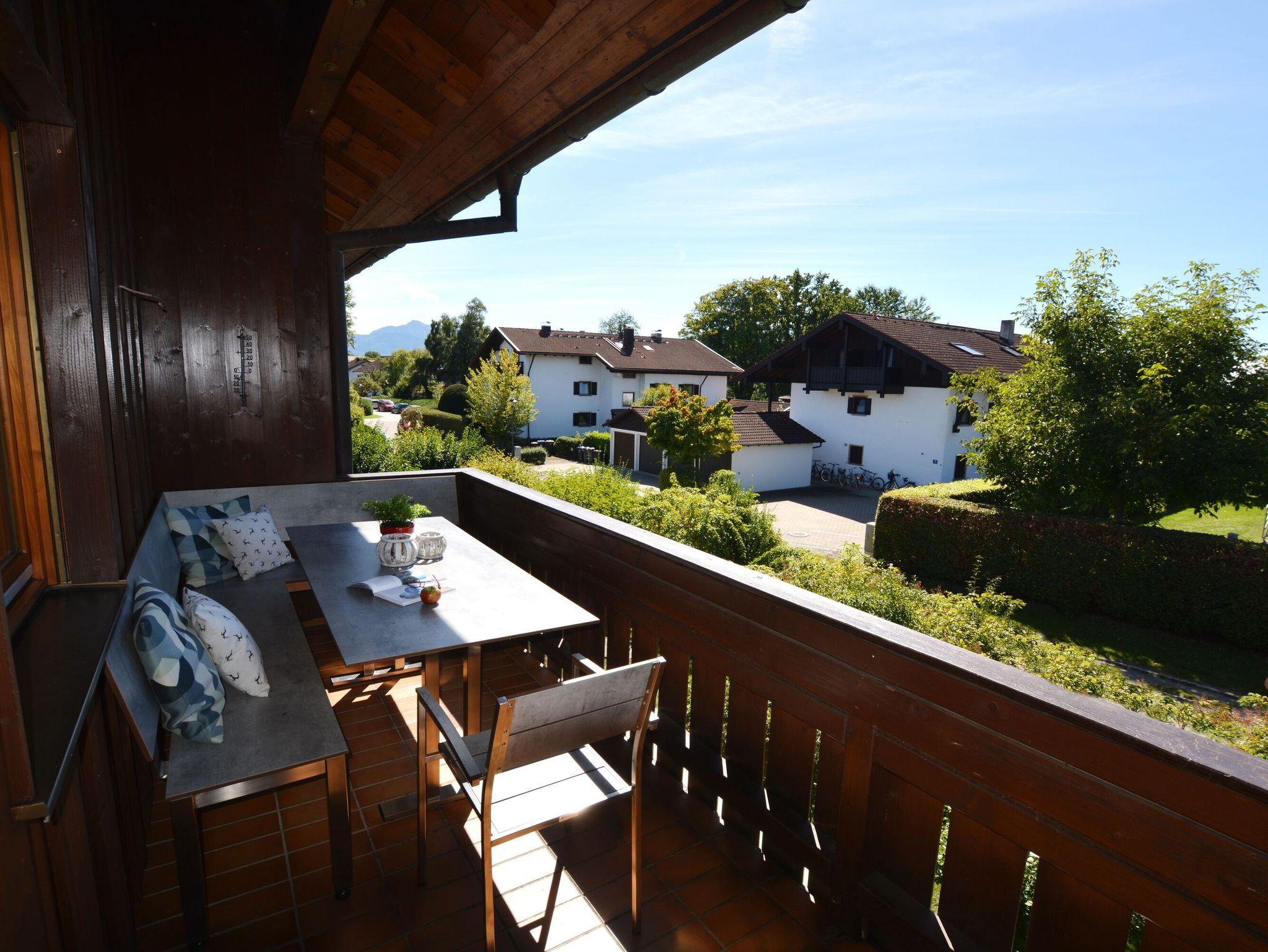 Balkon mit Sitzgelegenheit und leichtem Seeblick